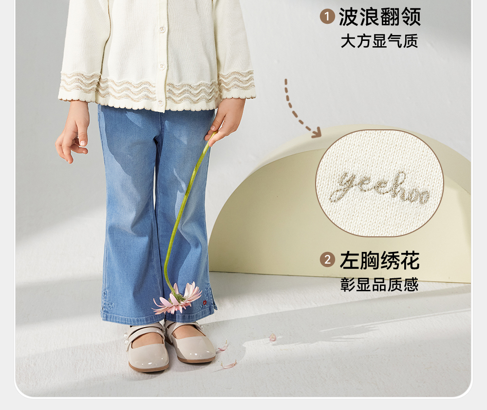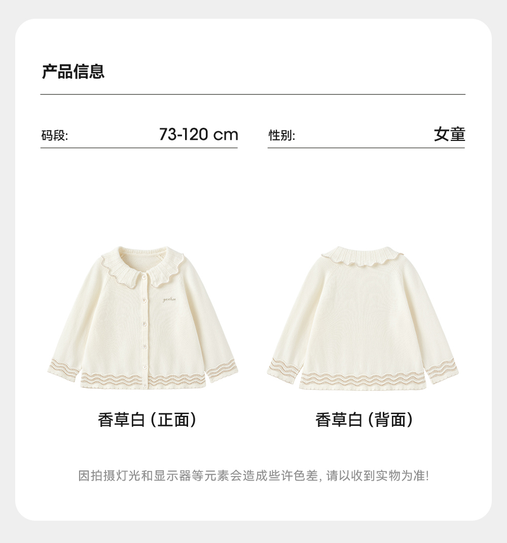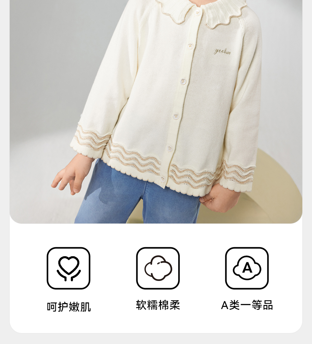 英氏儿童毛衣春秋长袖女童开衫外套2025新款毛织外套YRWWJ1R006A
