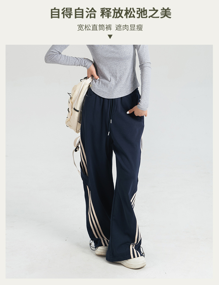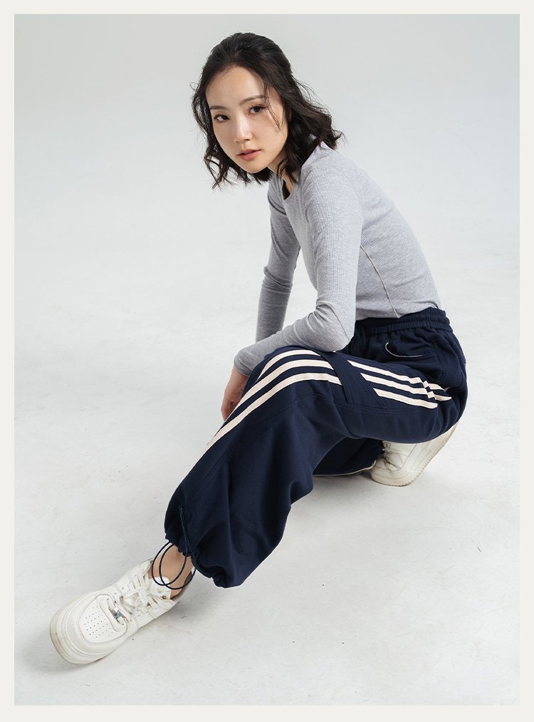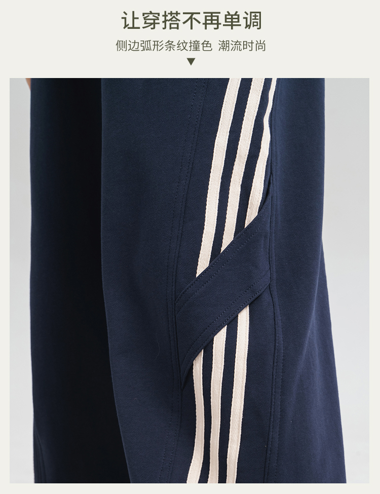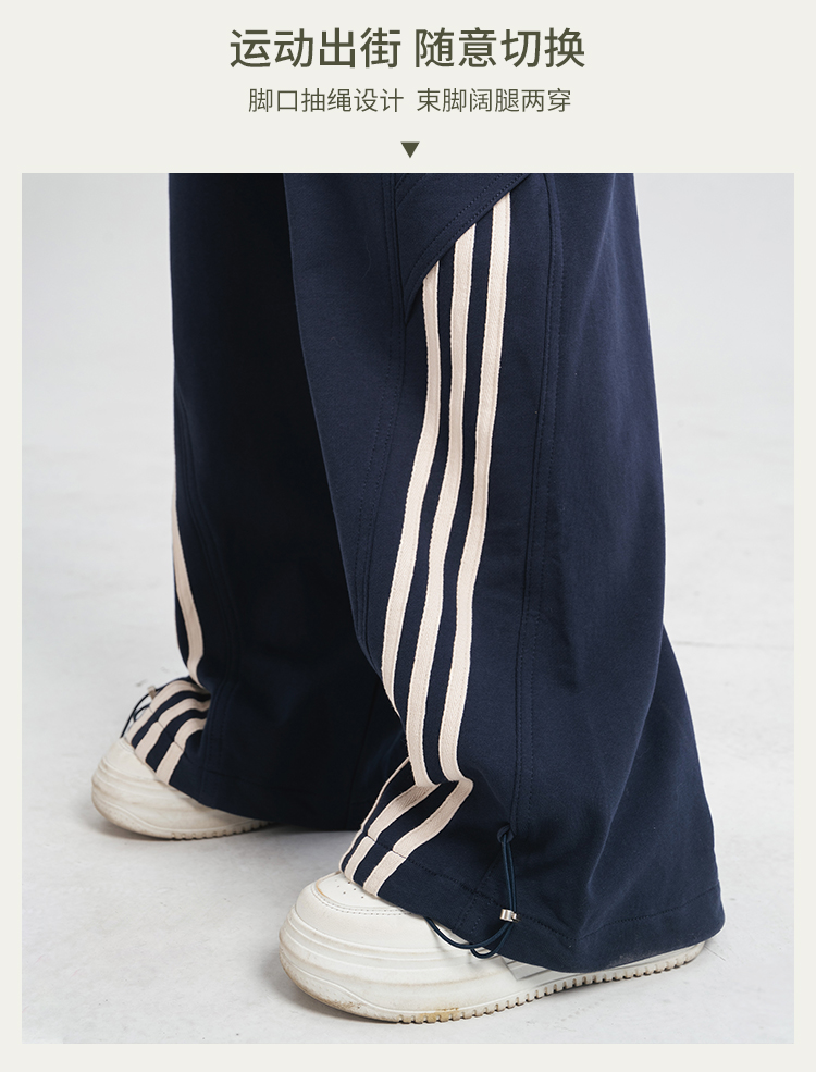 [100%棉] 美式复古伞兵裤 阔腿+束脚两穿 侧边条纹撞色 宽松直筒运动休闲裤