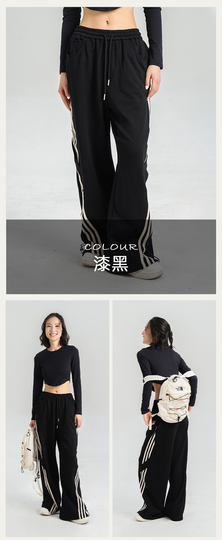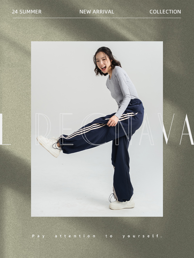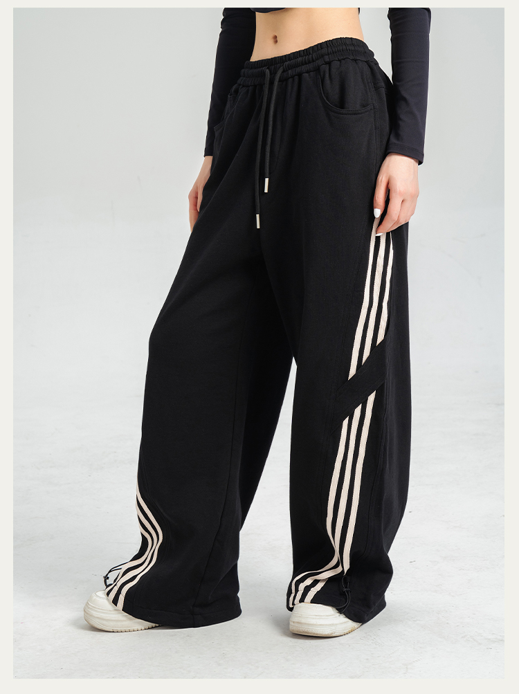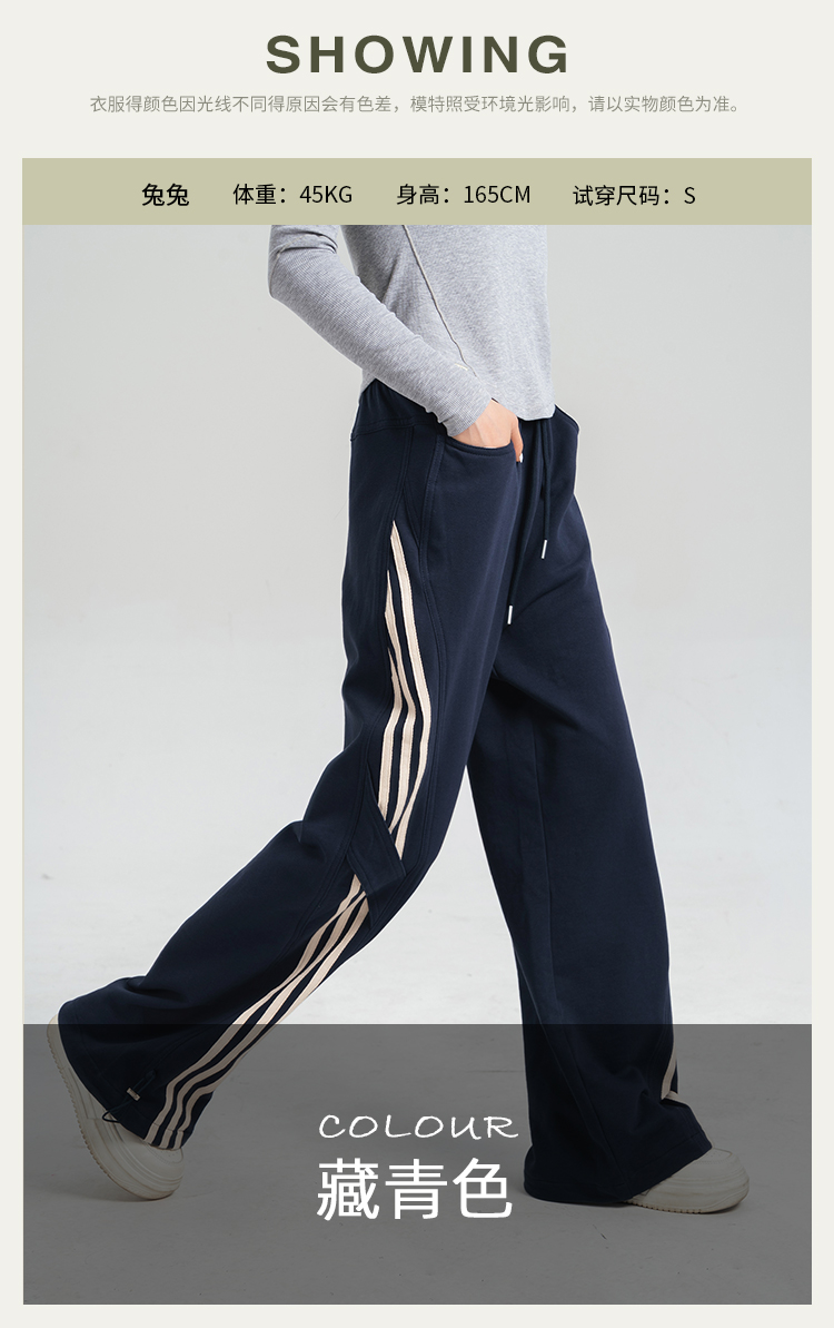 [100%棉] 美式复古伞兵裤 阔腿+束脚两穿 侧边条纹撞色 宽松直筒运动休闲裤