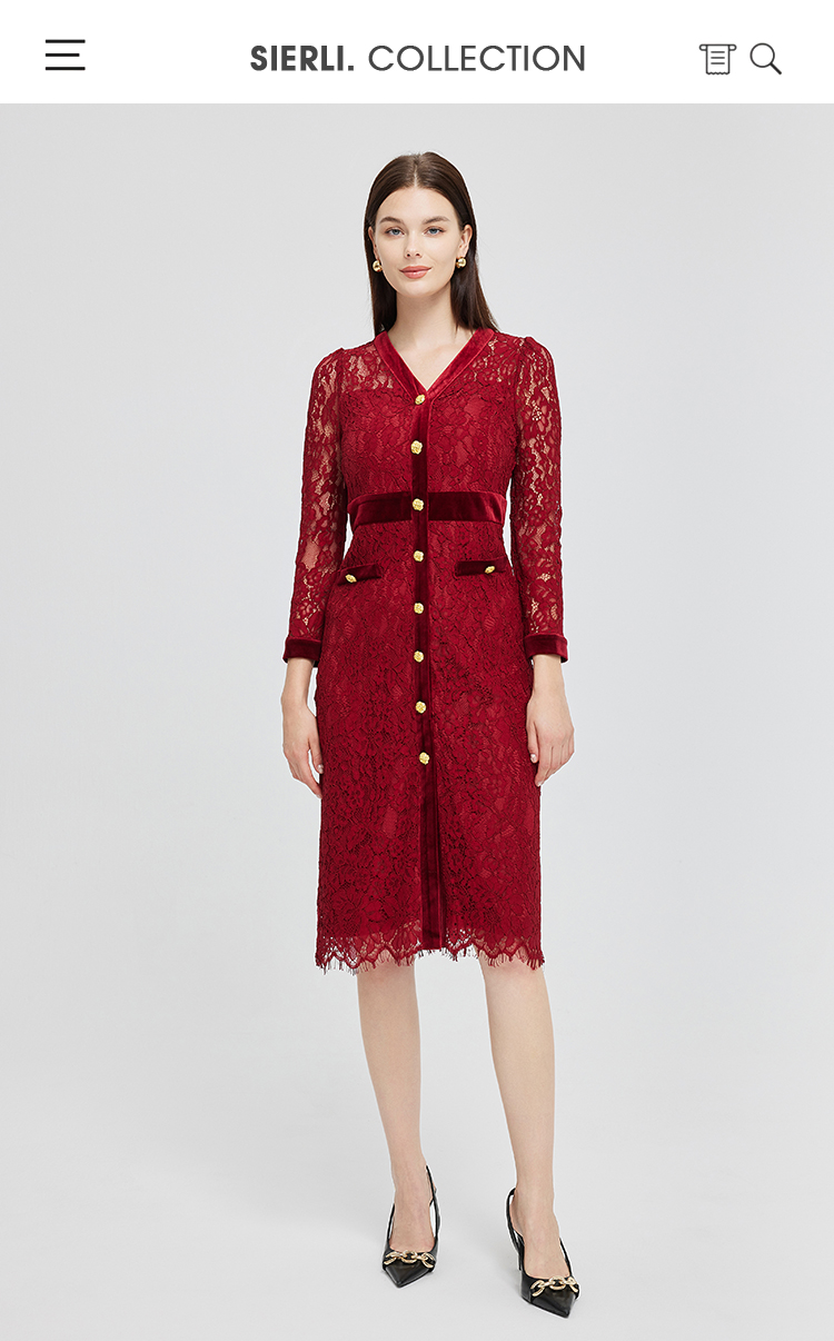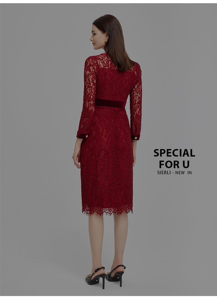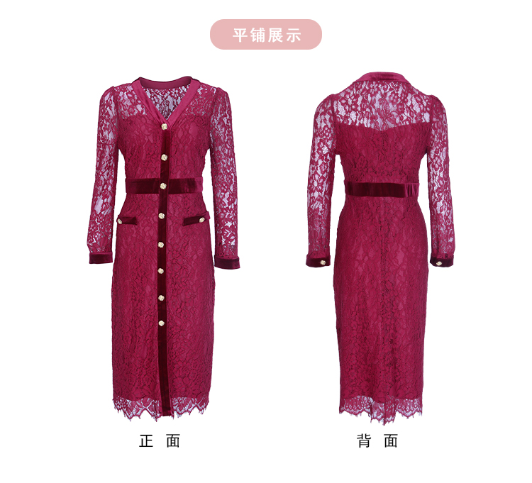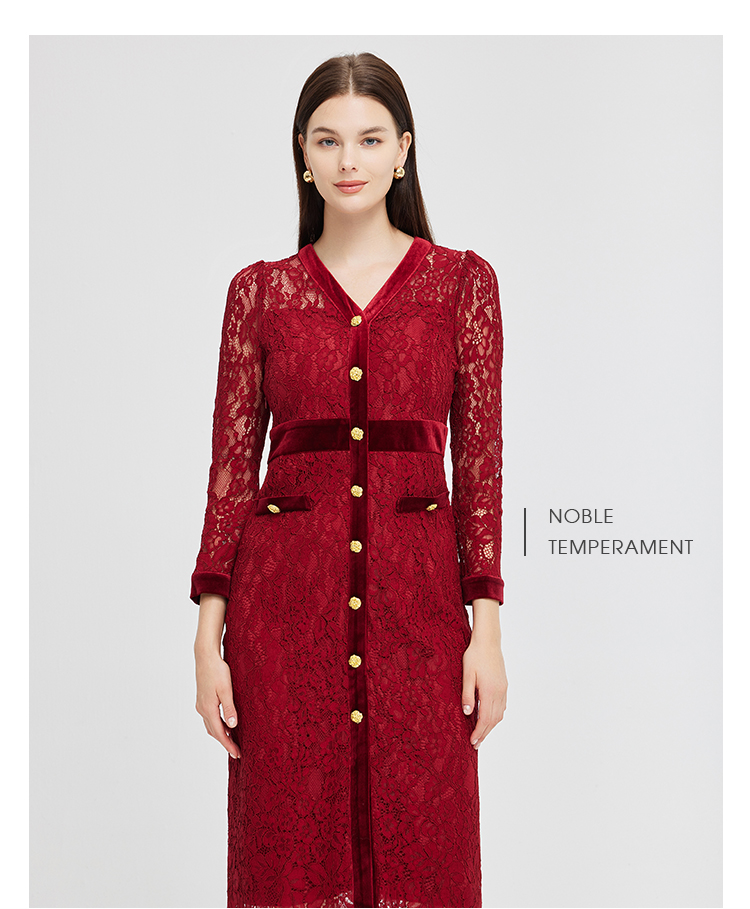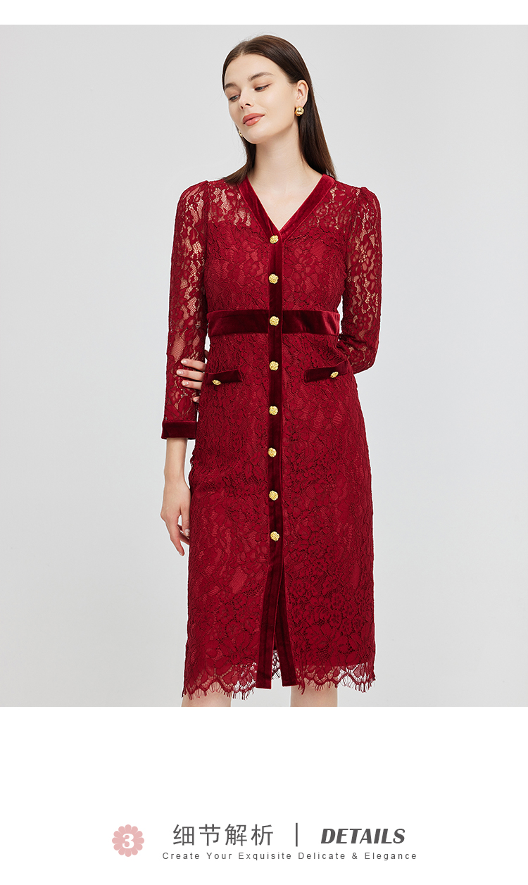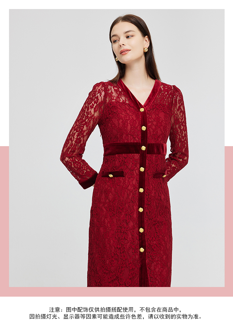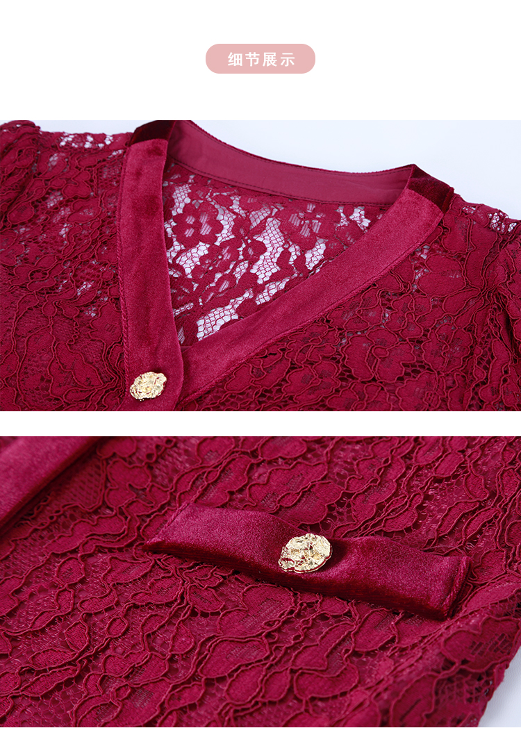 NG850斯尔丽2023秋季新款法式优雅拼接丝绒小香风感蕾丝连衣裙