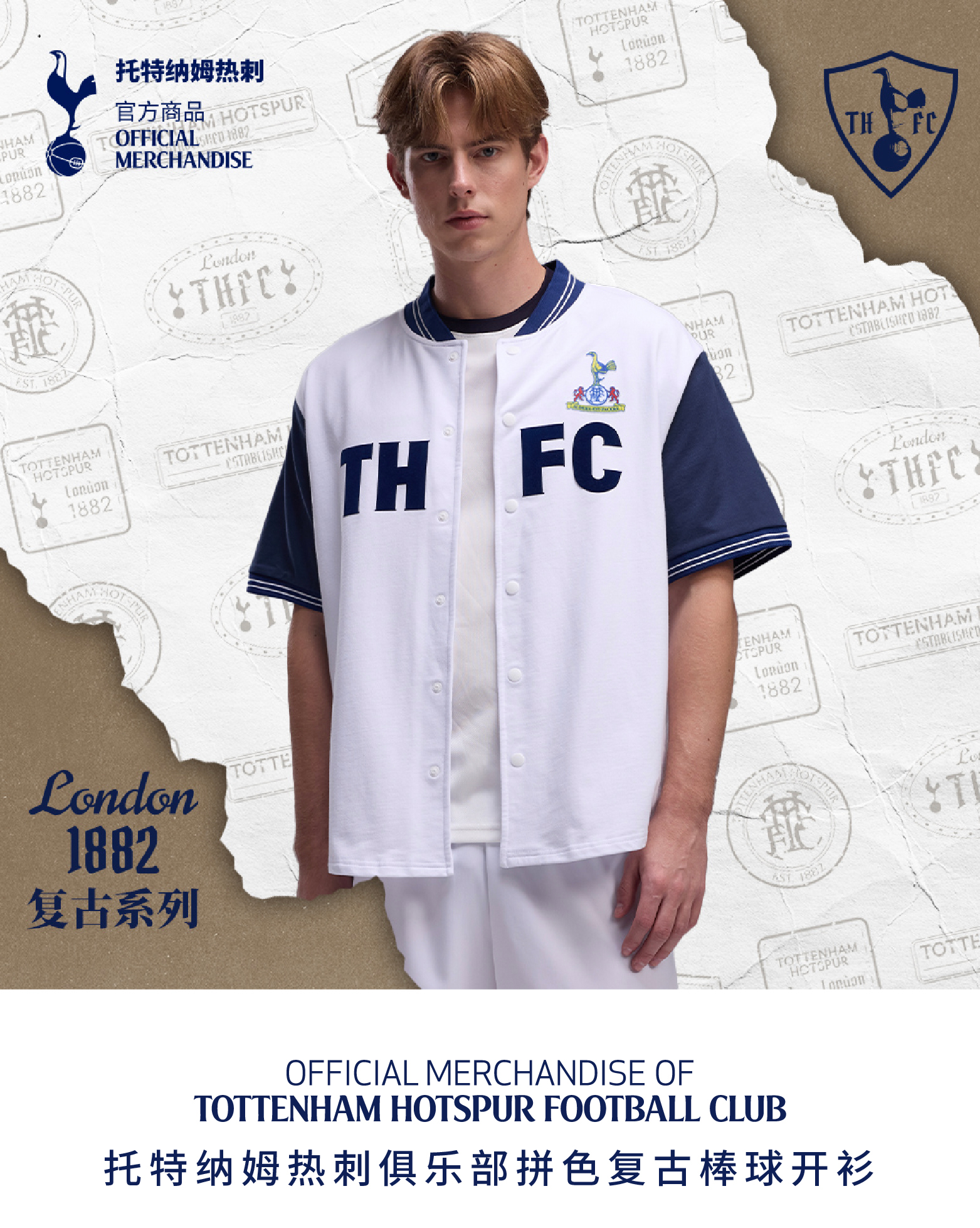 【官方正版】托特纳姆热刺俱乐部 | 春夏新款拼色复古棒球开衫时尚潮流透气舒适