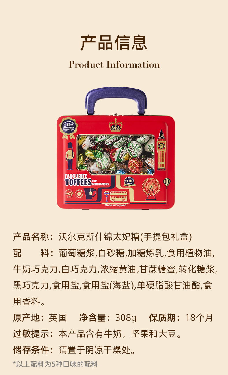 沃尔克斯什锦太妃糖手提包礼盒308g/060887 五重奢味颜值与美味并存拿可背挎