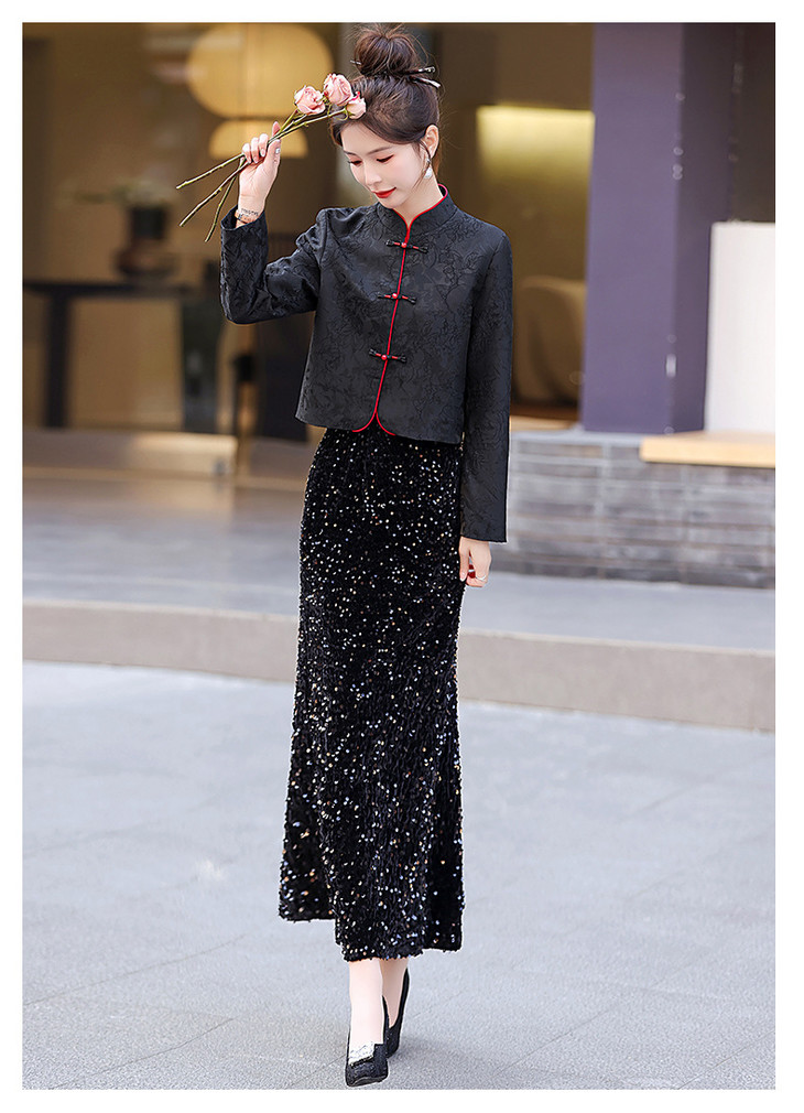 新款秋冬,女新中式国风两件套装年轻款少女改良旗袍马甲民国风GSJ-3522