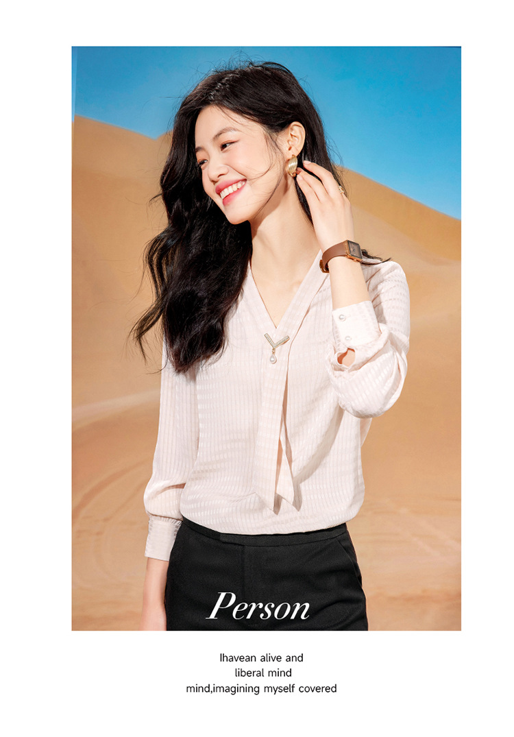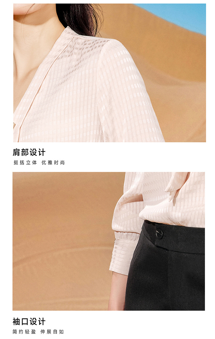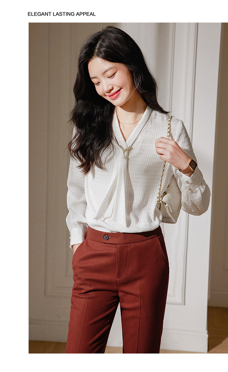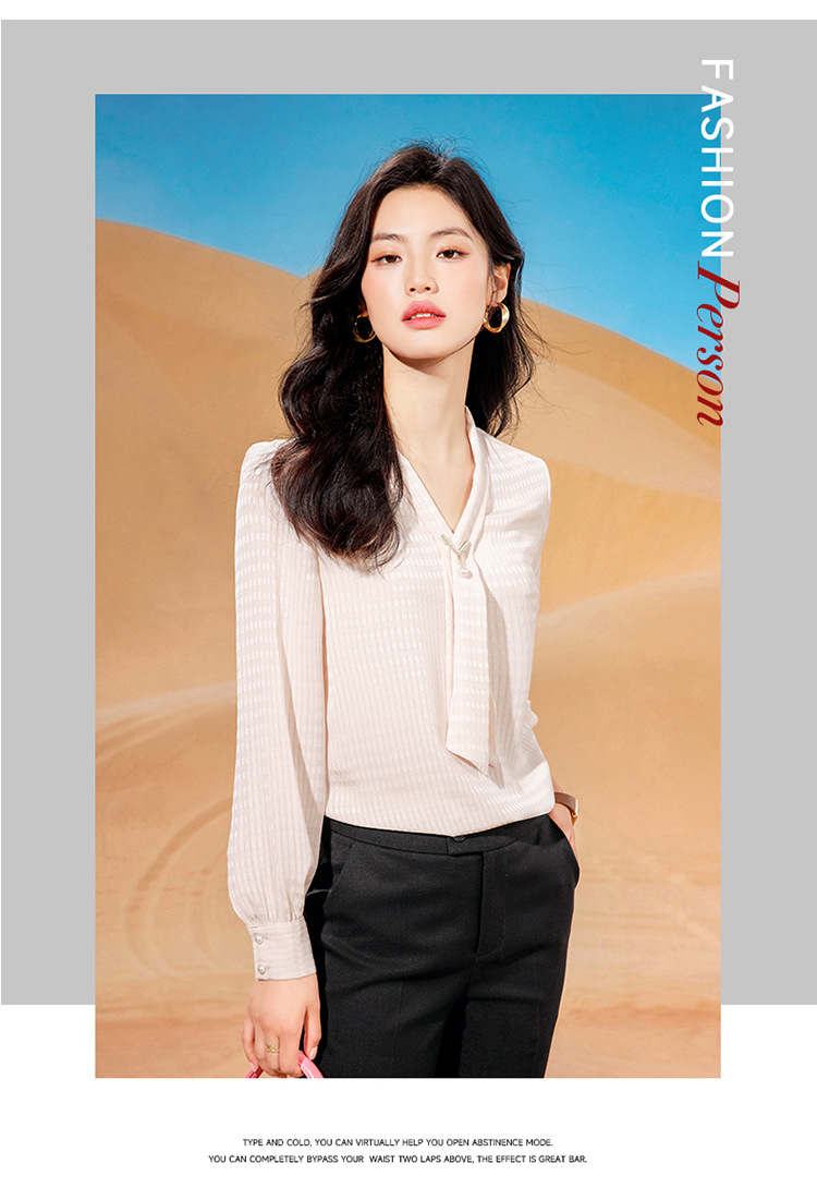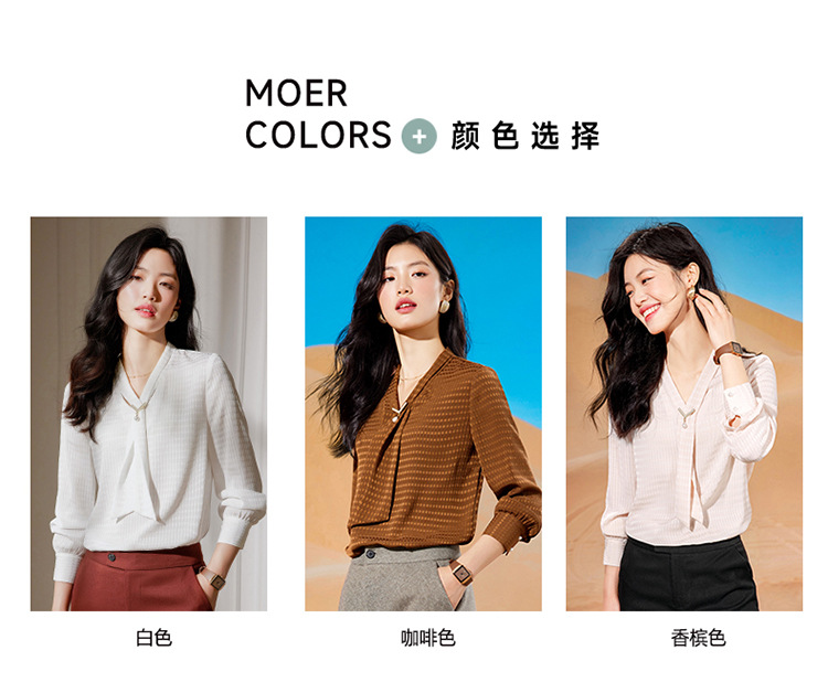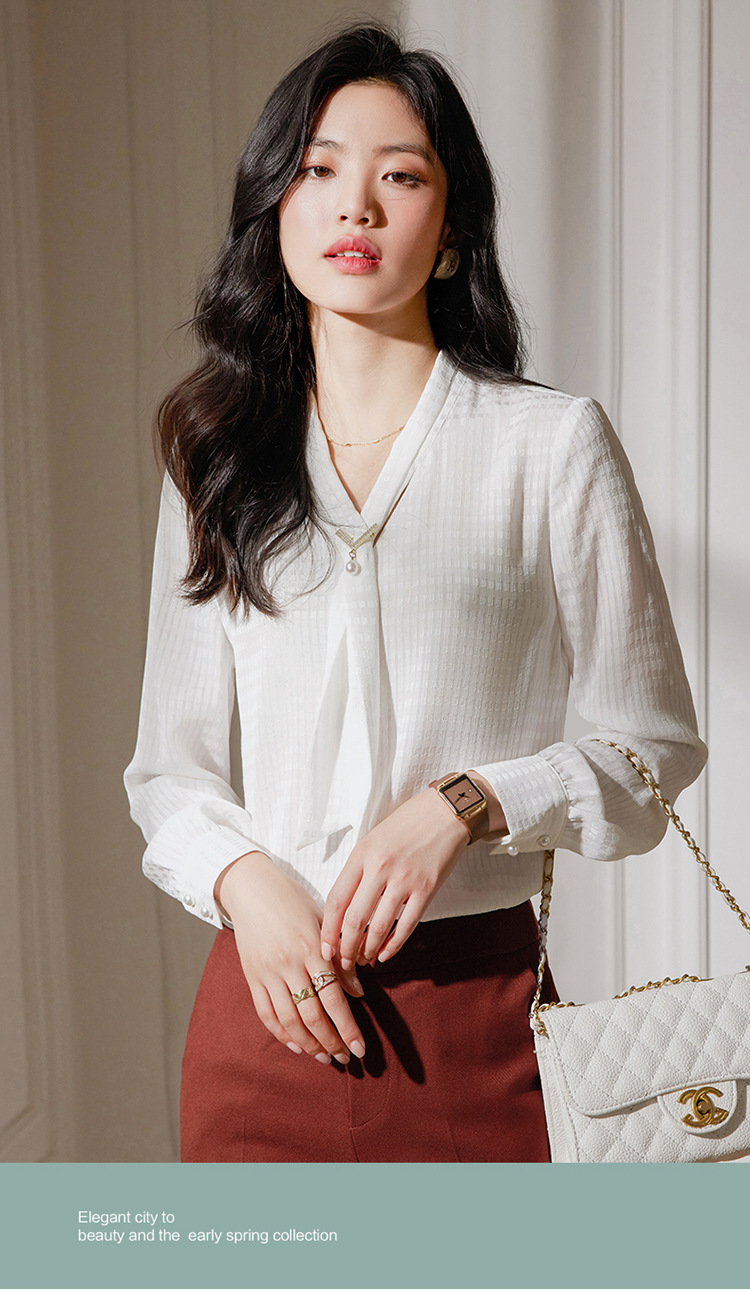 法式优雅飘带雪纺衬衫女春秋新款设计感小众V领通勤职业免烫衬衣 MGG-XMYXXN-22652
