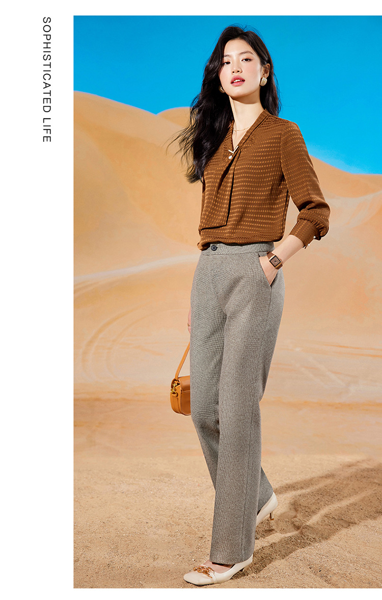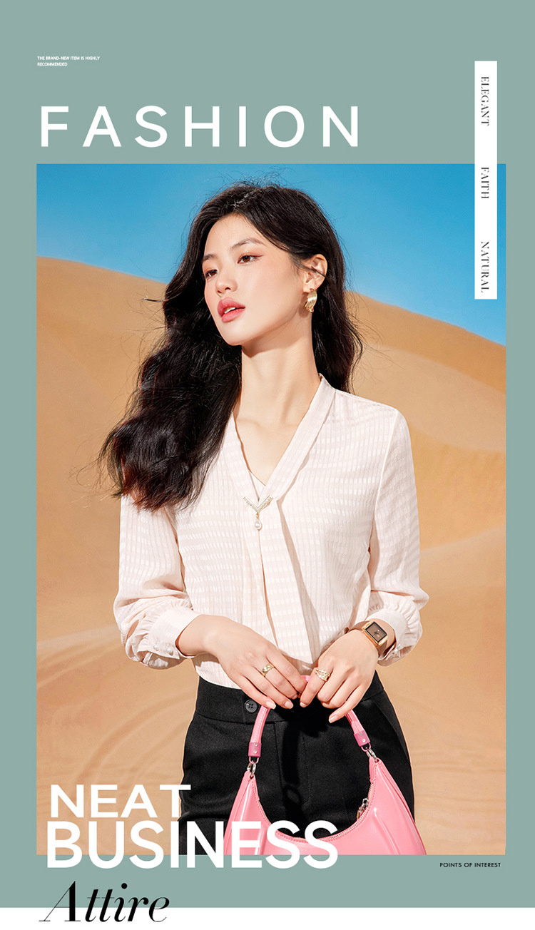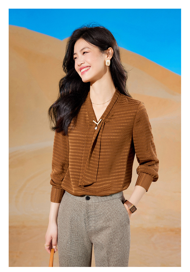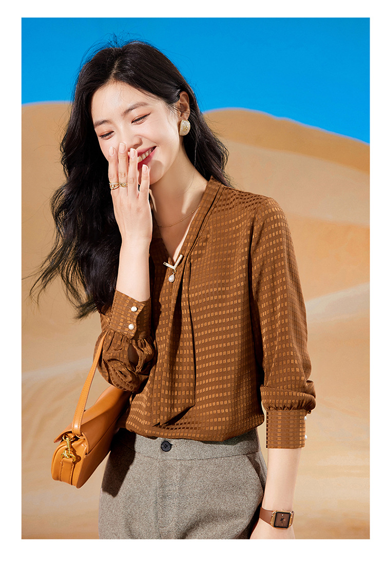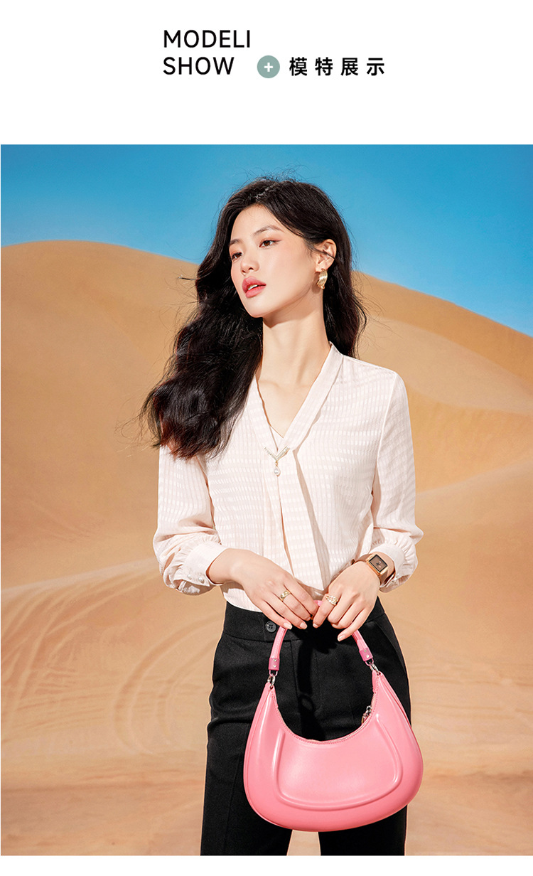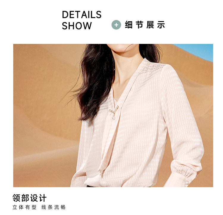 法式优雅飘带雪纺衬衫女春秋新款设计感小众V领通勤职业免烫衬衣 MGG-XMYXXN-22652