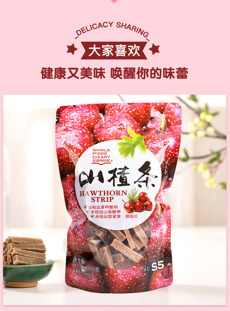 【买3包赠1包】全食物日记 山楂条 360g/袋FX【QTT】