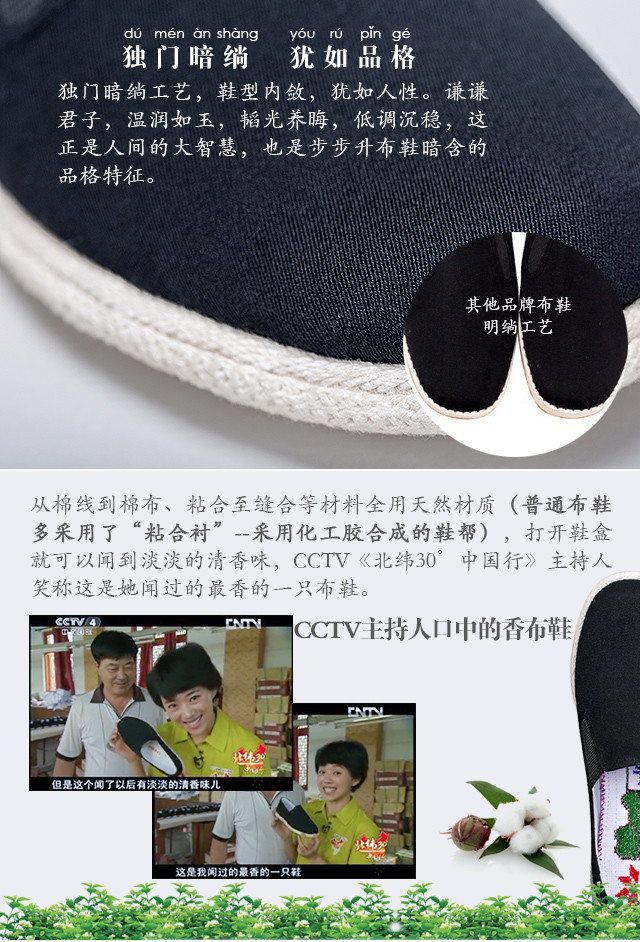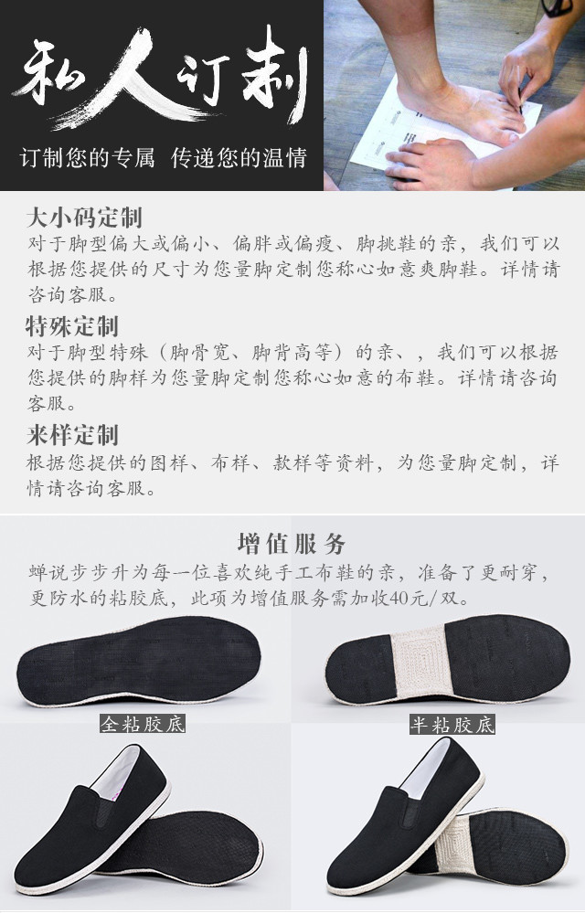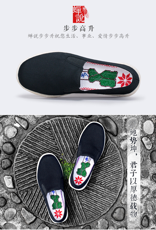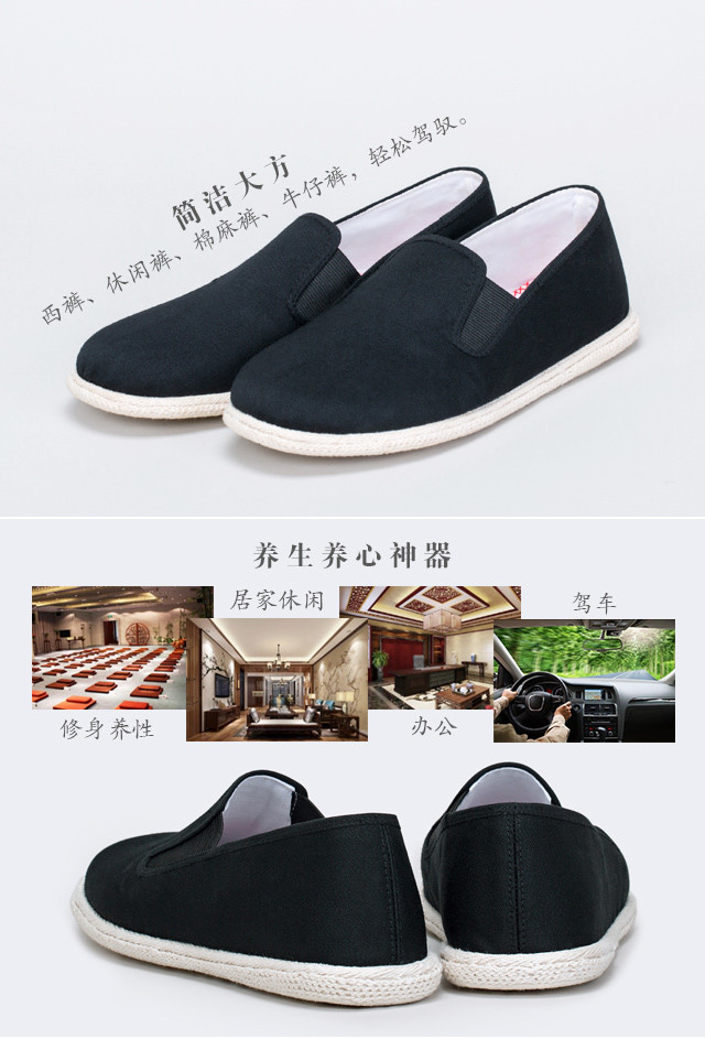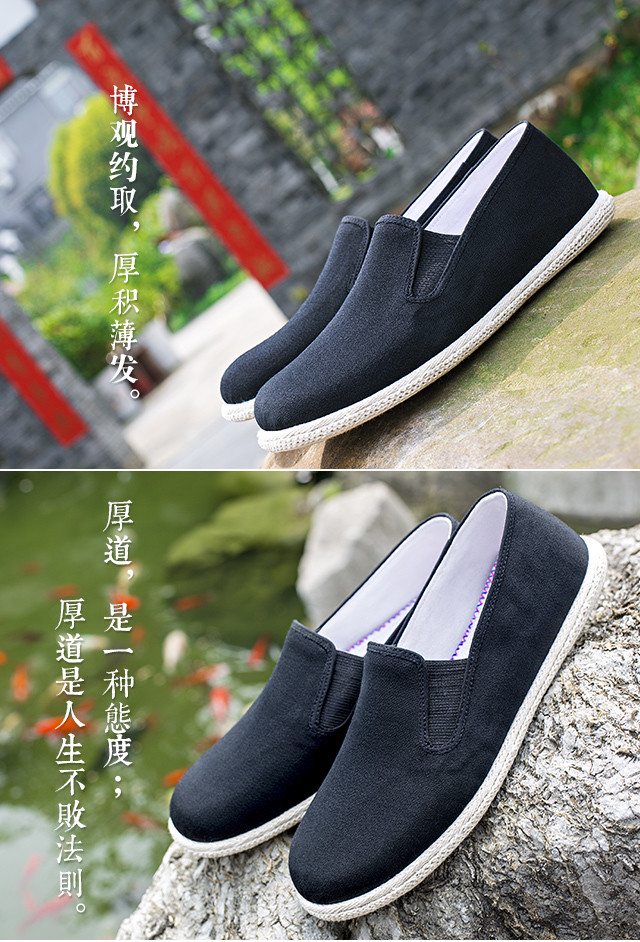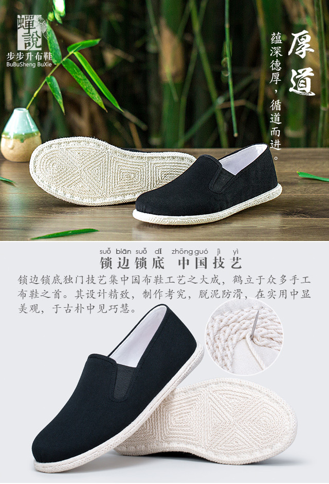 蝉说手工布鞋男鞋 休闲千层底布鞋全棉黑色老北京布鞋 爸爸透气礼品鞋 步步升布鞋 黑色纯布底