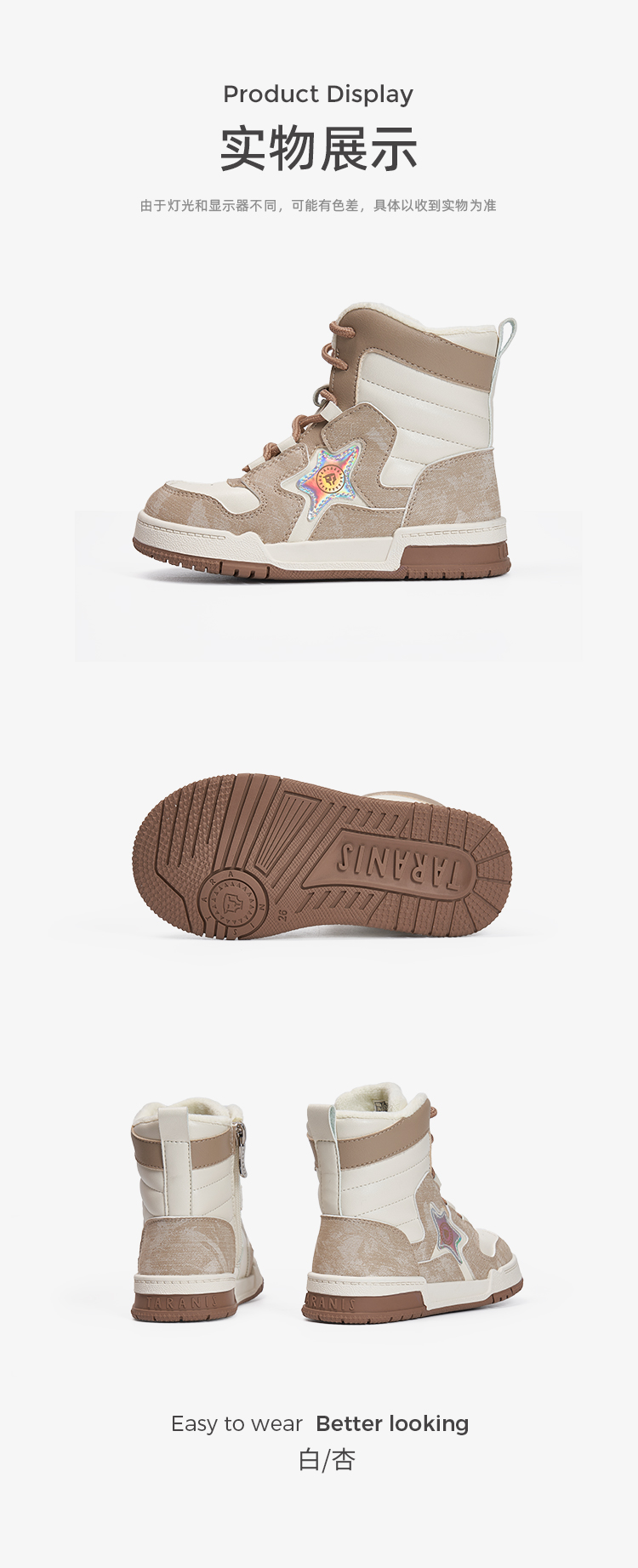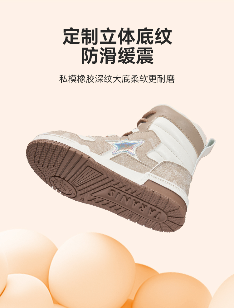 泰兰尼斯小童段冬款加绒保暖百搭高帮鞋板鞋T02X3D3297