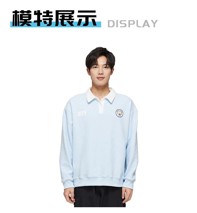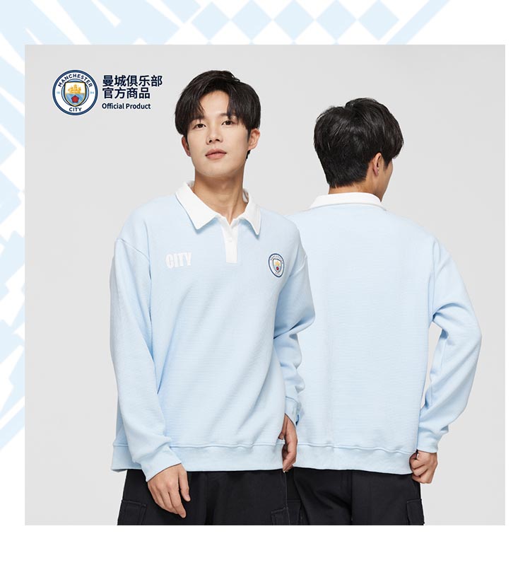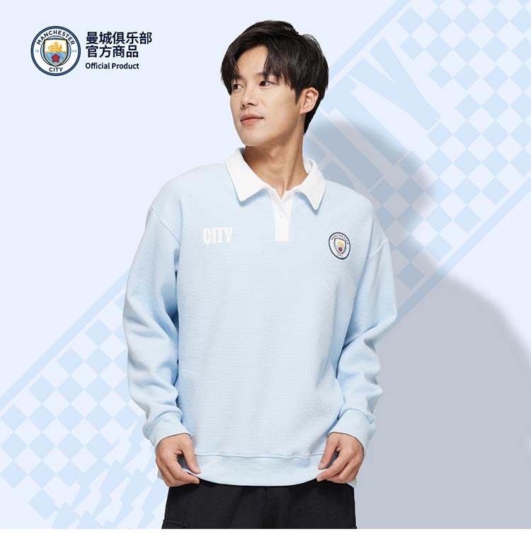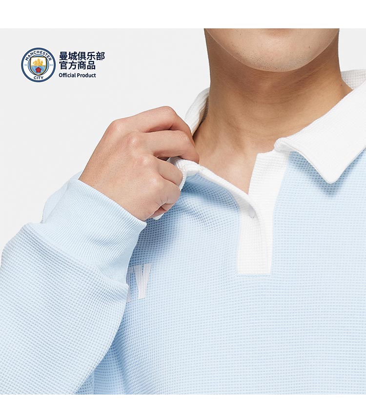 【官方正版】曼城俱乐部 | 复古POLO领长袖卫衣球迷套头衫