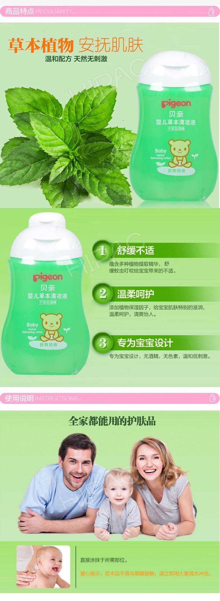 【一般贸易】贝亲Pigeon 婴儿草本清凉液 100ml IA168