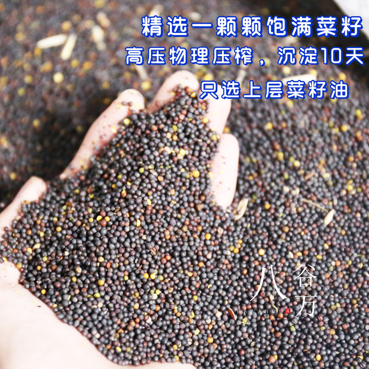 【现榨菜籽油】晾晒3天,手工挑选2遍后传统物理压榨出油,自然沉淀10天,只取中上层菜籽油,没什么杂质,自然的菜籽香,非调和油!
