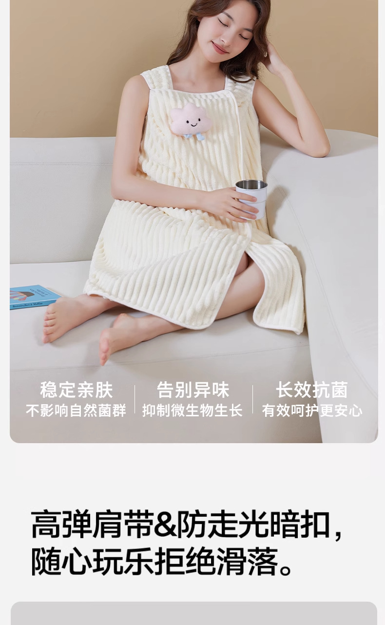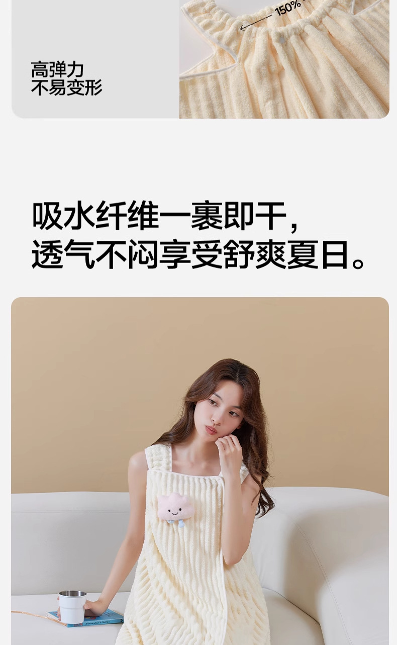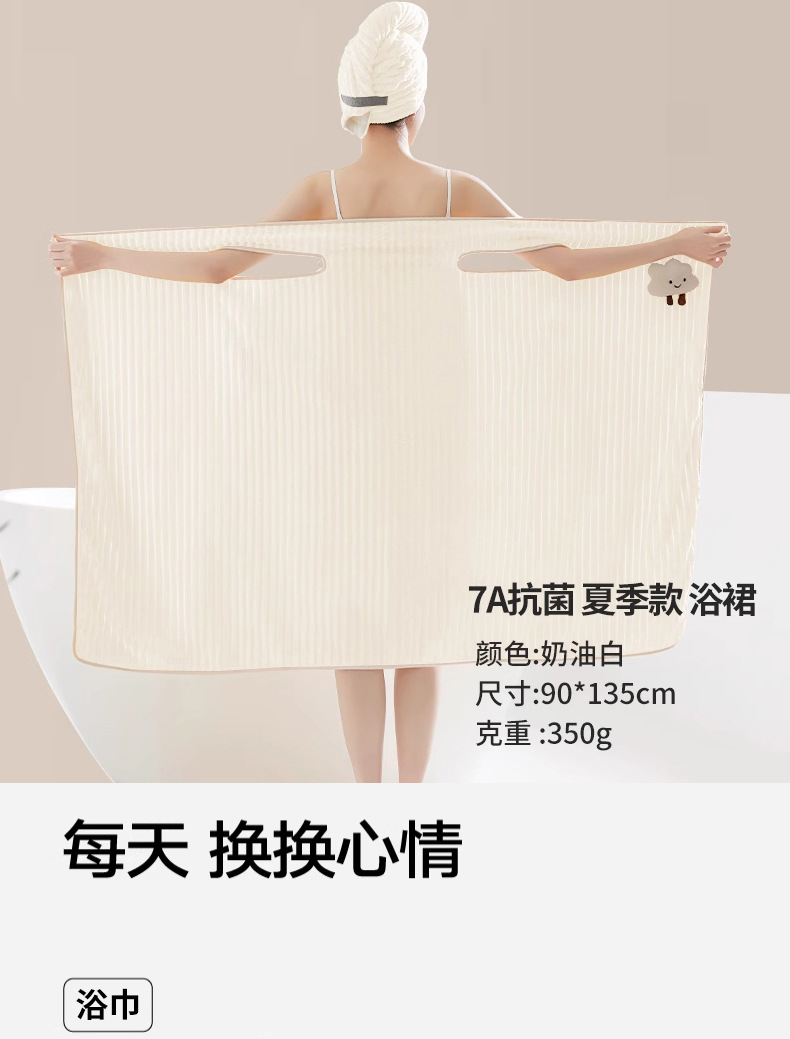 超值三件套【可穿式浴巾!一裹即干】高弹肩带,防走光暗扣,7A级浴巾浴裙浴袍新款女大人家用洗澡吸水不掉毛可穿可裹巾。rc