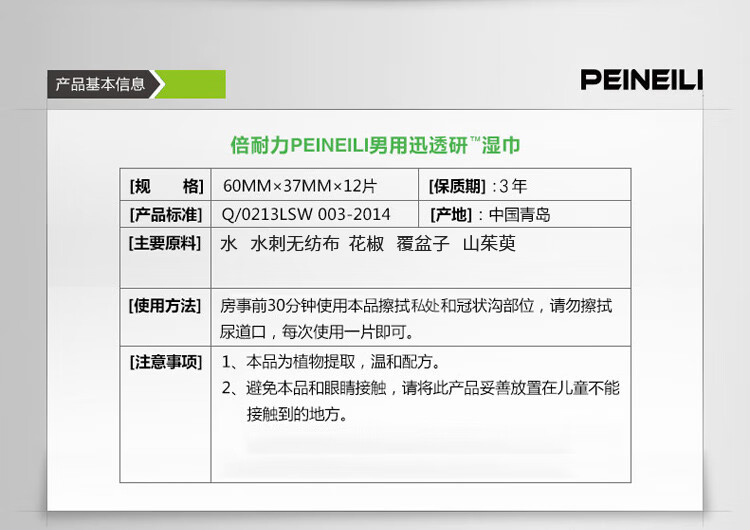 倍耐力倍爱力 延时湿巾 迅透研白金男用湿巾 草本延时 12片/盒