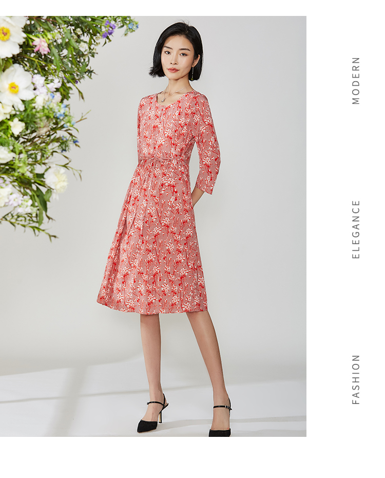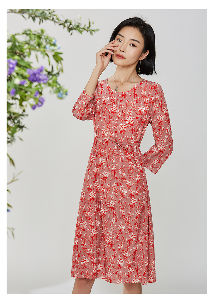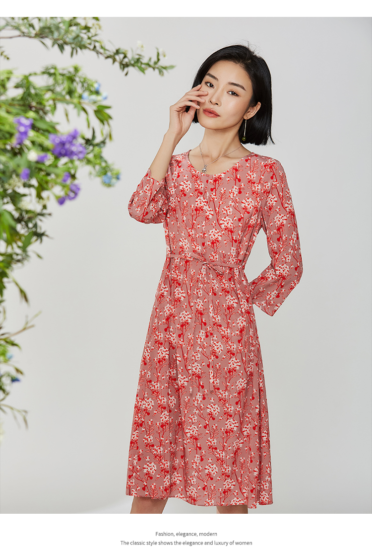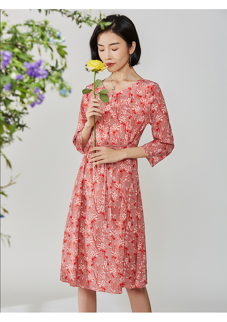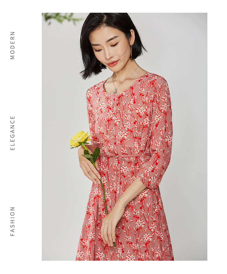 佐尔美秋季新款碎花真丝桑蚕丝连衣裙E12LS24