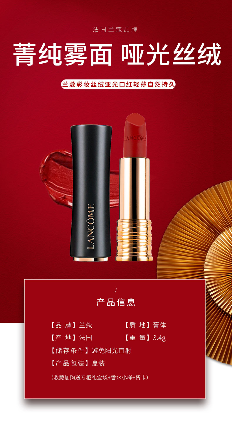 兰蔻菁纯丝绒雾面唇膏295