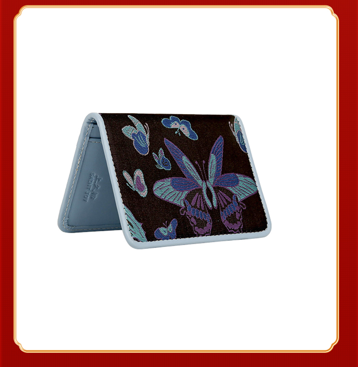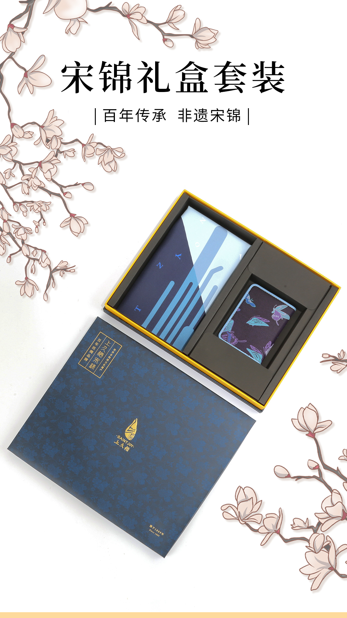 SAINTJOY/上久楷宋锦礼盒真丝小方巾 创意 FJS22021+防盗卡包 福蝶 BWS19K0404 组合