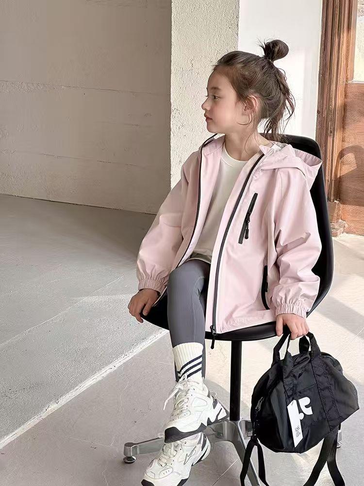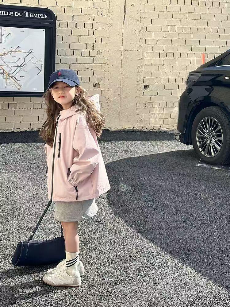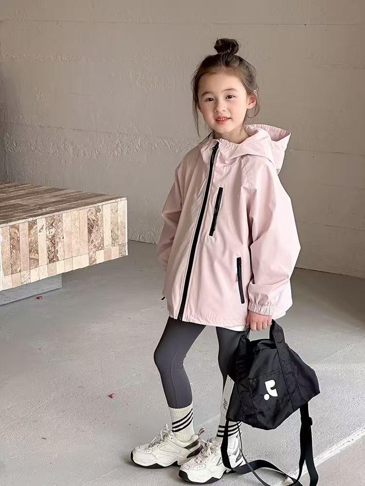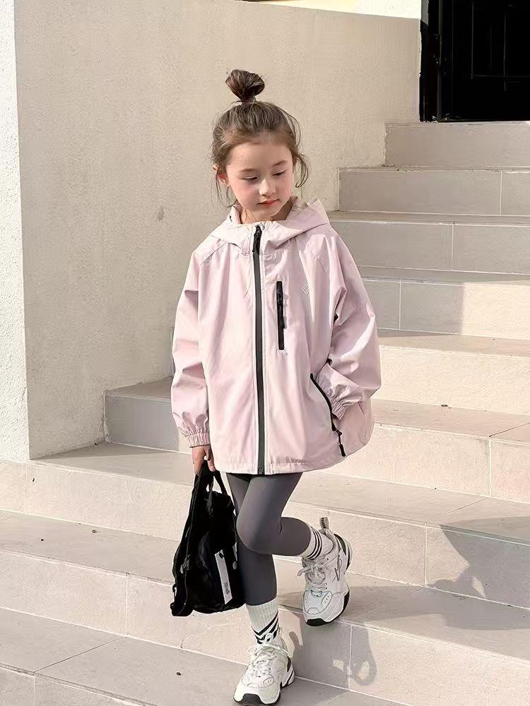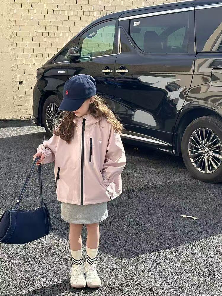2025春季新款中大童上衣儿童户外冲锋衣女童休闲宽松防风连帽外套