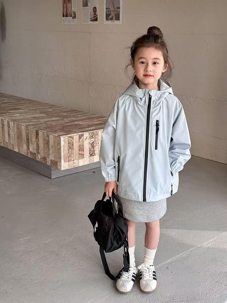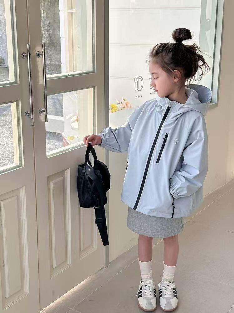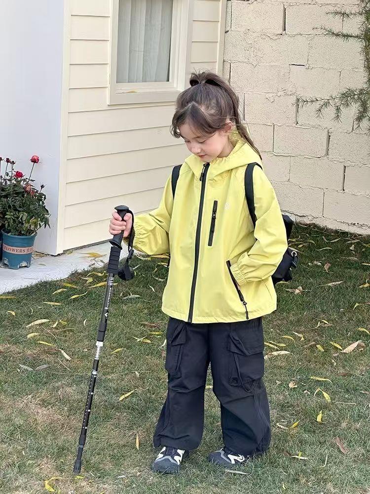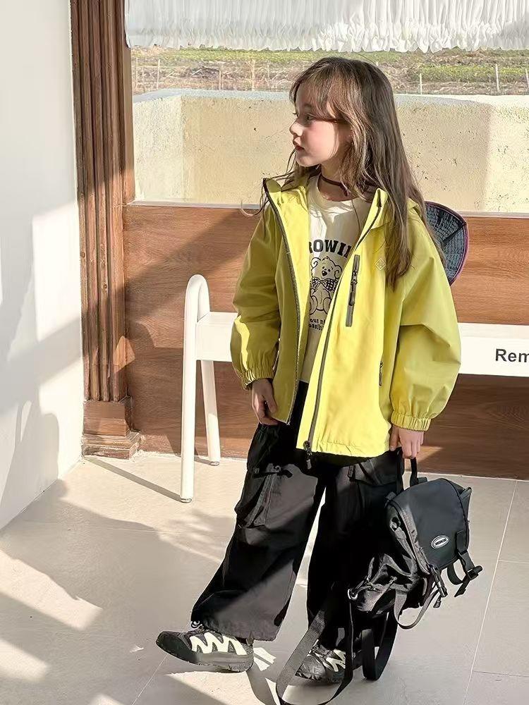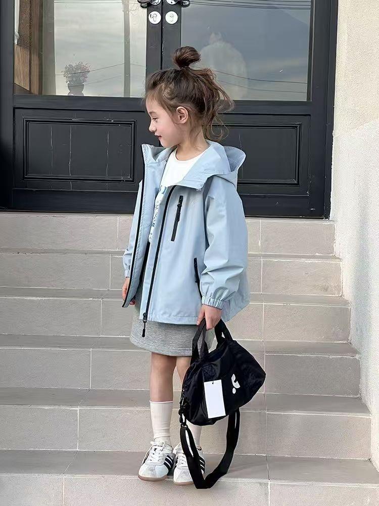 2025春季新款中大童上衣儿童户外冲锋衣女童休闲宽松防风连帽外套