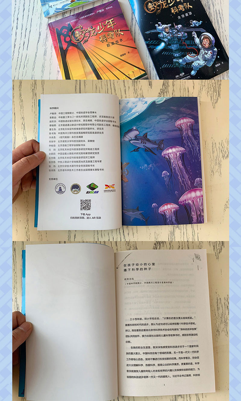 “蛟龙少年科考队”这套书采用了孩子喜爱的讲故事方式,巧妙地通过细节设计激发孩子对高科技项目的兴趣,并在每一个章节进行了知识的梳理,这是在快乐中学习的好模式。航天探月、深海探测、高铁和桥梁建设四大领域都是我国重点科研领域,近年来取得了重大突破,不仅推动了国家的发展,也对我们的生活产生了深远的影响。读这套书,不仅能让孩子了解我们伟大祖国最前沿的科技成果,从小培养民族自豪感和自信心,还在孩子们幼小的心灵里播下一颗爱科学、学科学的种子。