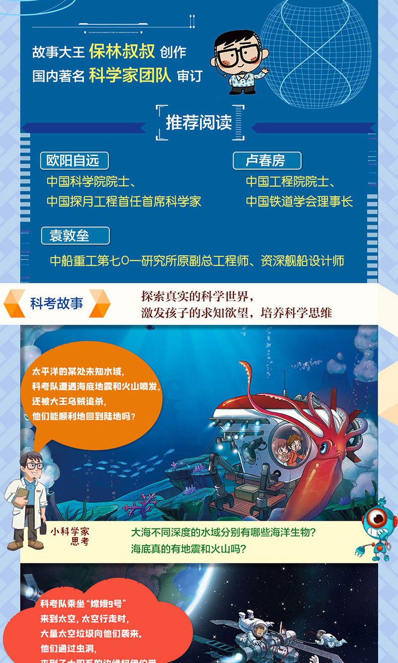 2、“故事大王”保林叔叔联袂四大领域一线科学家创作,集趣味性、专业性于一体。