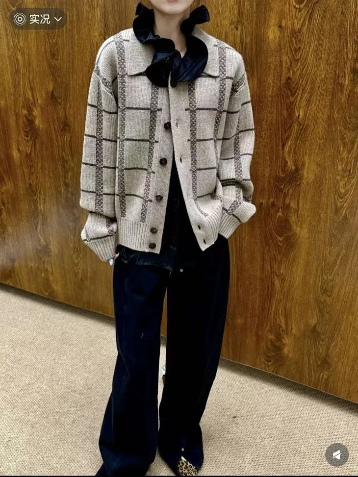 【名称】格子扣领开衫