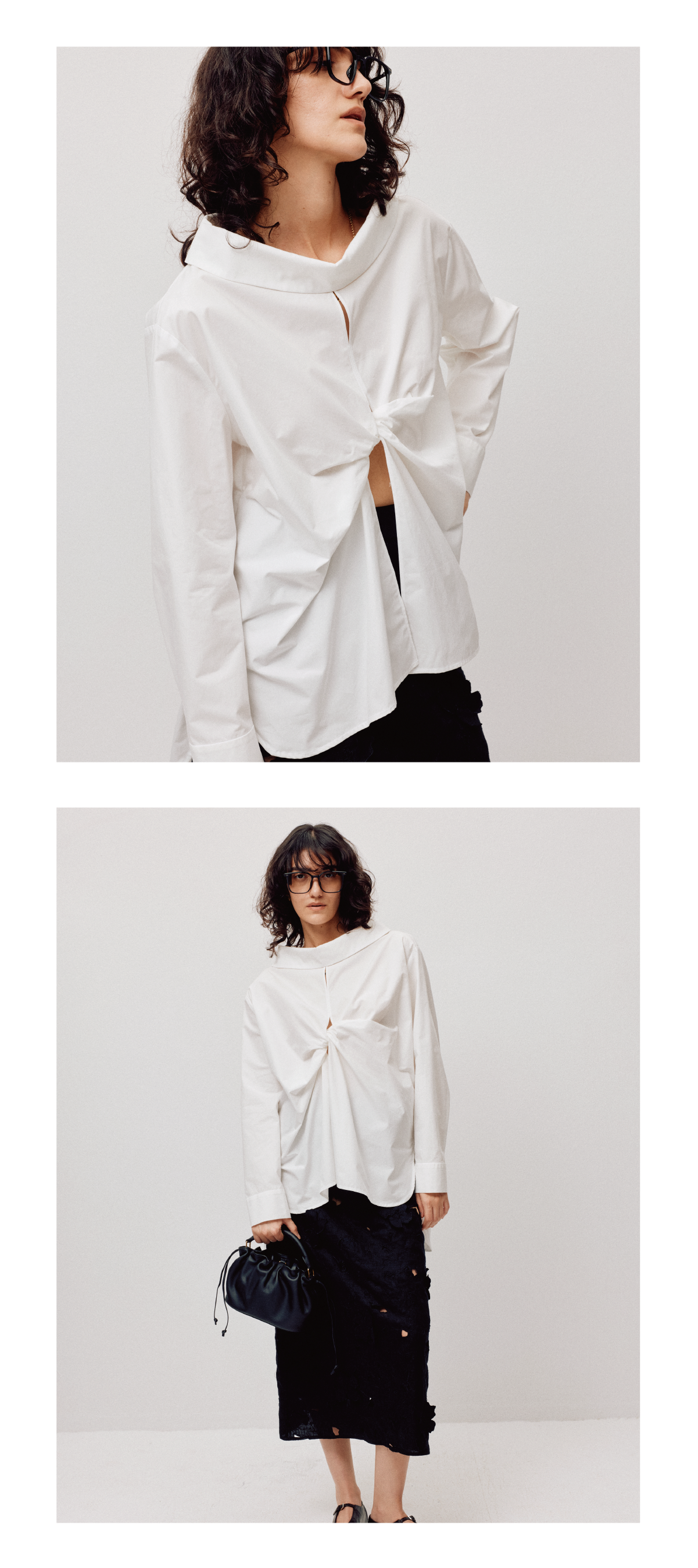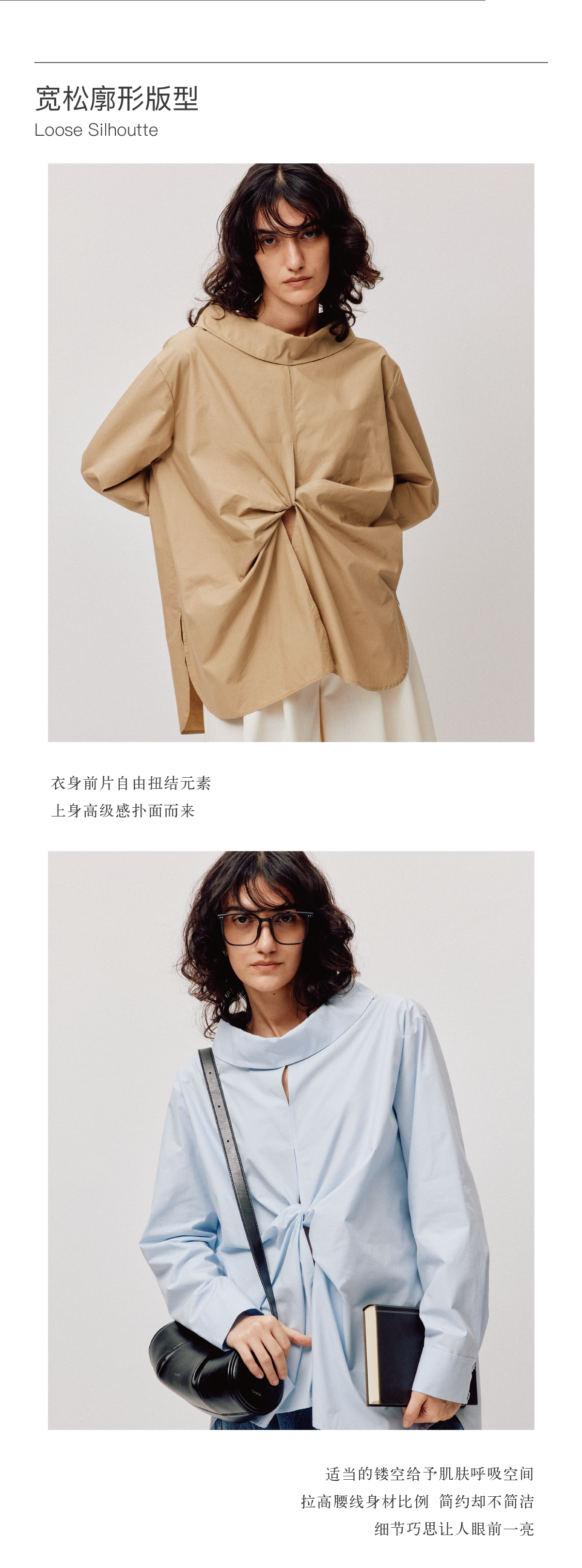 LIYIHAN织梦丨25春全棉扭结设计感衬衫小众设计女上衣宽松高级感