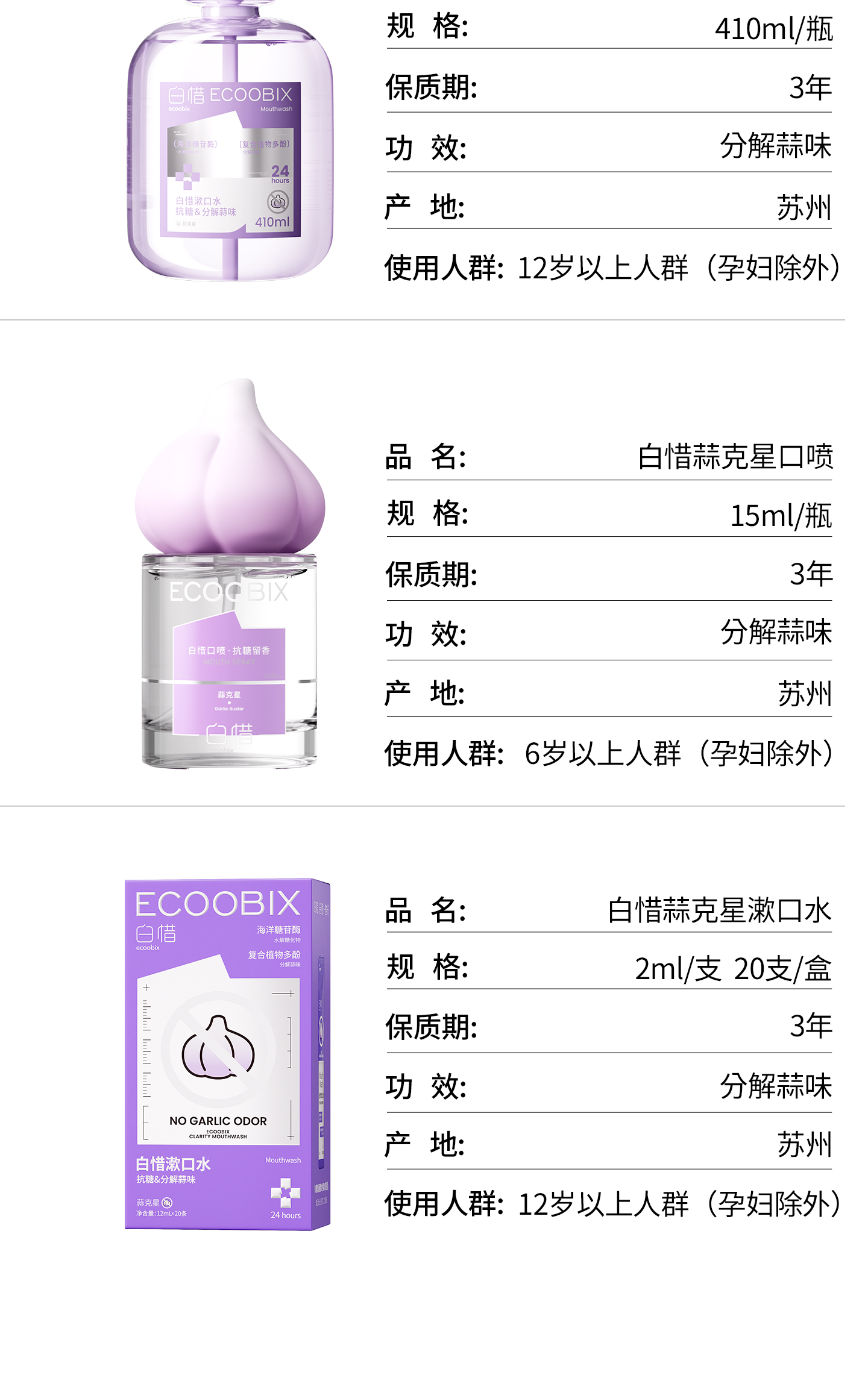 ☆【蒜克星系列】Ecoobix 白惜口喷 / 漱口水温和清新口气(赠漱口水12ml*6+牙膏25g+贴纸,贴纸赠完为止)