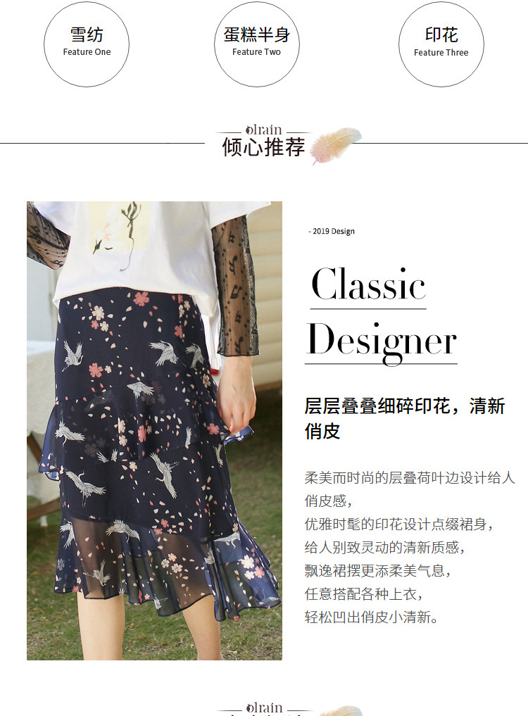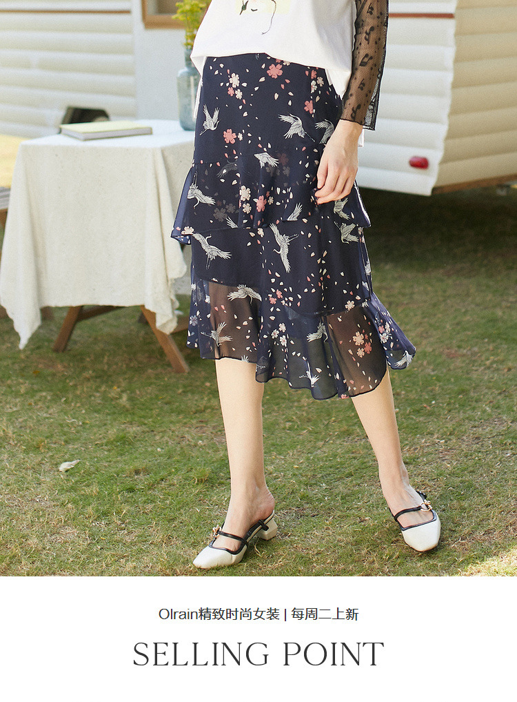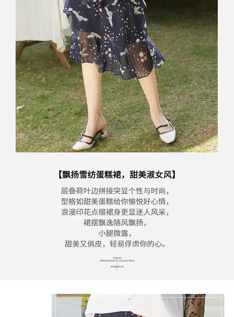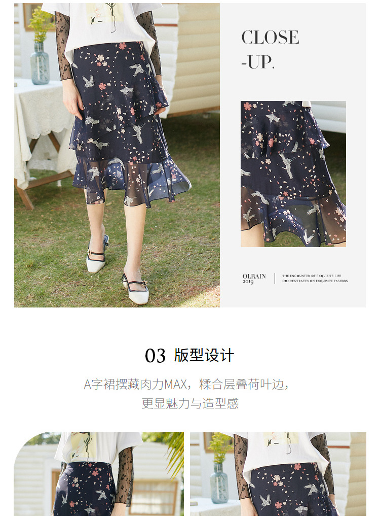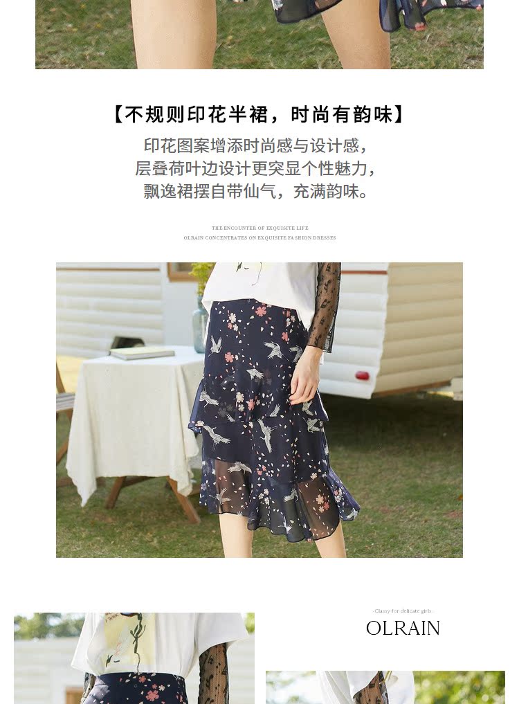 欧芮儿雪纺半身裙女中长款2019秋装女装荷叶边a字裙叠叠裙女裙