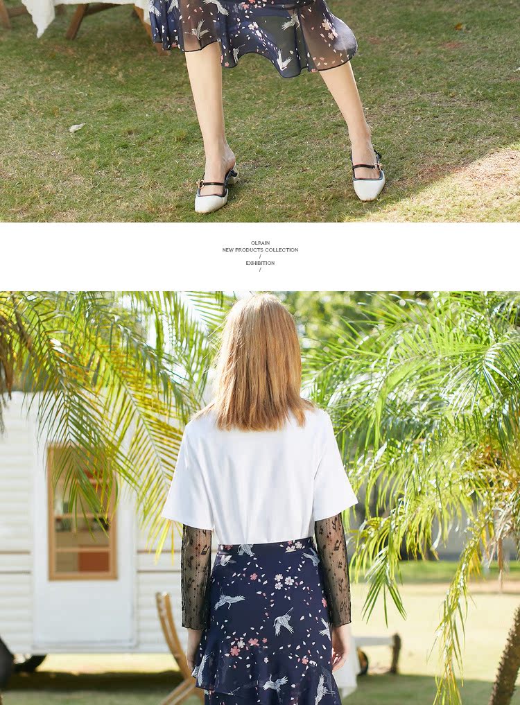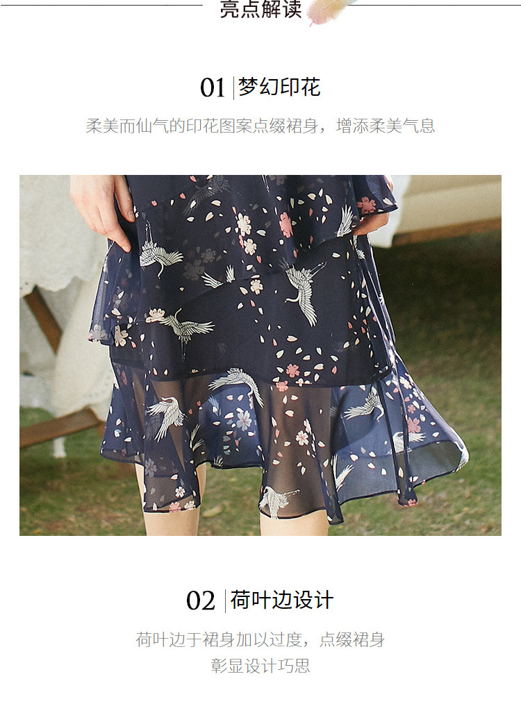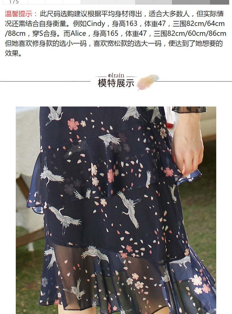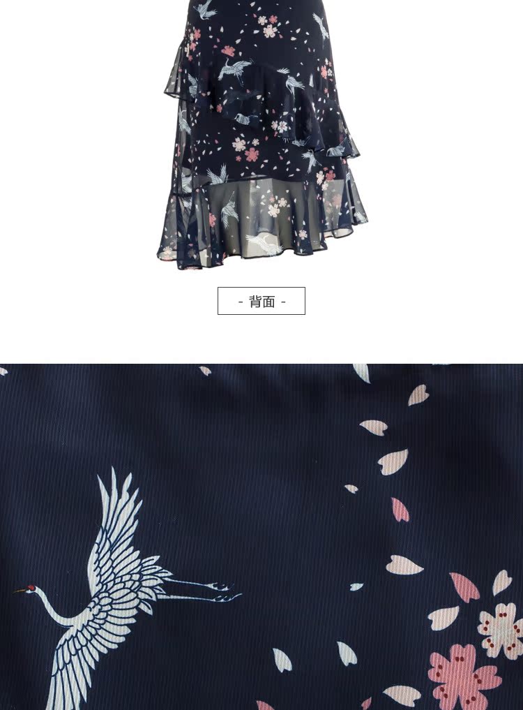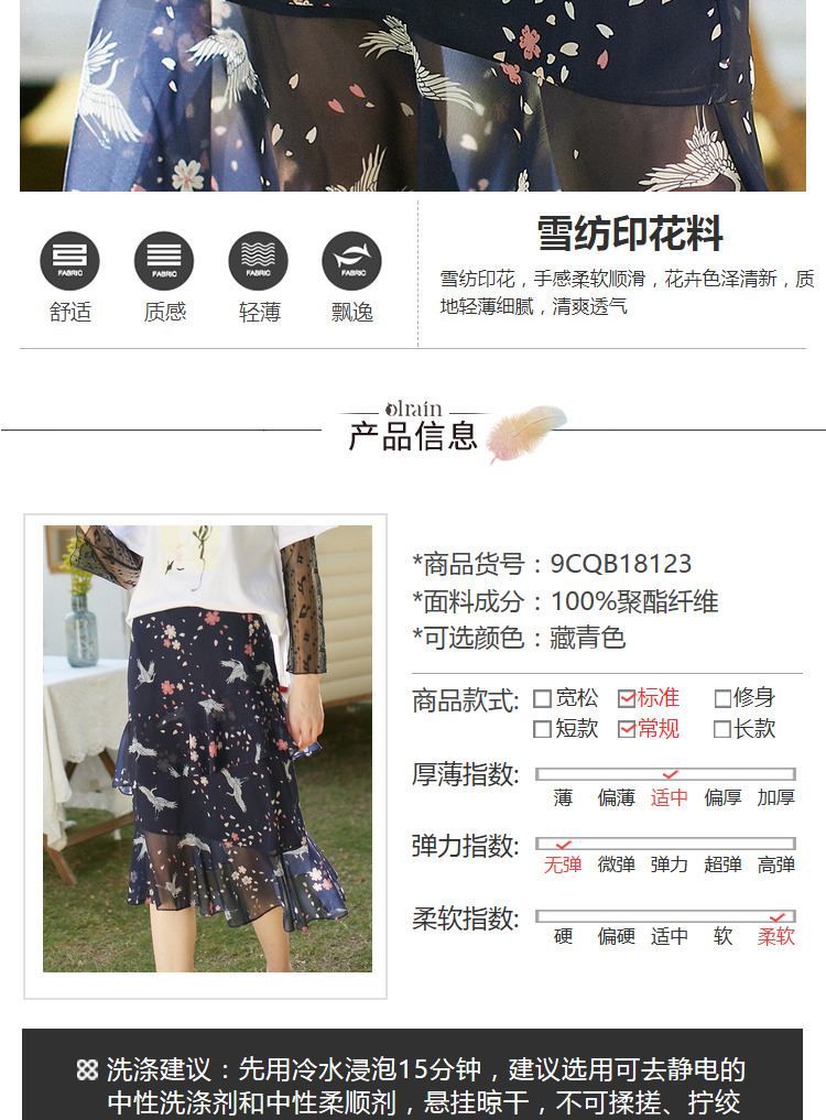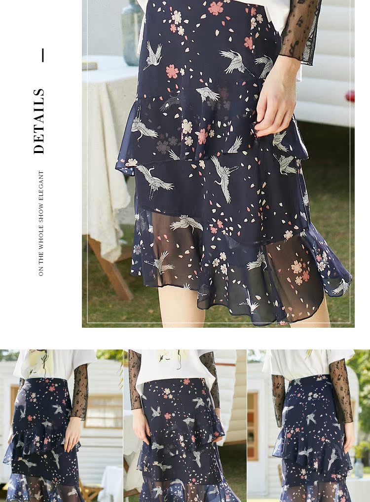 欧芮儿雪纺半身裙女中长款2019秋装女装荷叶边a字裙叠叠裙女裙