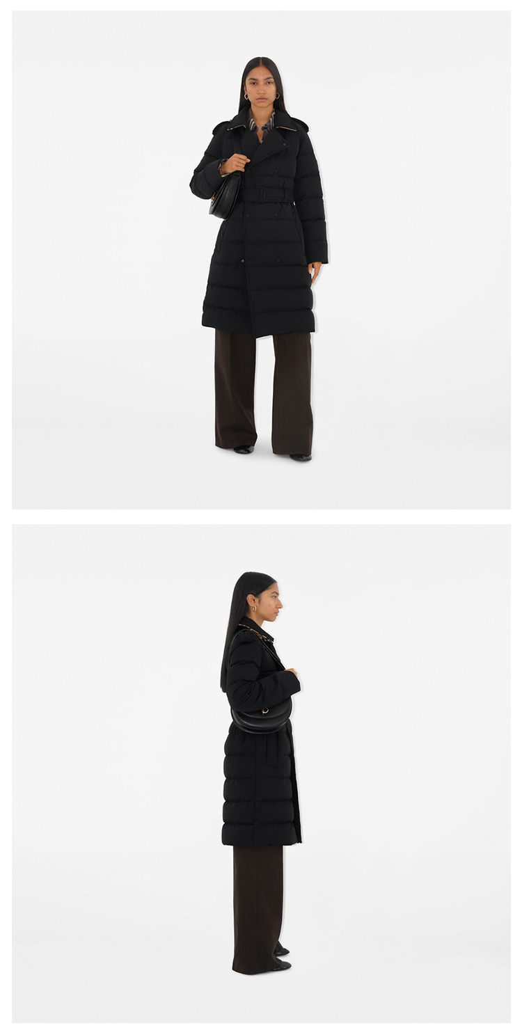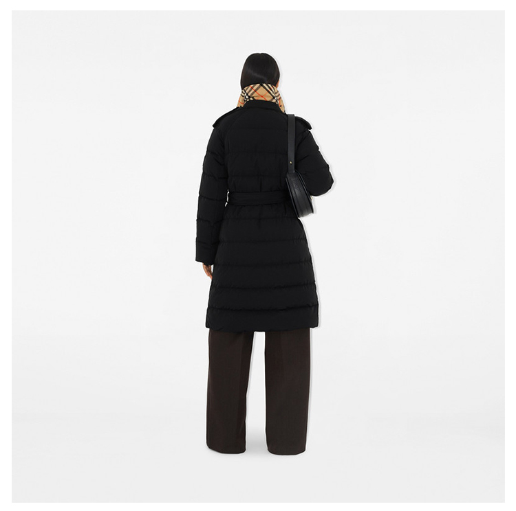 【一】BURBERRY 巴宝莉 女士中长款尼龙肯特羽绒服 黑色 8097869 C1900