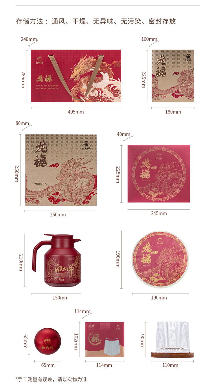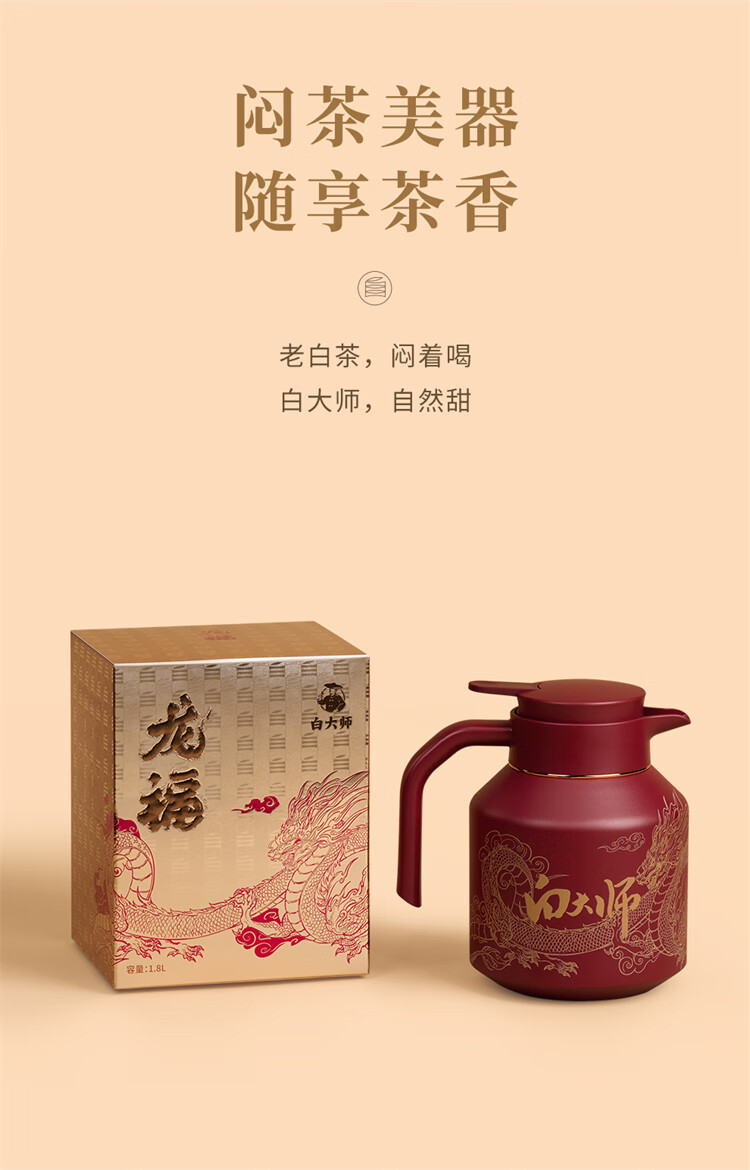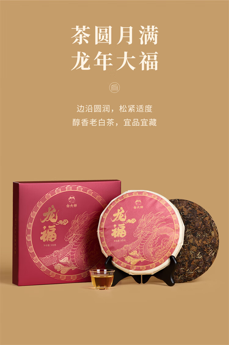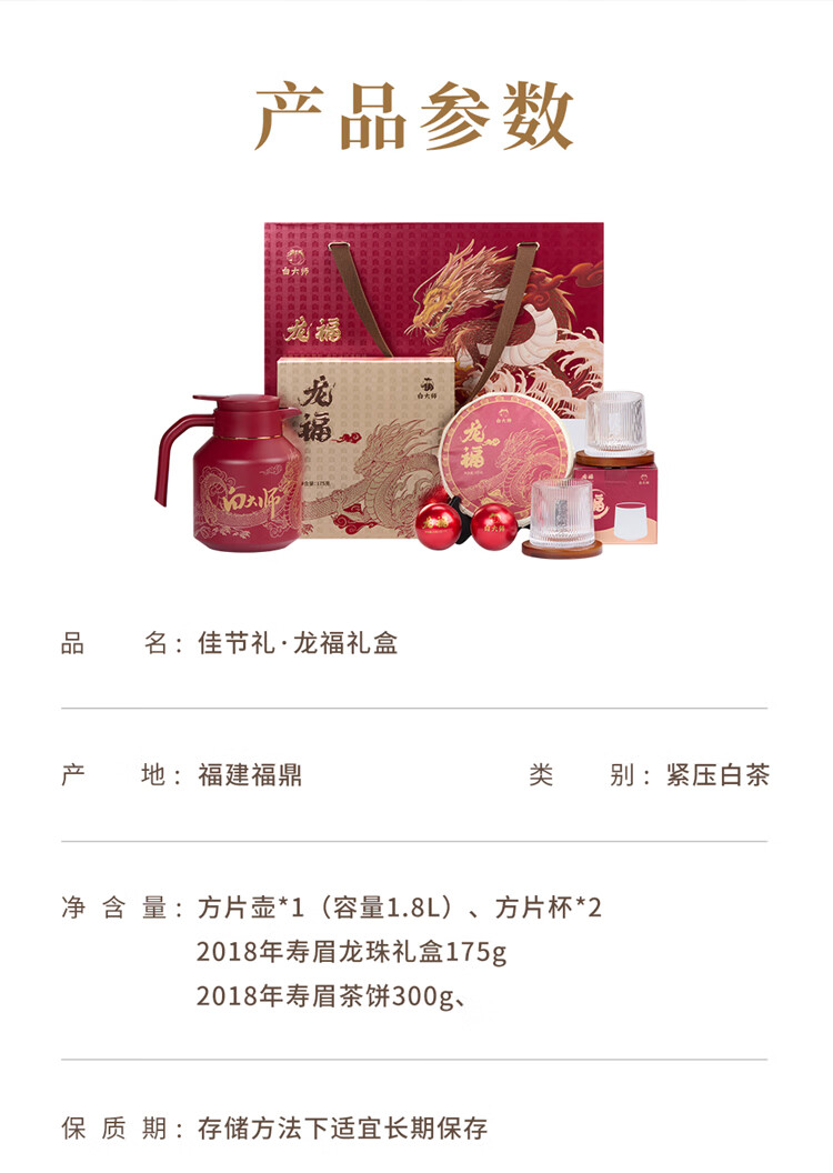 白大师茶叶白茶2018年一级寿眉茶饼龙珠白茶福鼎白茶龙年佳节礼盒装475g