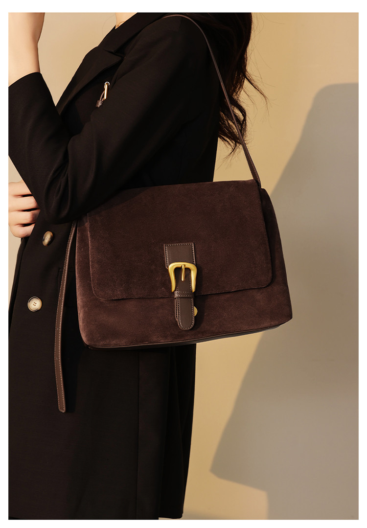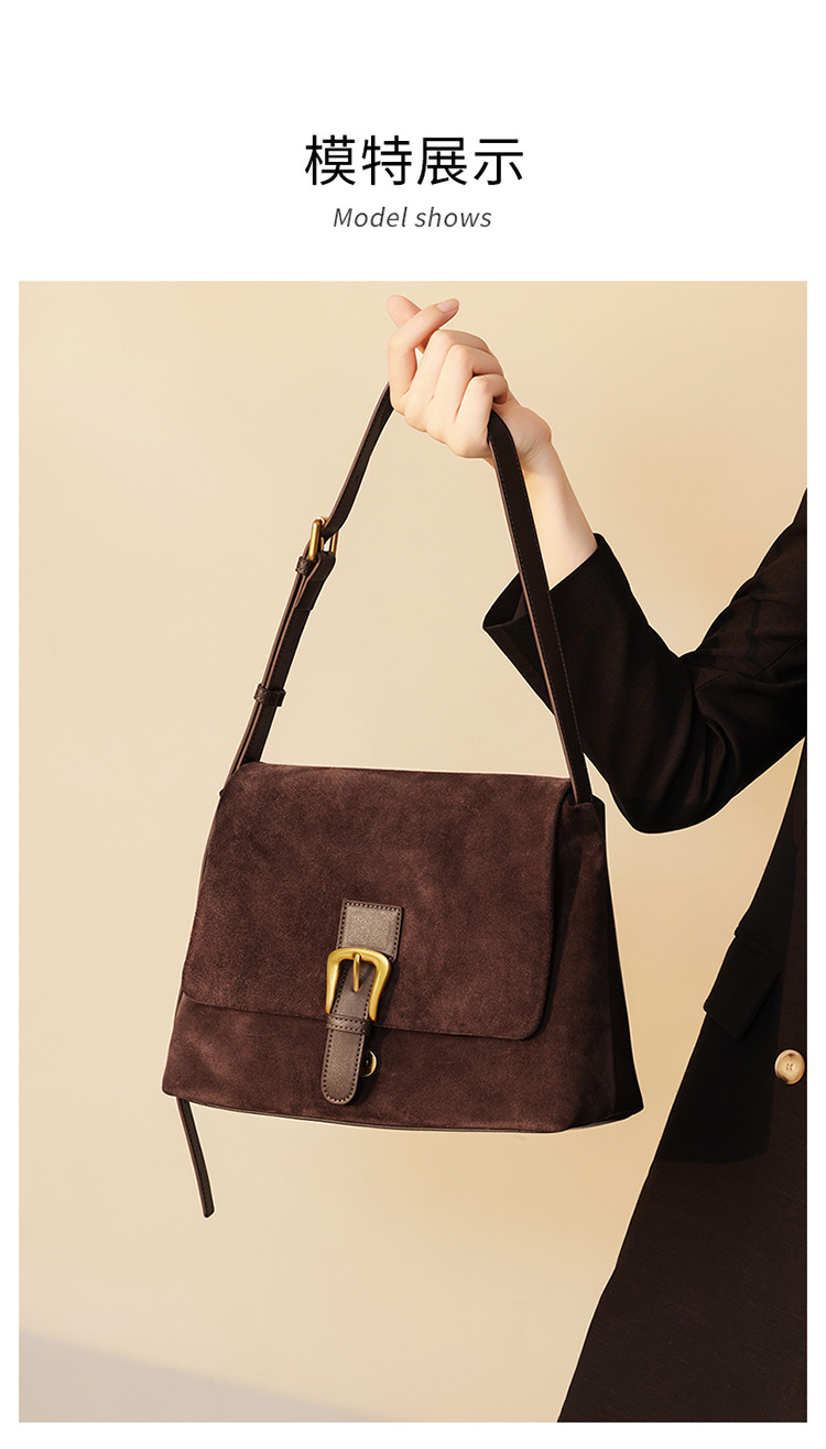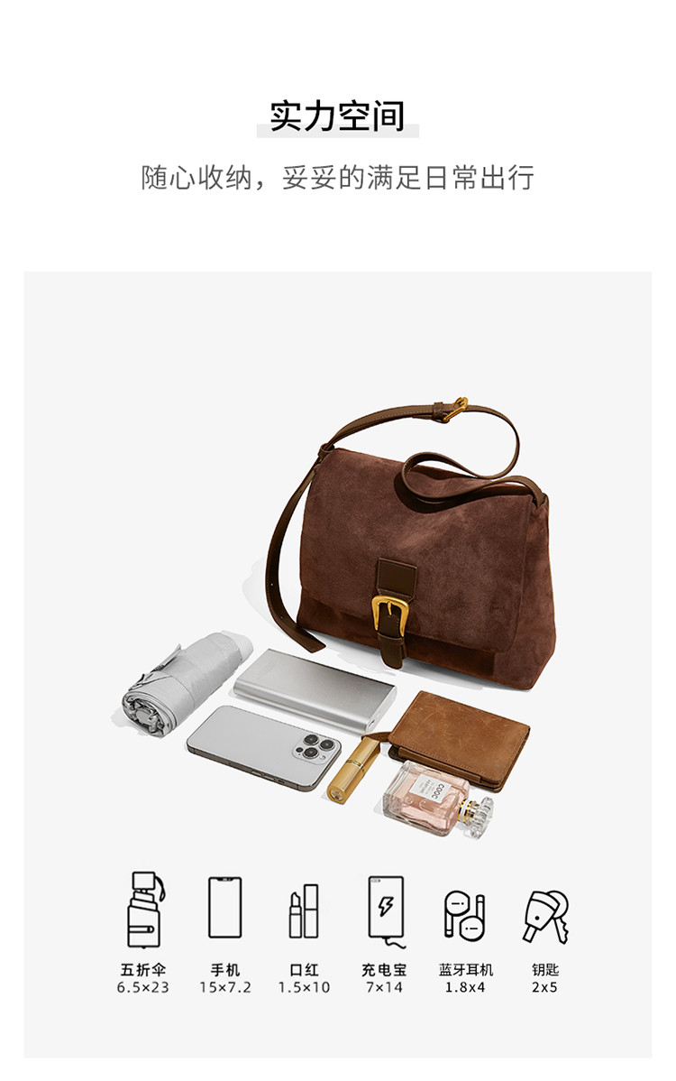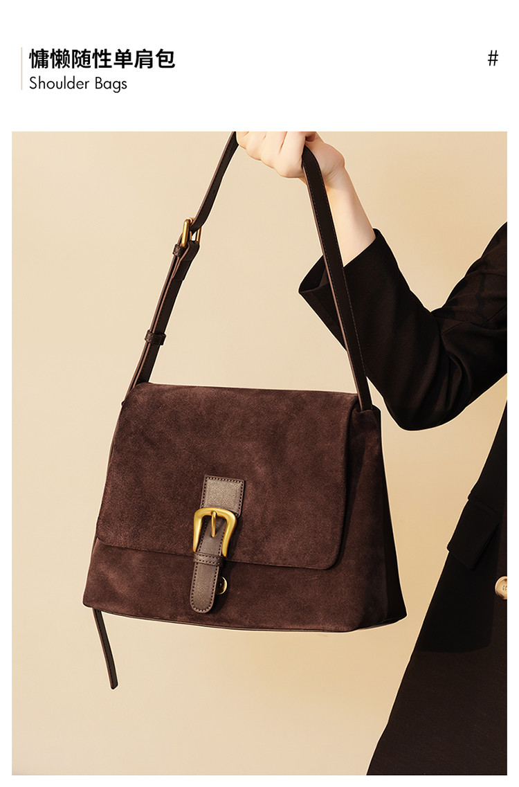 Safiya/索菲娅2024二层牛皮反绒方扣手机腋下包大容量女士单肩斜挎女包 SF9136059Y