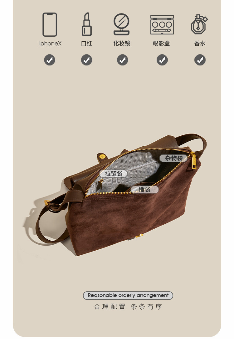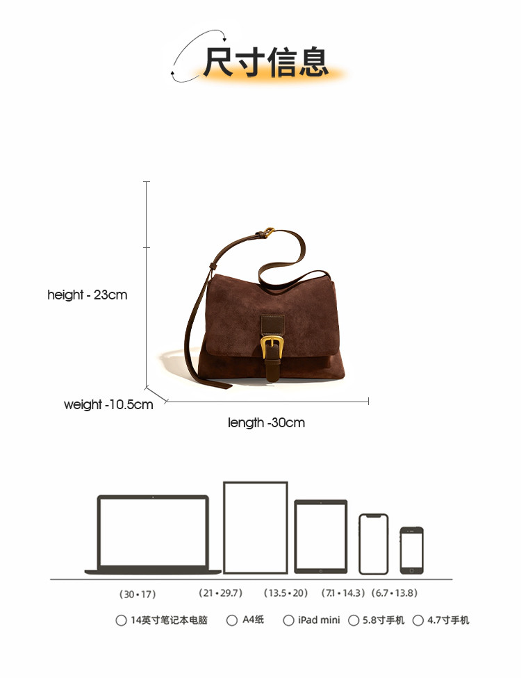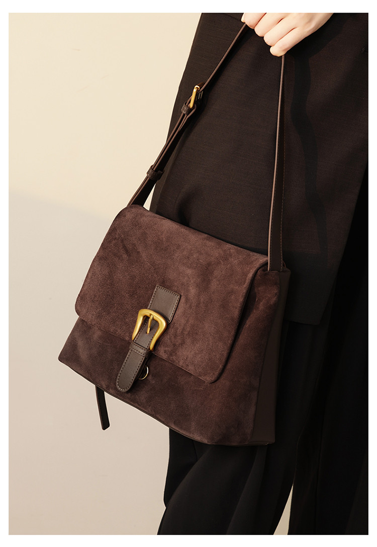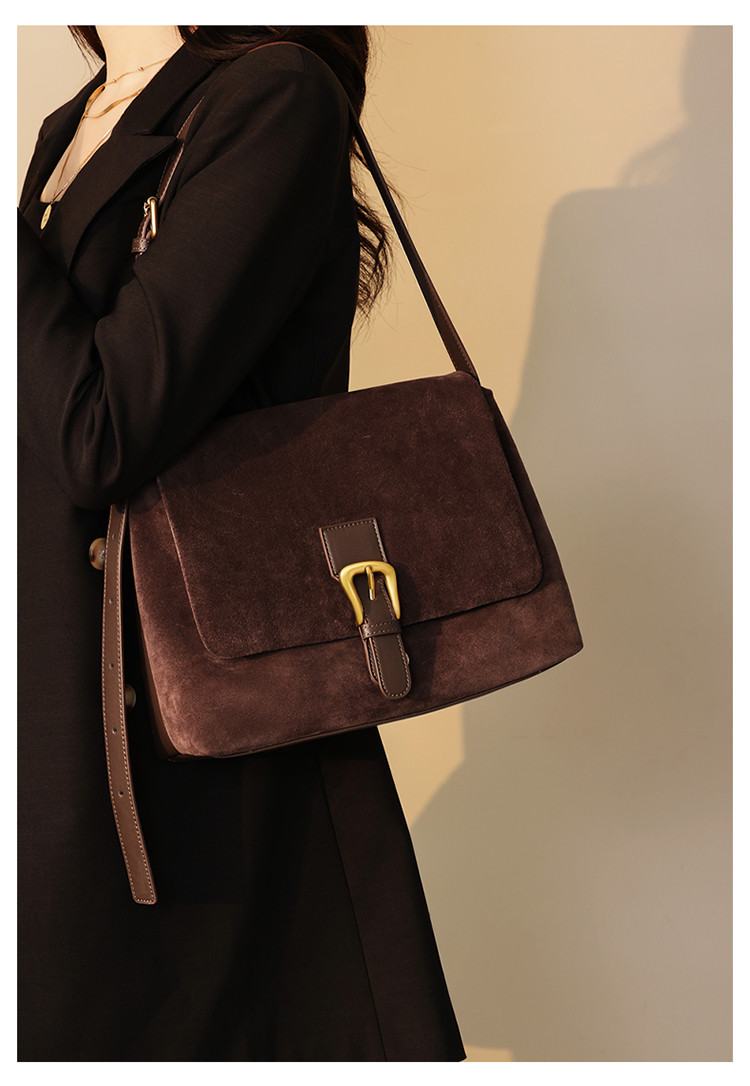 Safiya/索菲娅2024二层牛皮反绒方扣手机腋下包大容量女士单肩斜挎女包 SF9136059Y