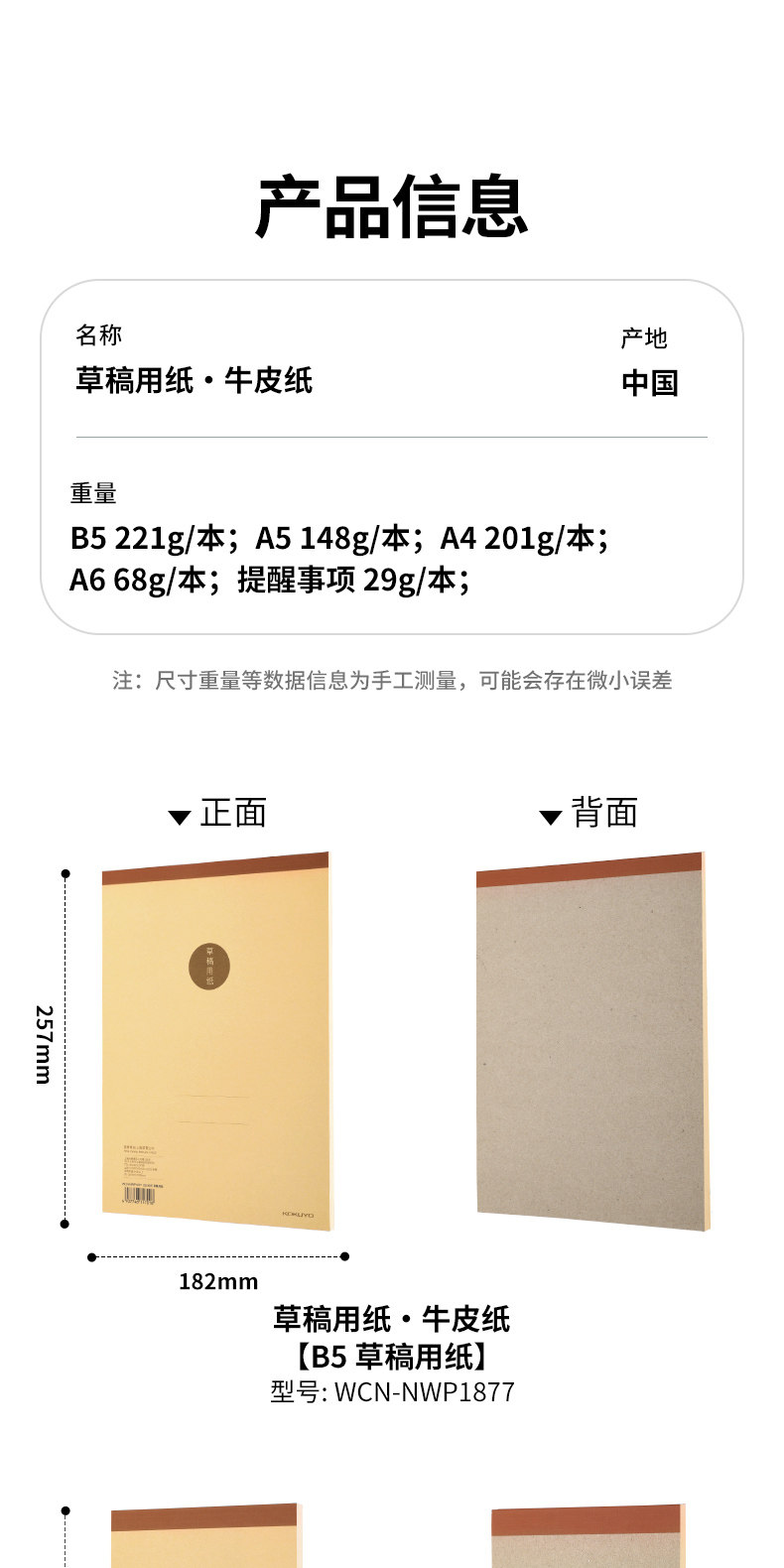 国誉2025年牛皮纸草稿本空白b5草稿纸