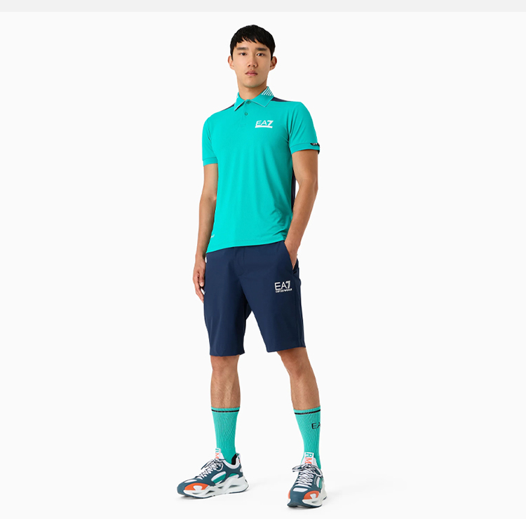 EMPORIO ARMANI EA7 阿玛尼 男士 EA7 徽标印花休闲短裤 蓝色 3DPS02 PNFTZ 1554