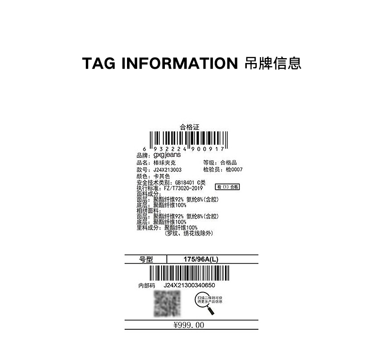 gxg.jeans男装 秋季热卖棒球夹克J24X213003