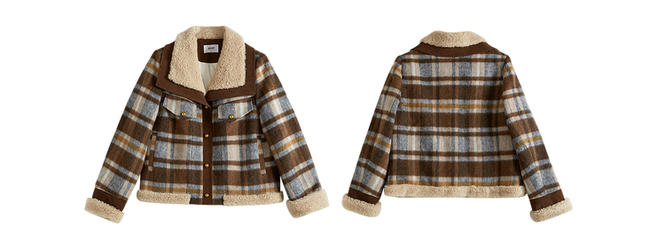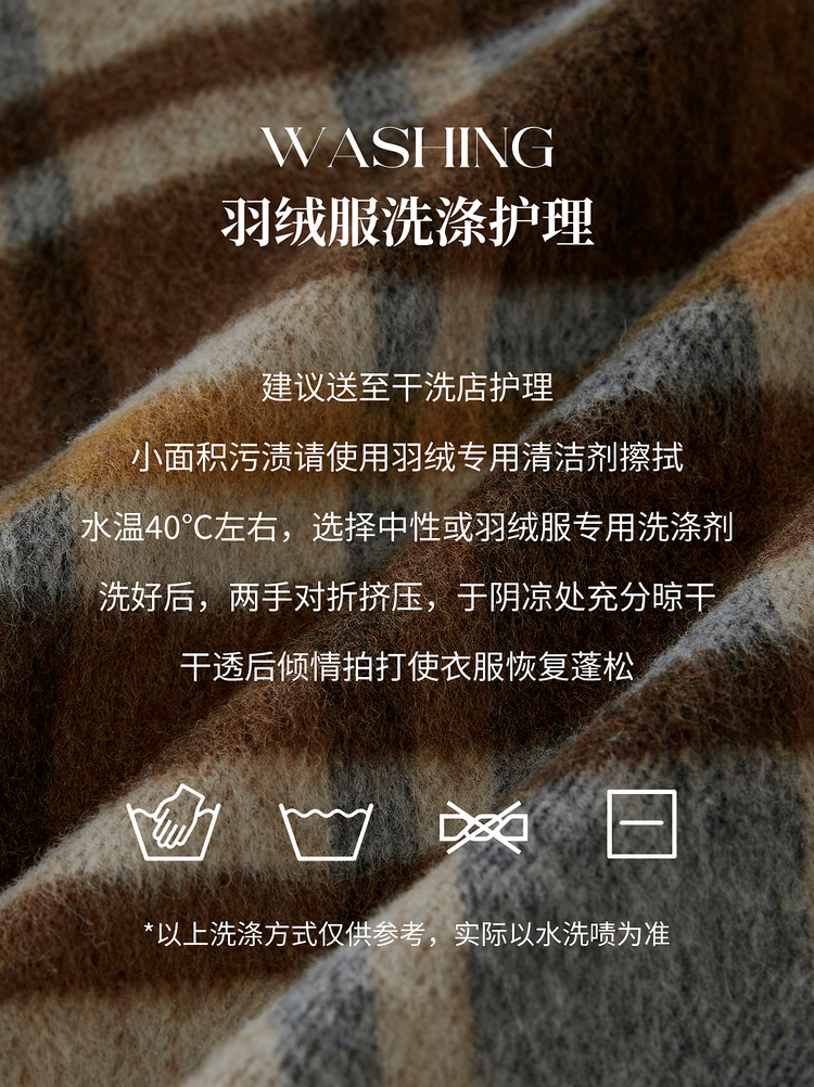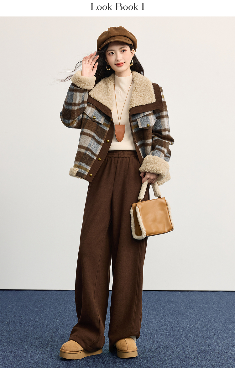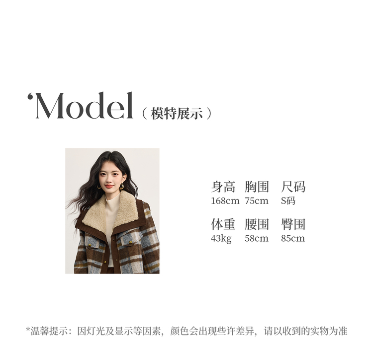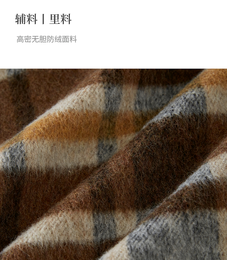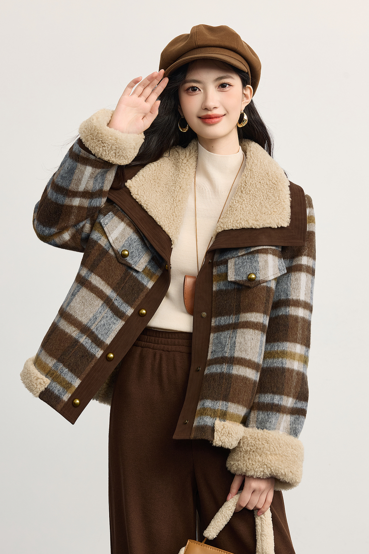 【11/19新品】熙世界白鸭绒内胆羊毛呢短外套女2025冬季新款翻领复古格纹羽绒服