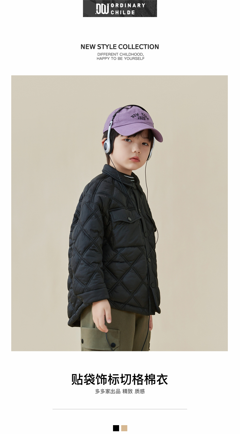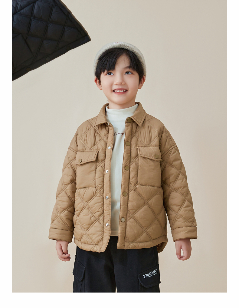 【团购价129.9元】多多家男童夹棉外套秋冬翻领儿童轻薄棉服2023秋新款秋装男孩棉衣8375