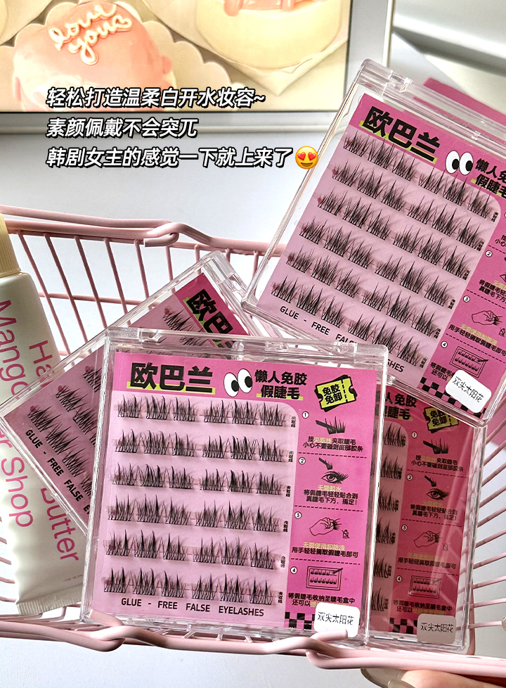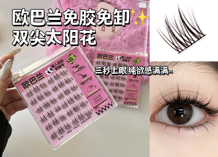 欧巴兰【新款太阳花免胶假睫毛】眼妆懒人三部曲自然妈生感手残党福音升级双尖款