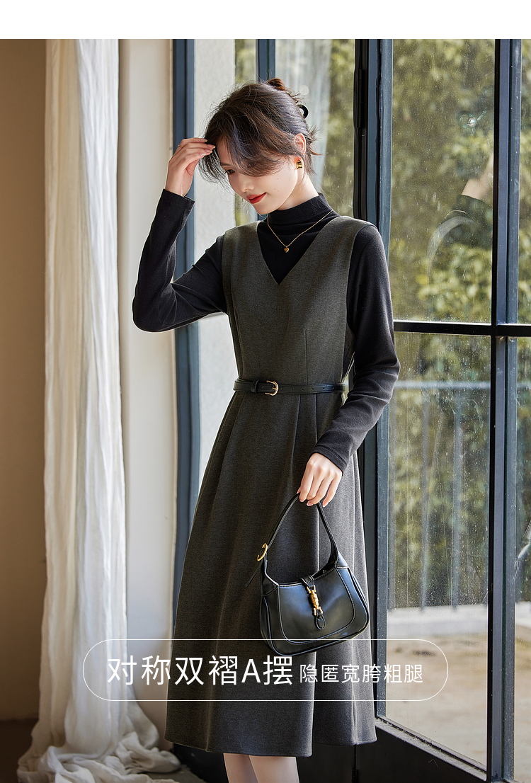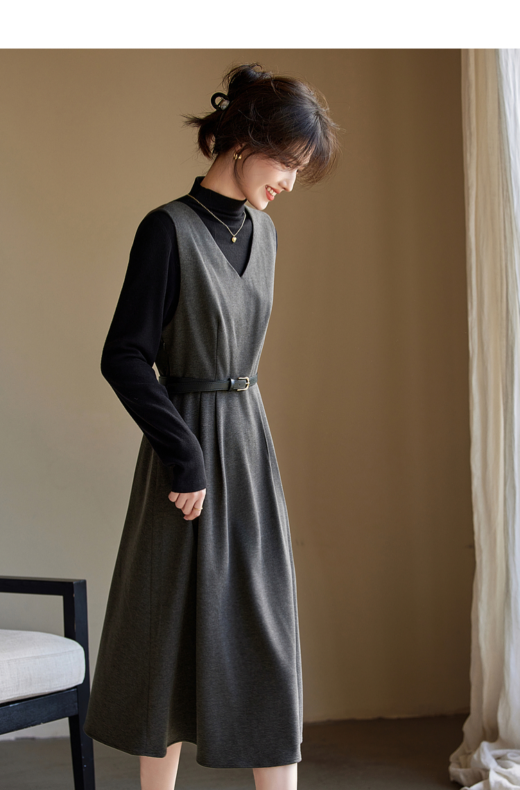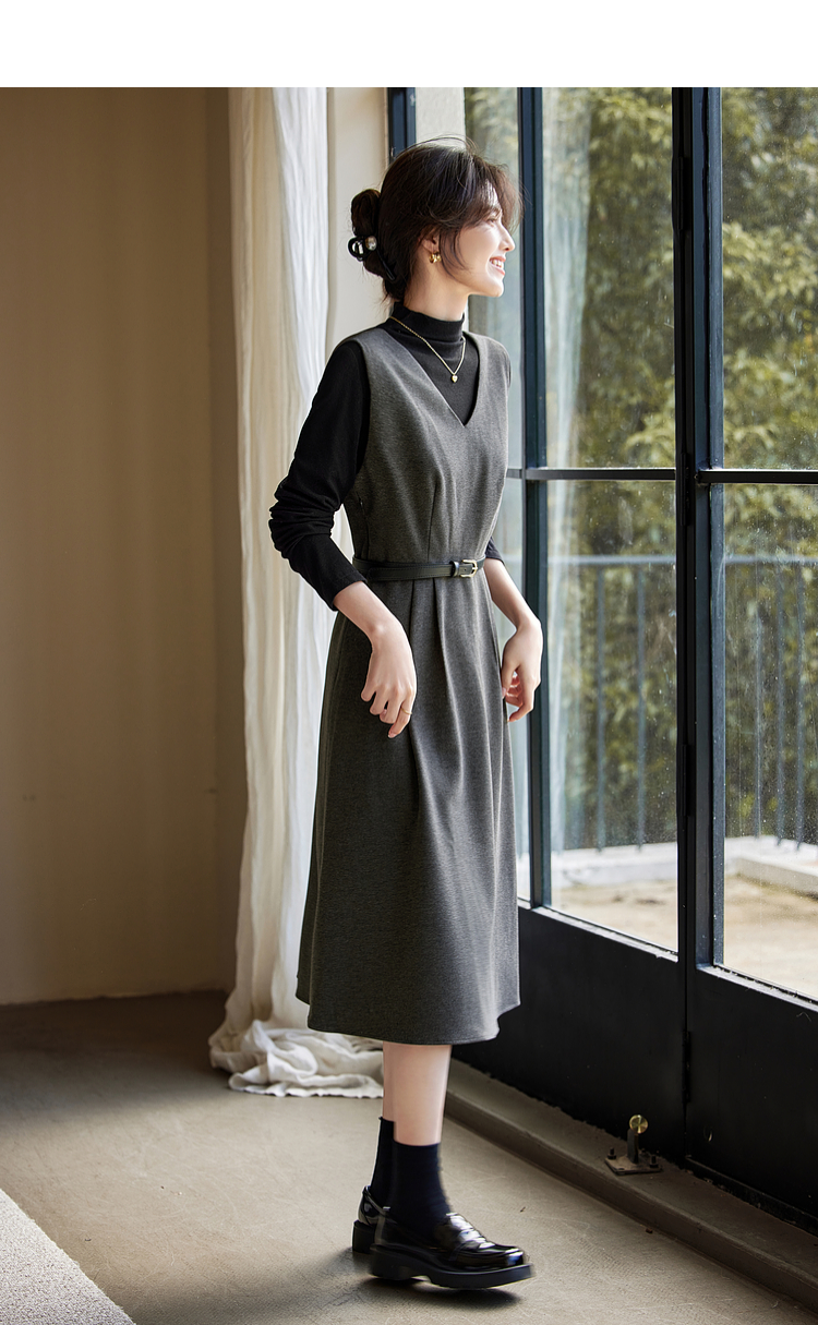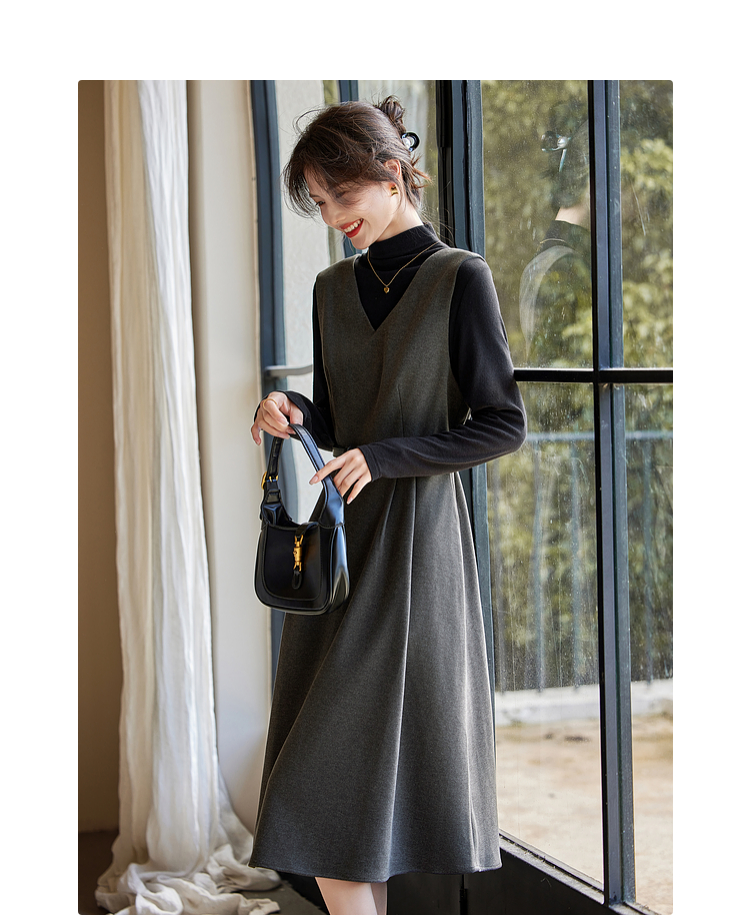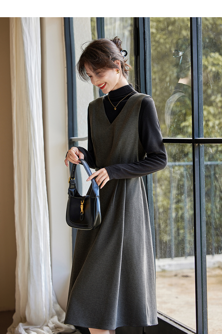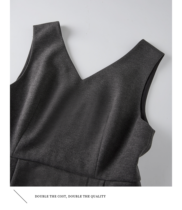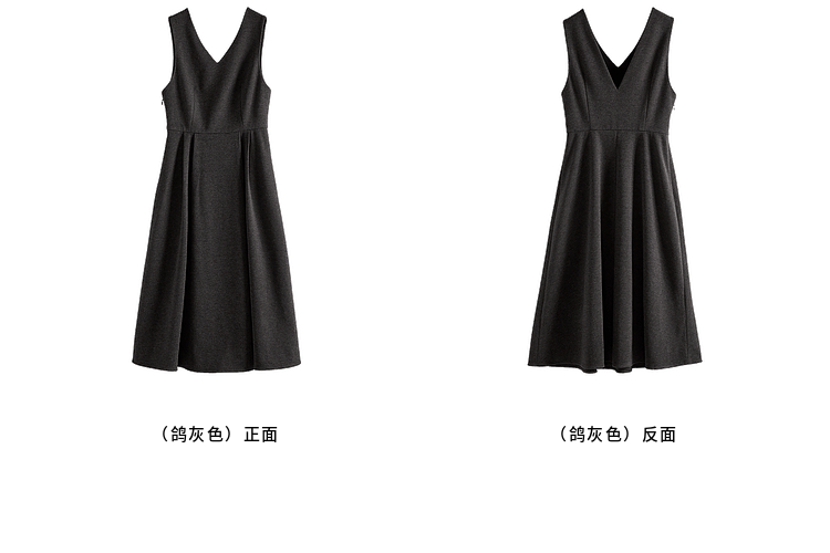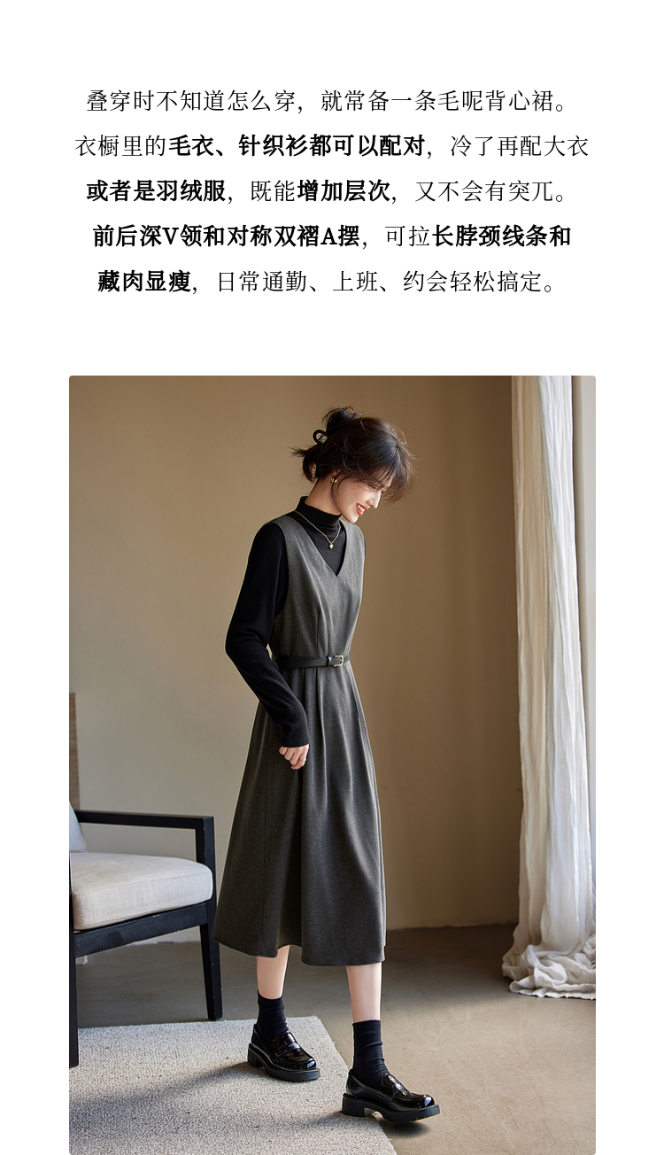 【1件65折】熙世界格雷系灰色毛呢背心裙子女冬季新款气质坎肩无袖V领连衣裙