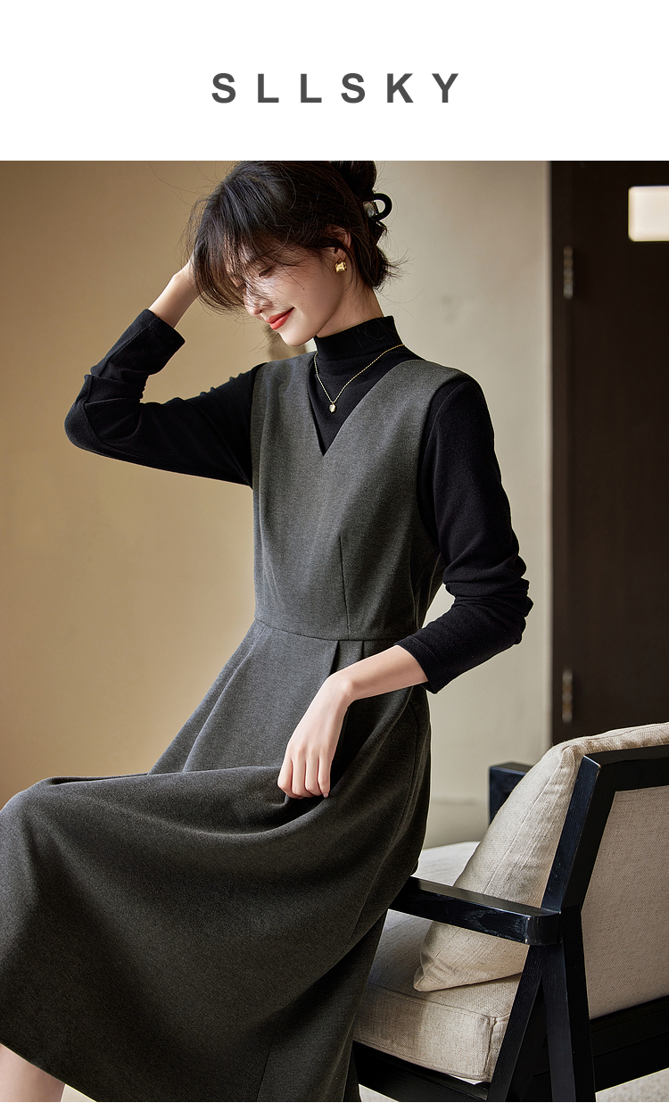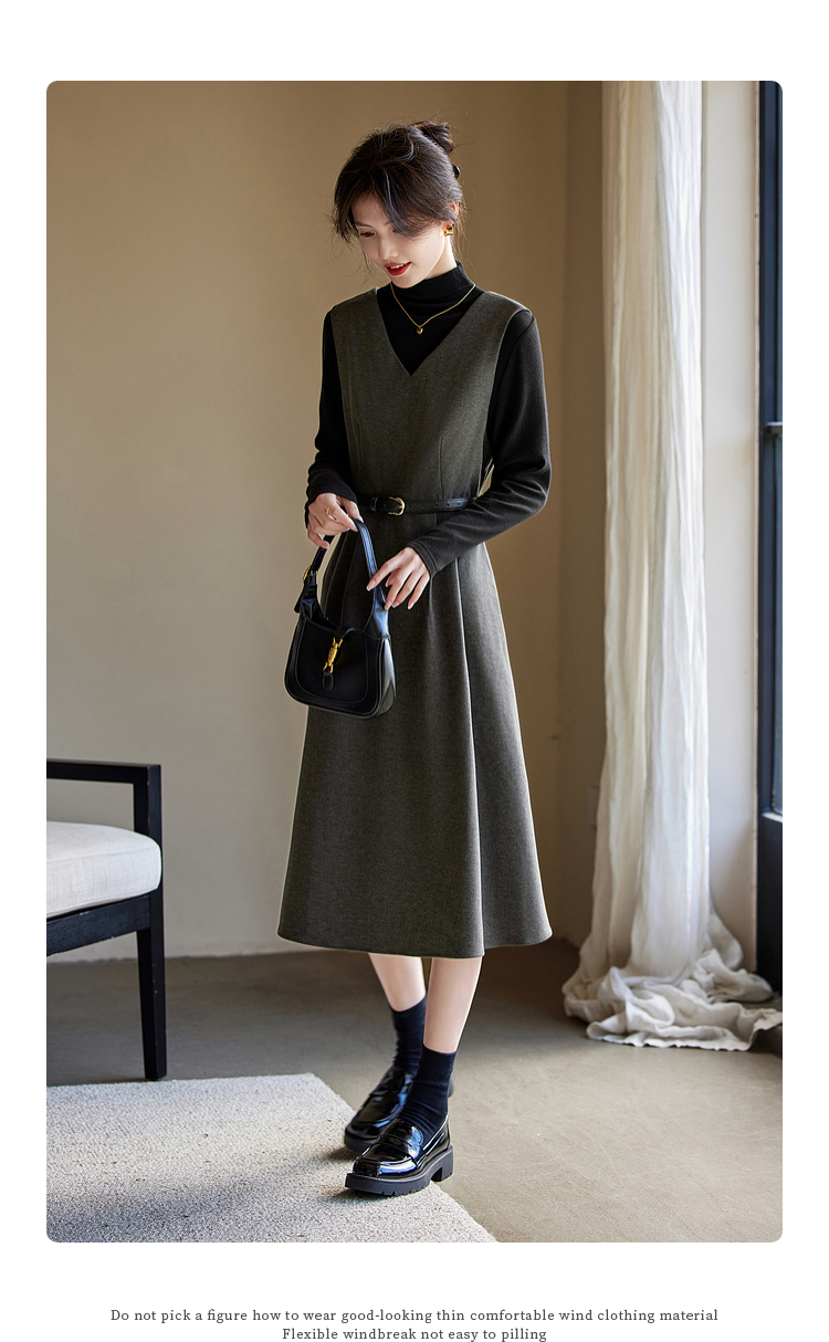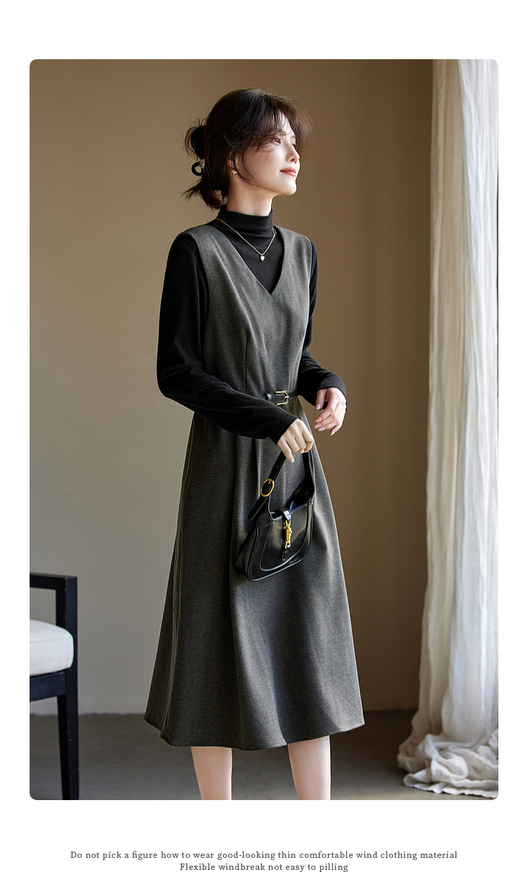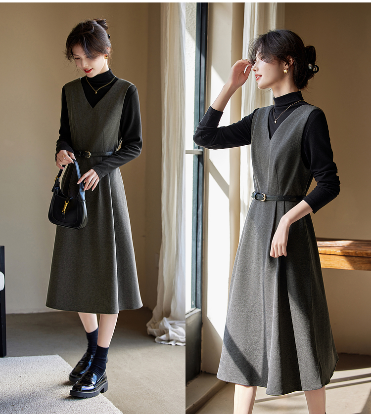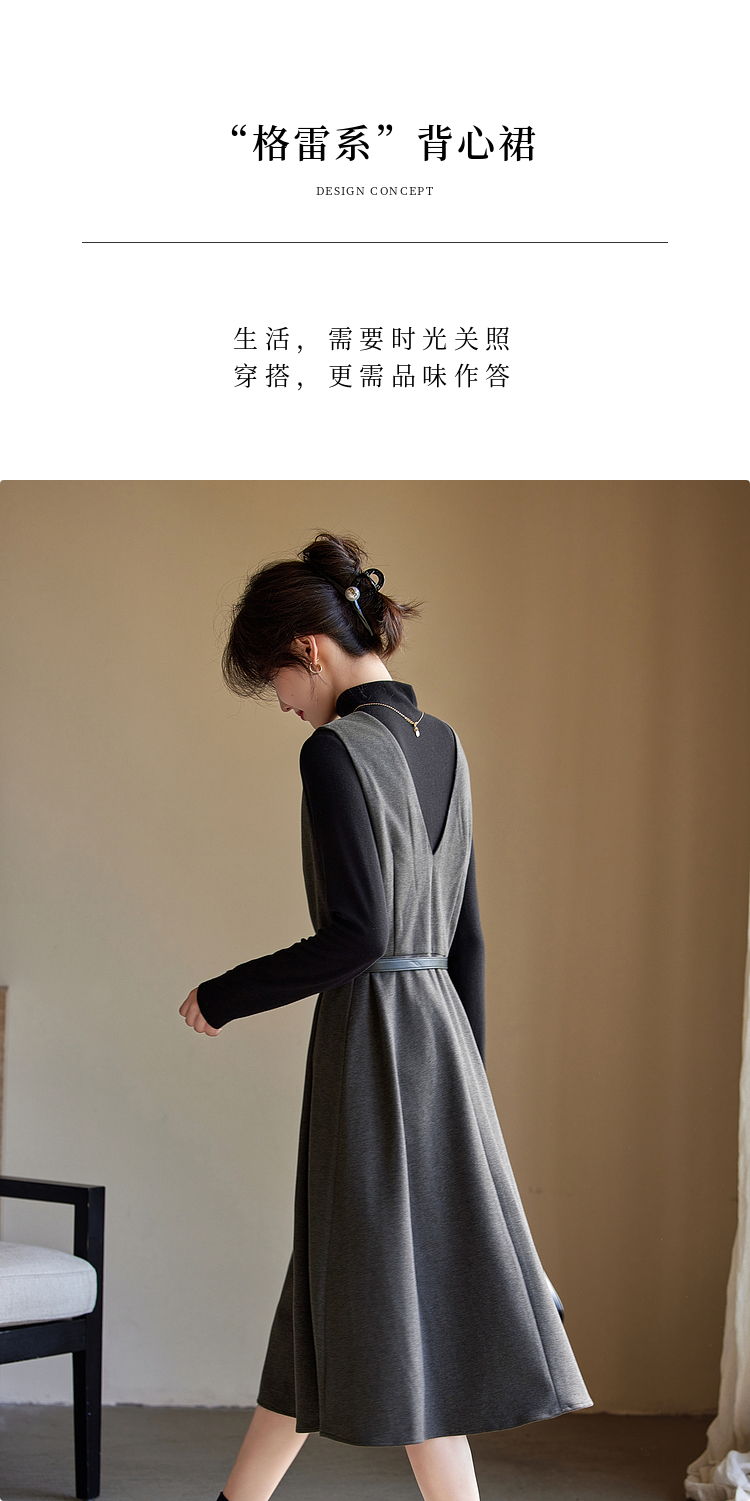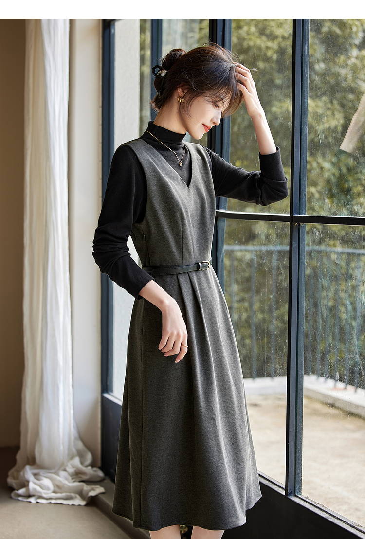 【1件65折】熙世界格雷系灰色毛呢背心裙子女冬季新款气质坎肩无袖V领连衣裙