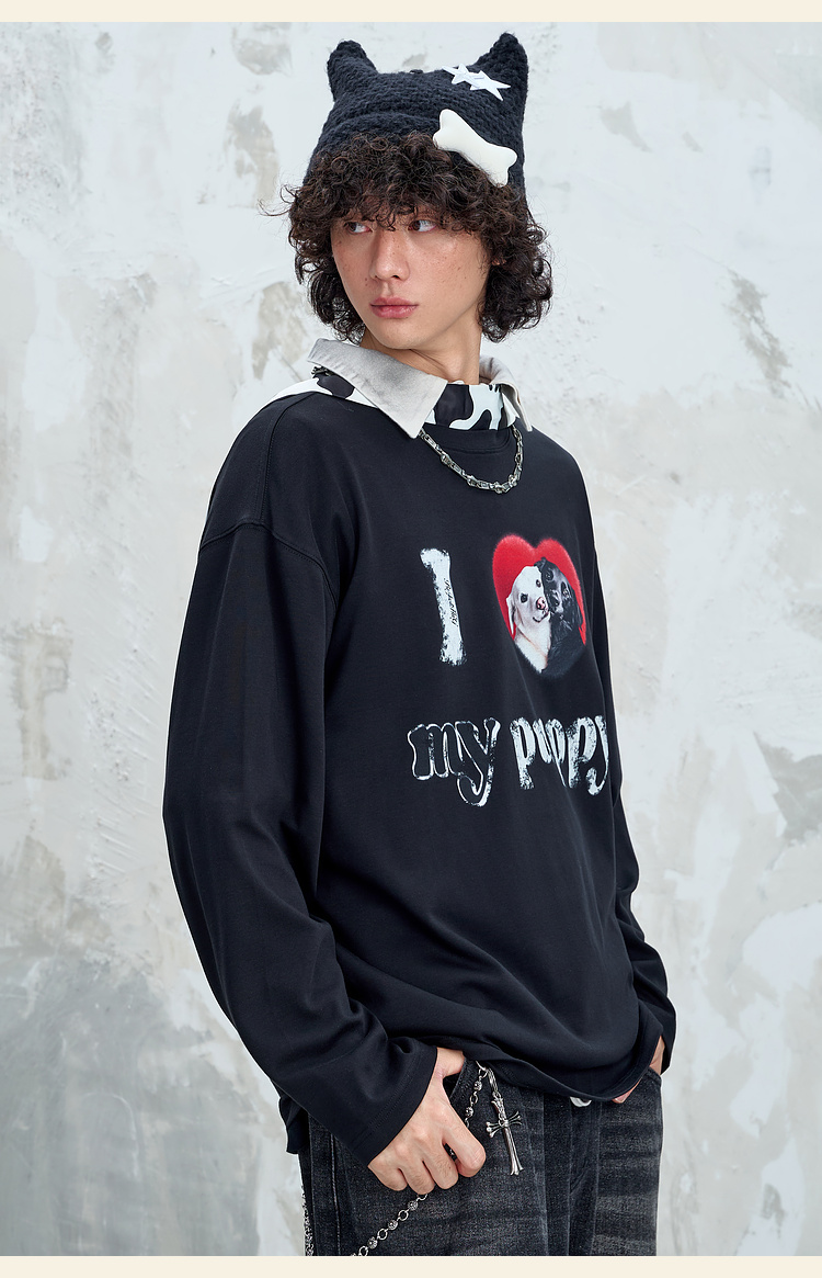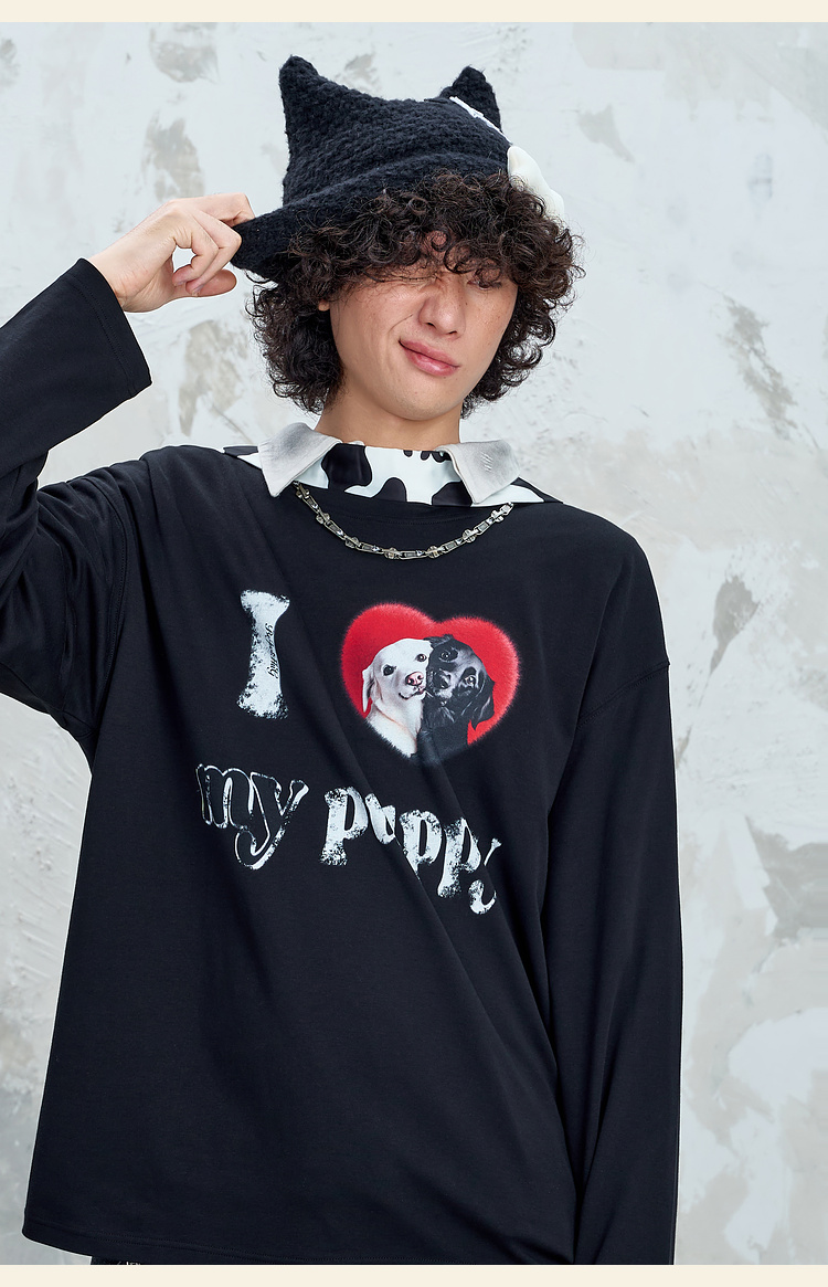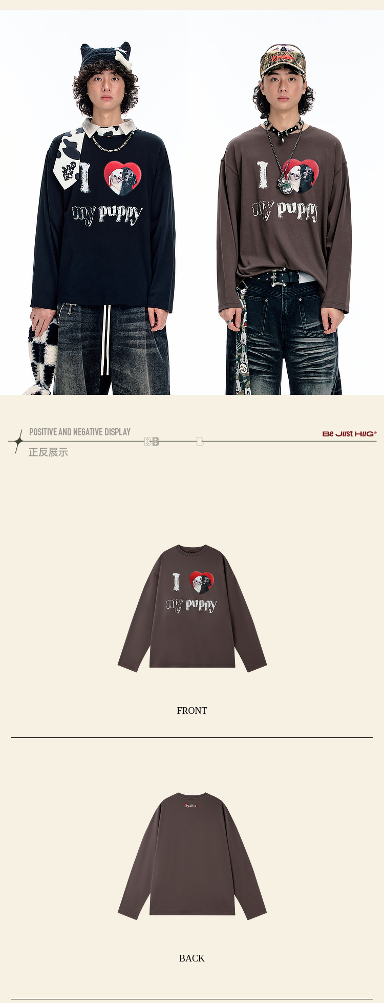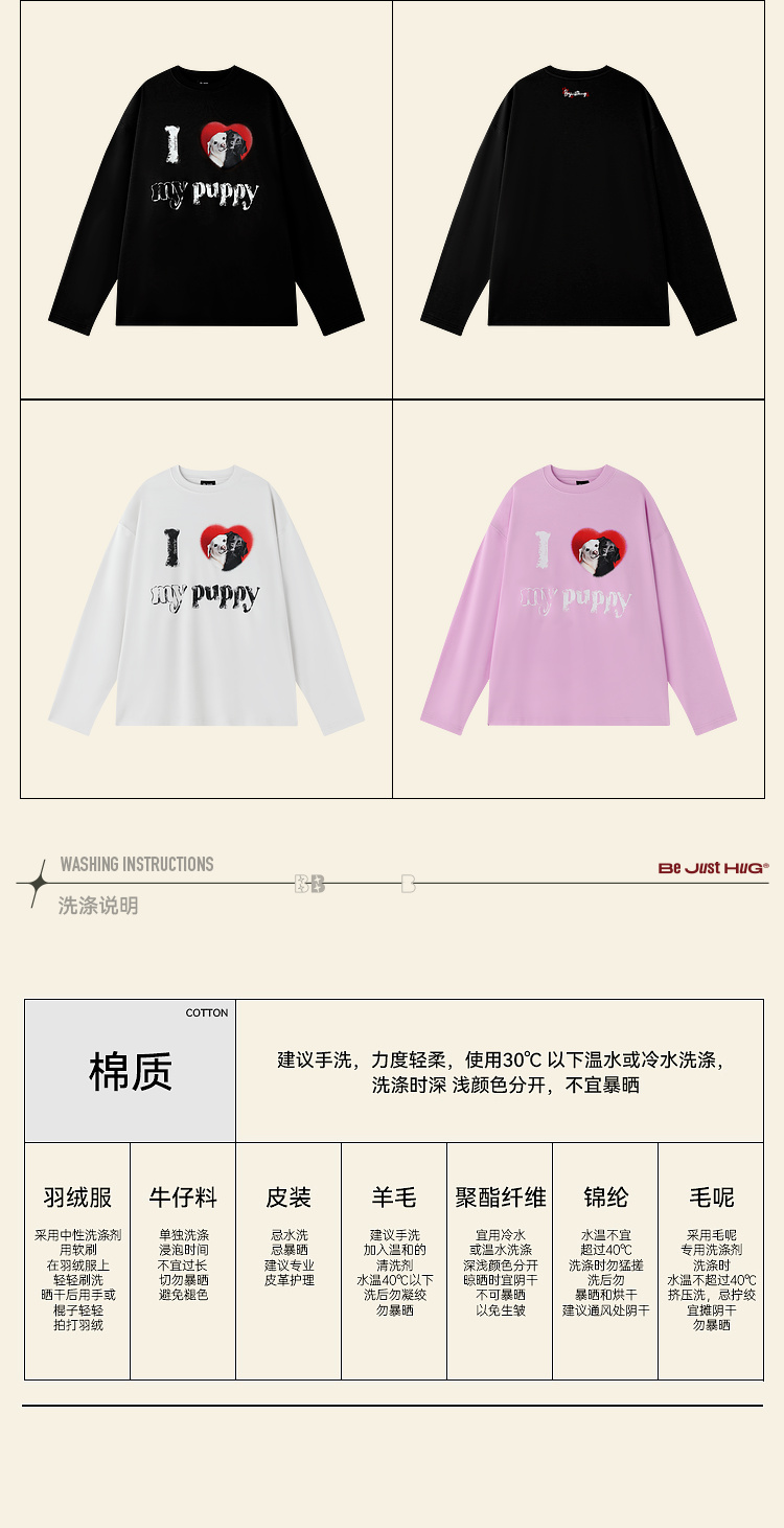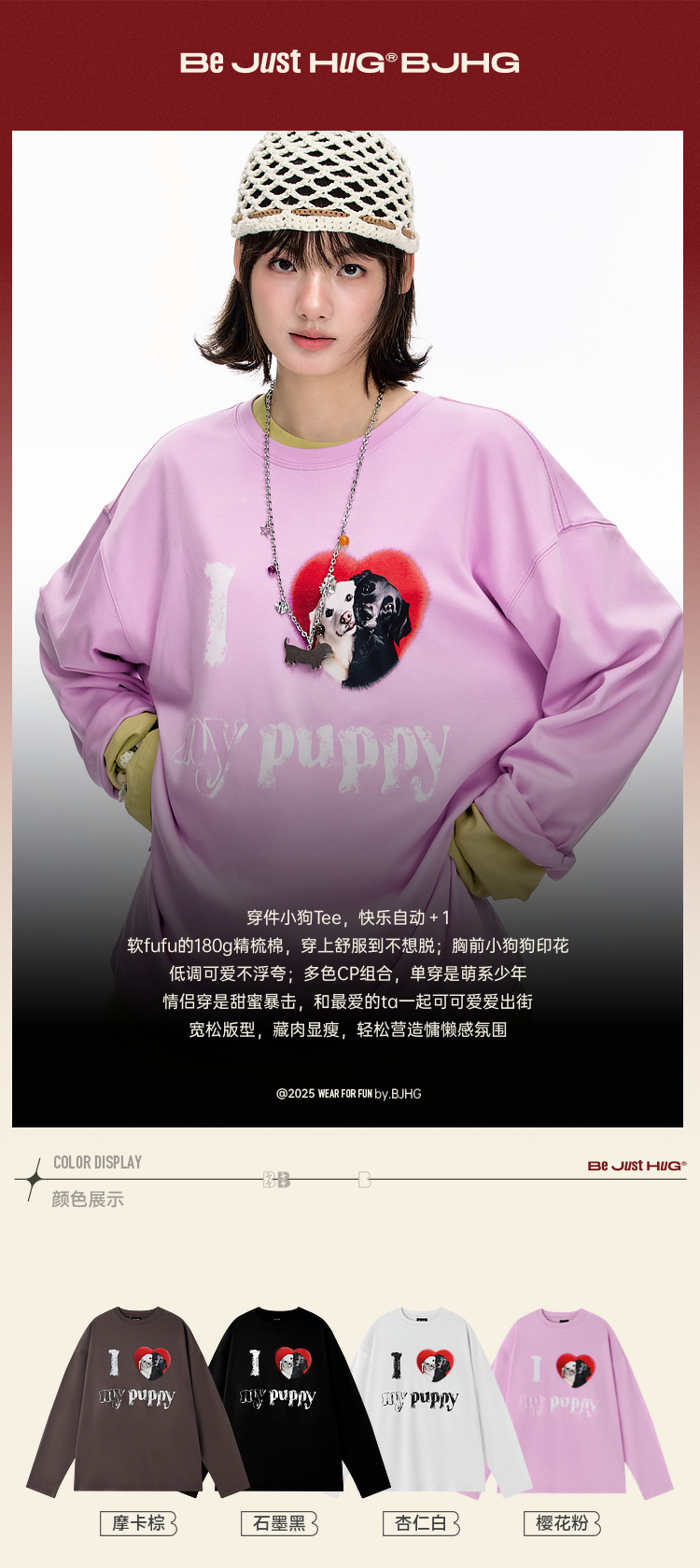 BJHG不计后果小狗趣味长袖t恤男款秋季基础打底设计感情侣装T恤女