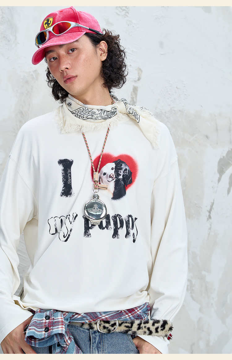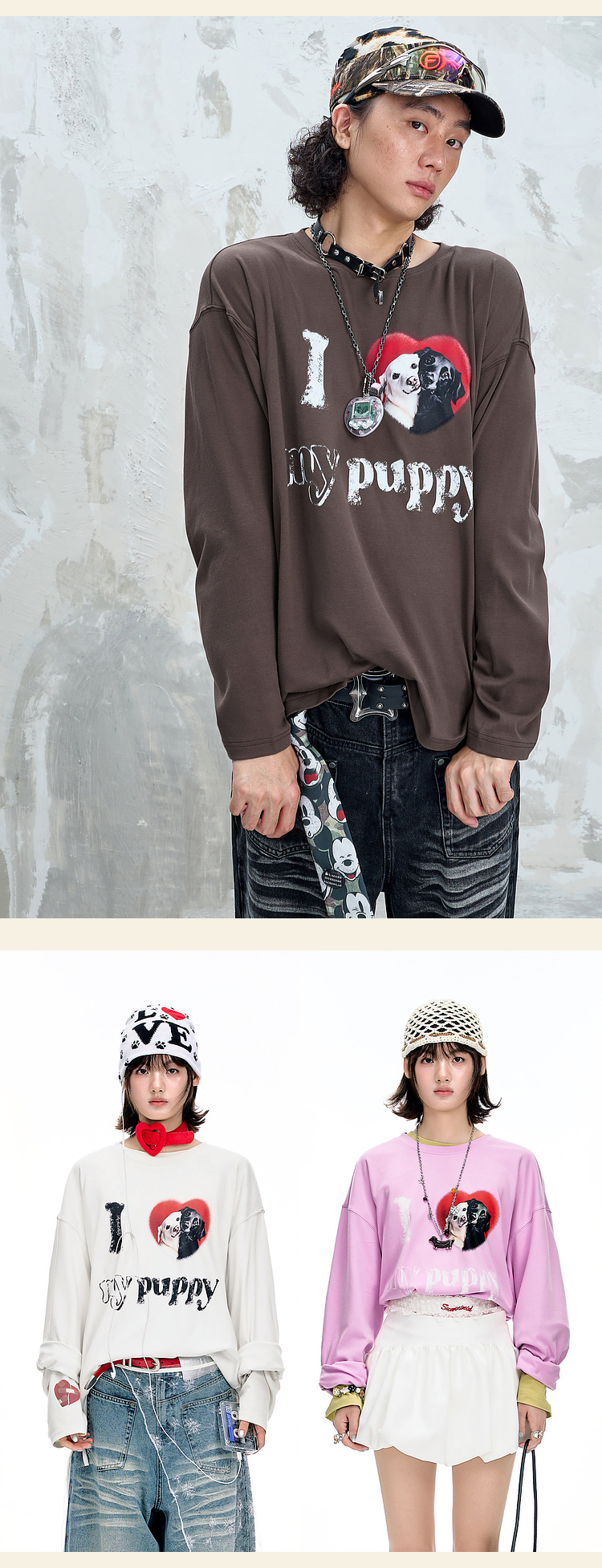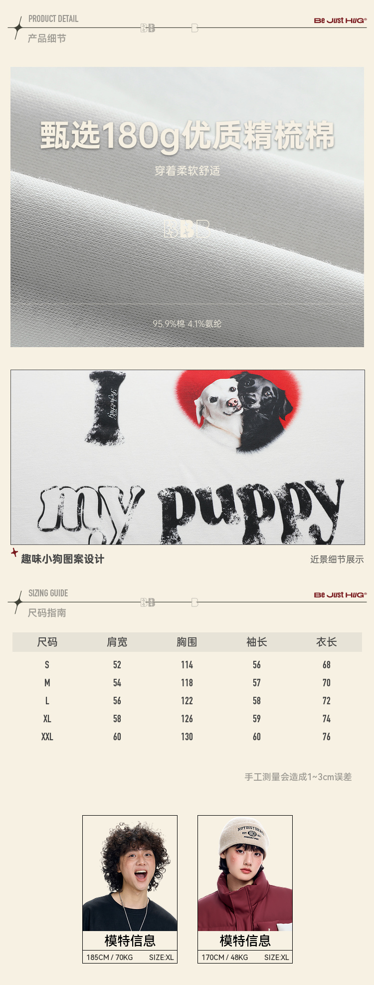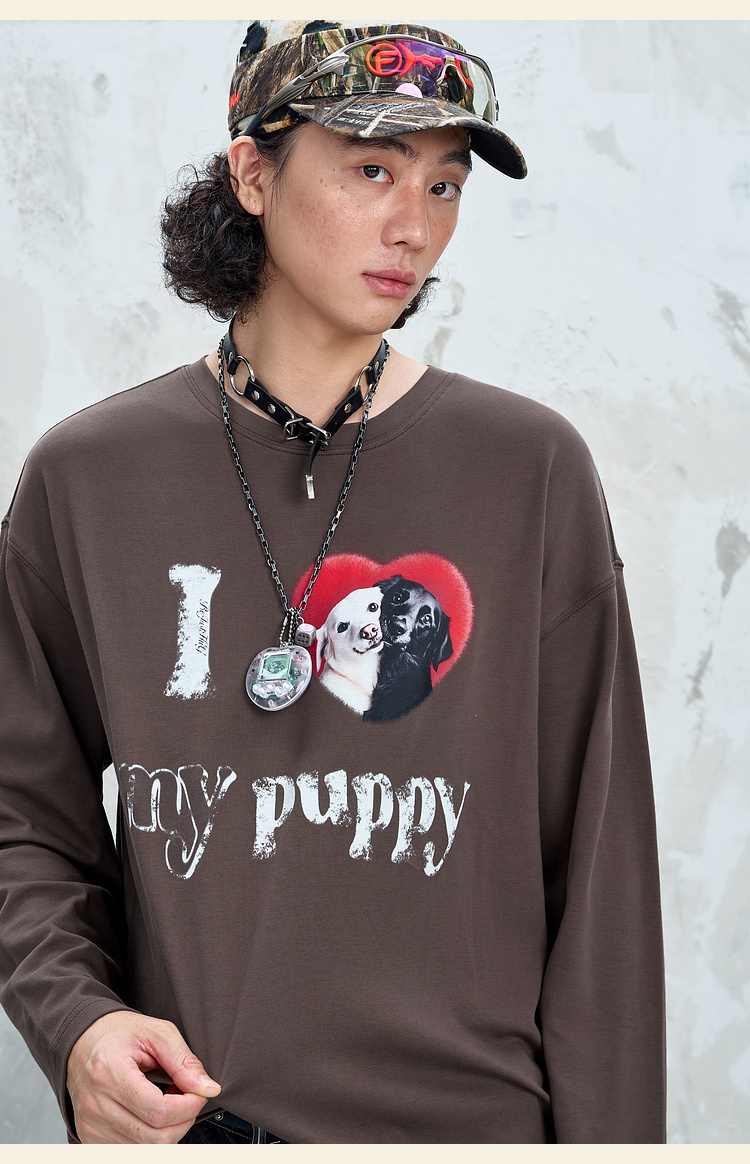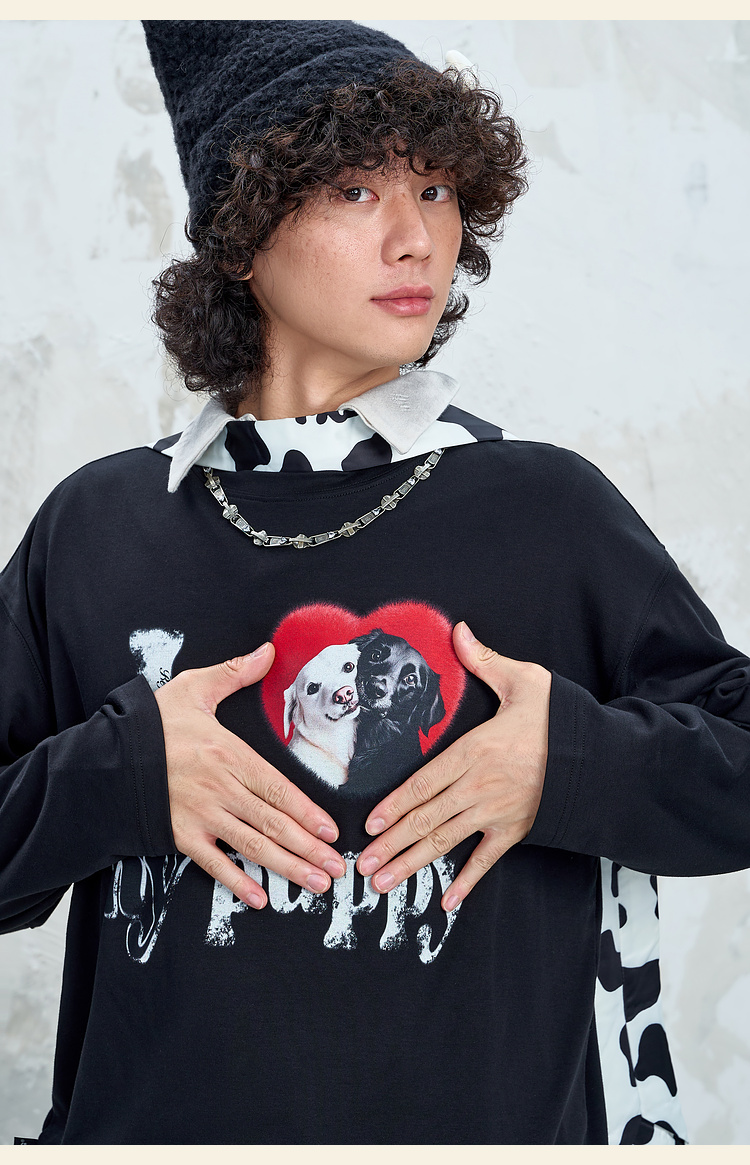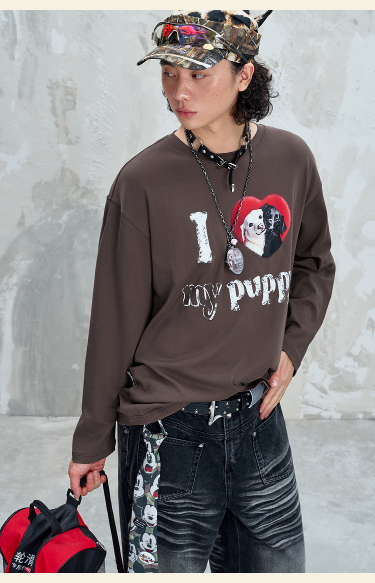 BJHG不计后果小狗趣味长袖t恤男款秋季基础打底设计感情侣装T恤女