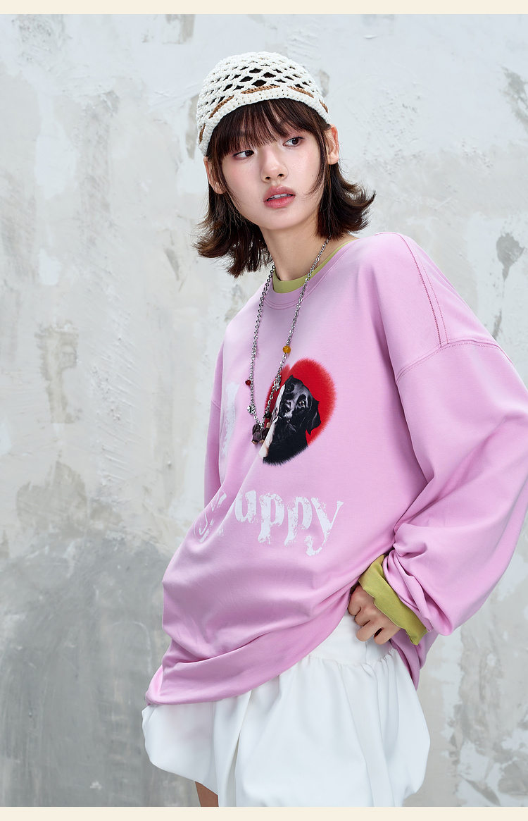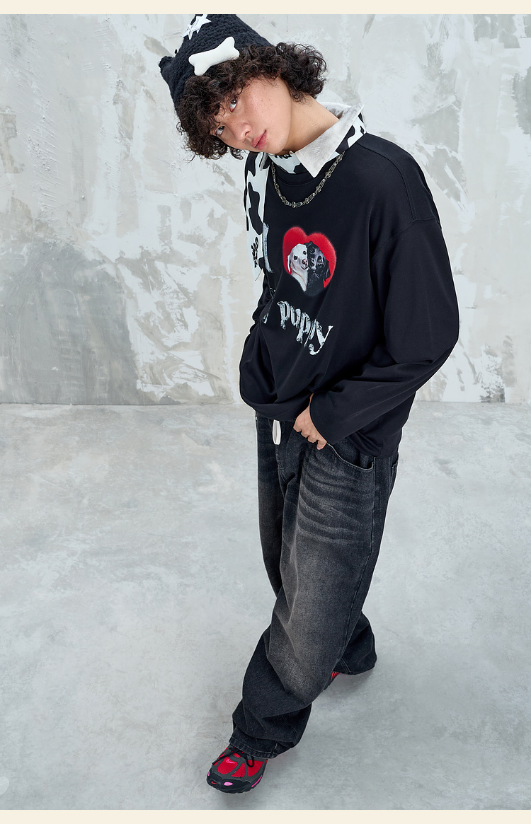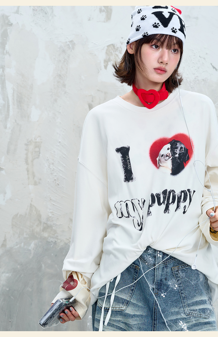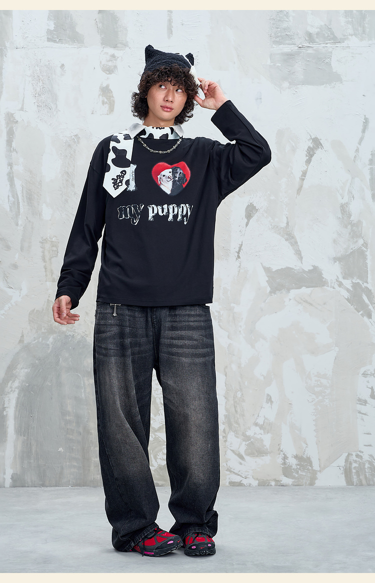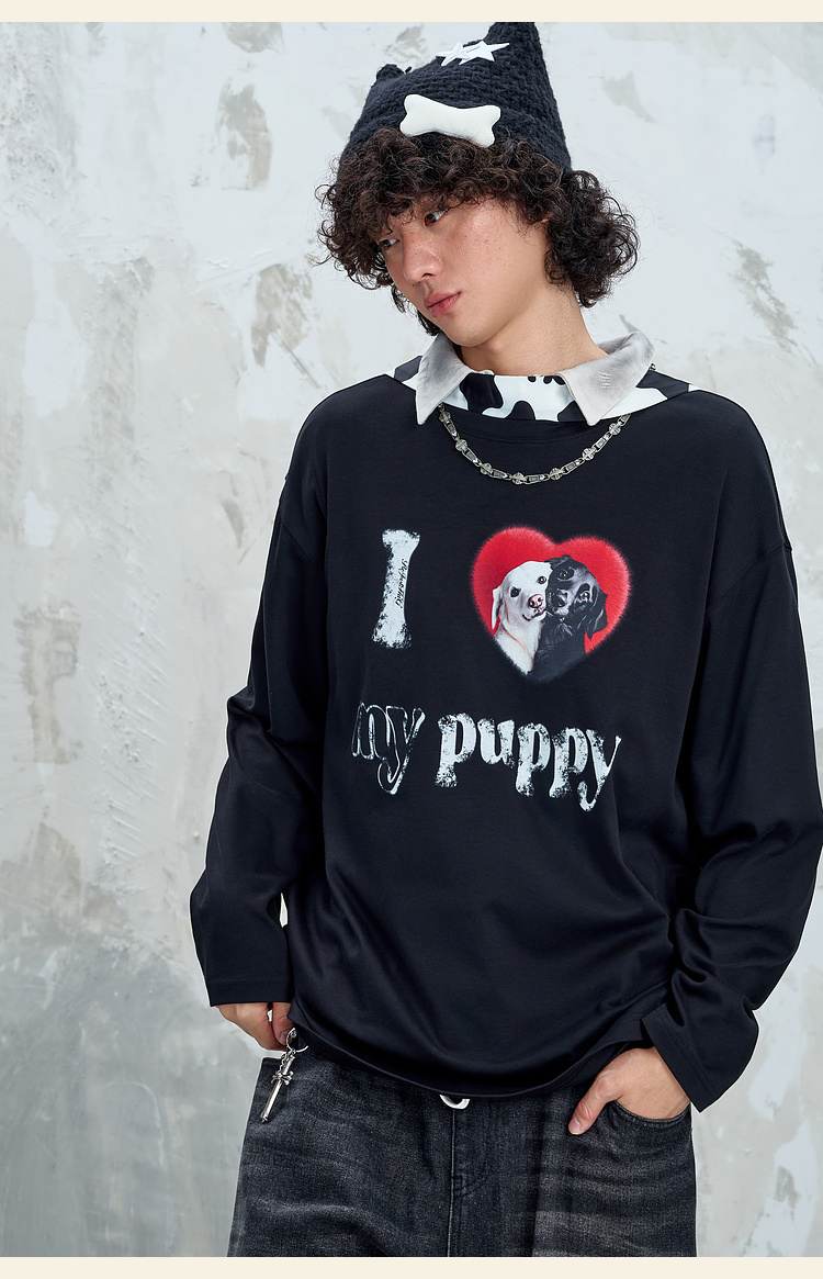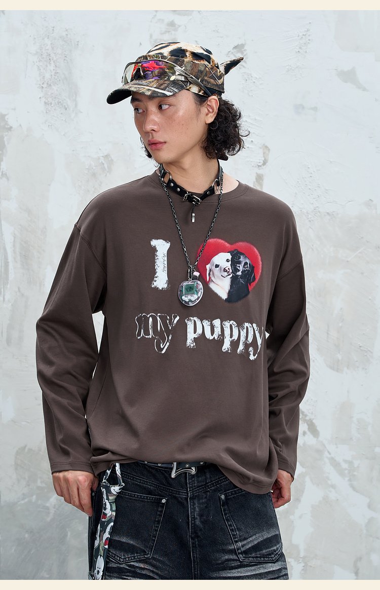 BJHG不计后果小狗趣味长袖t恤男款秋季基础打底设计感情侣装T恤女