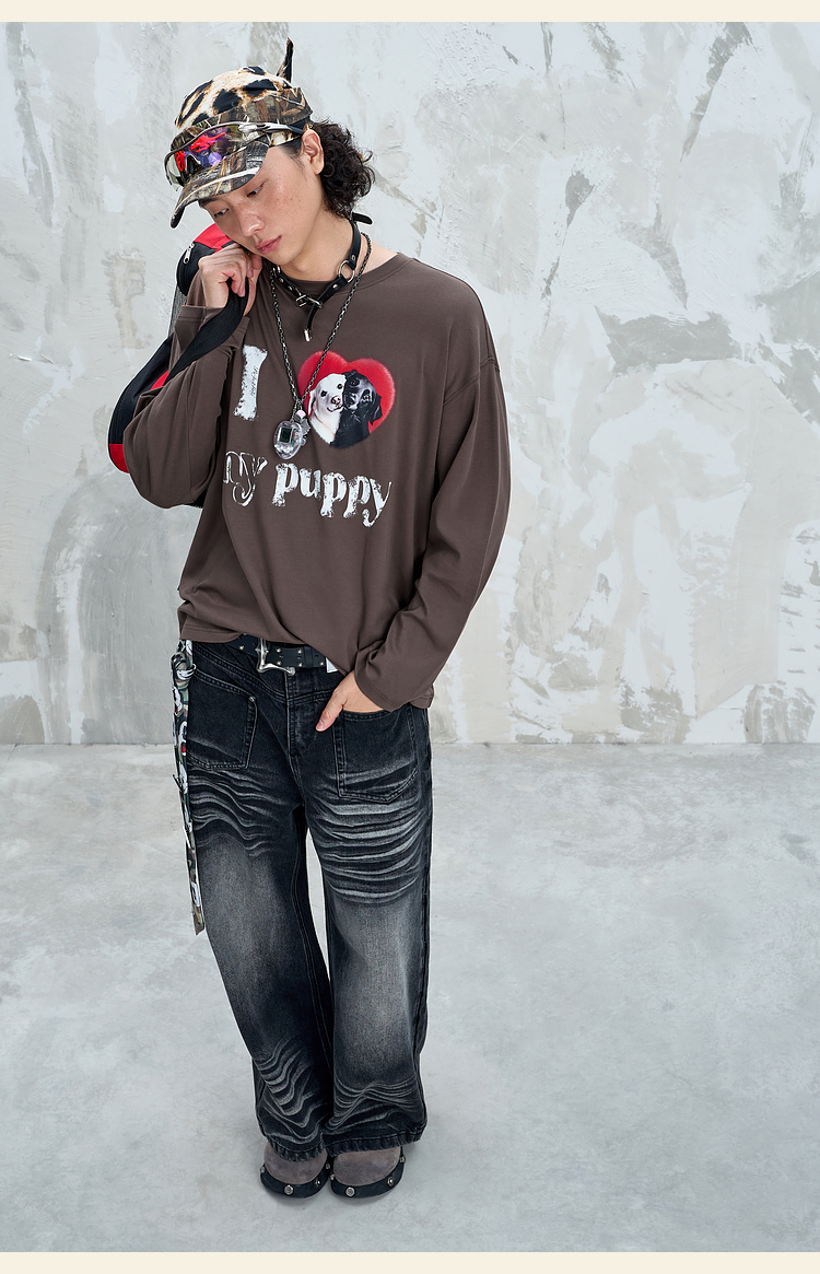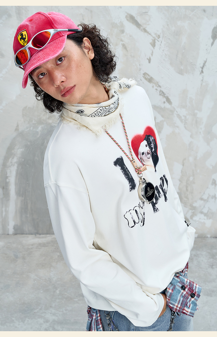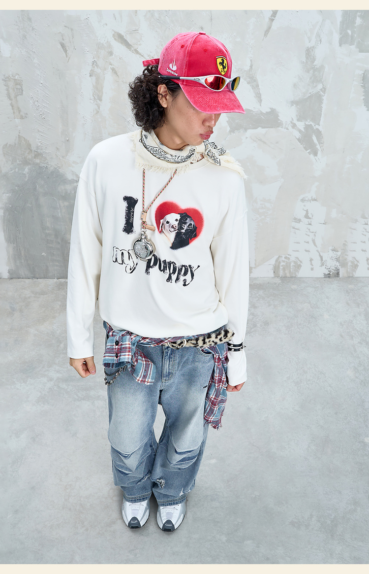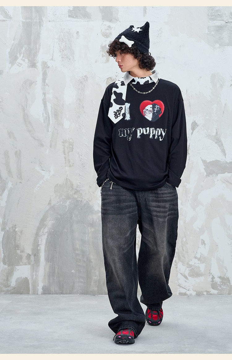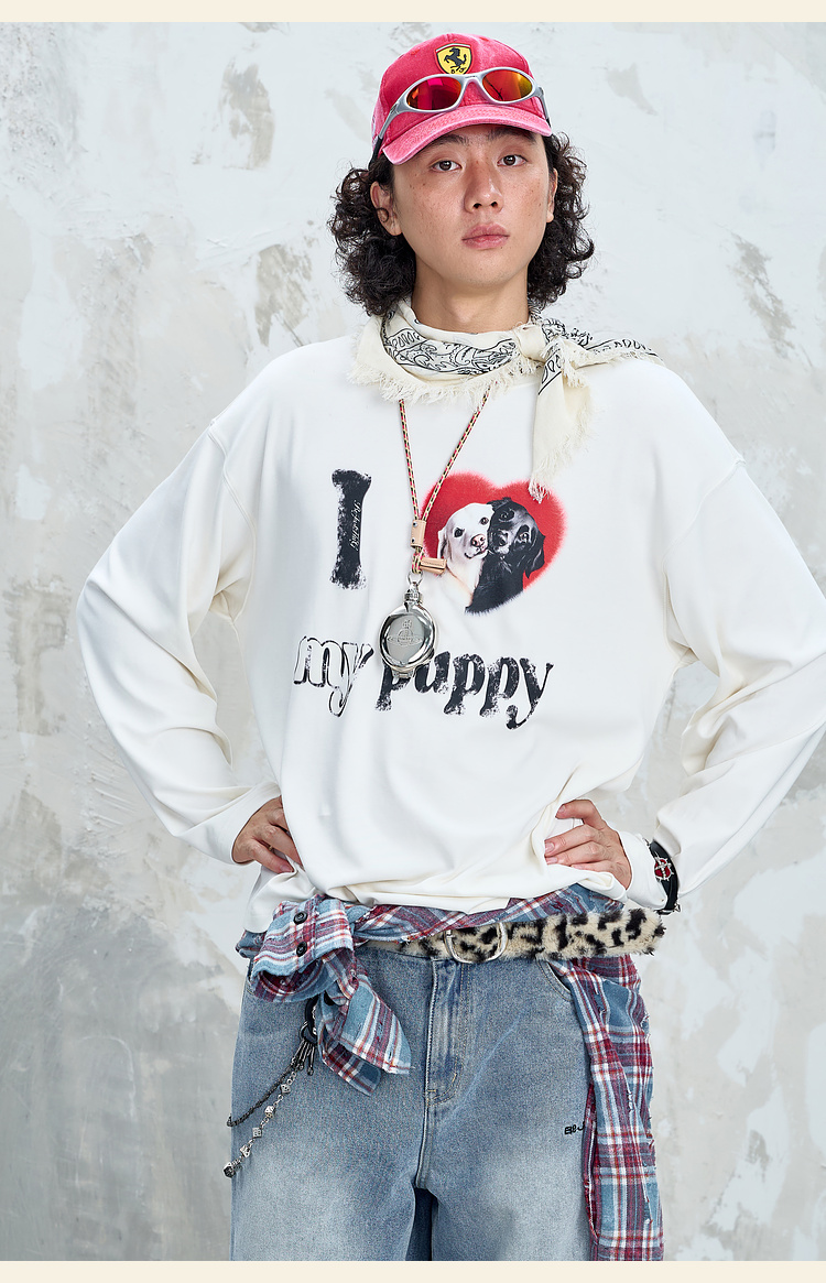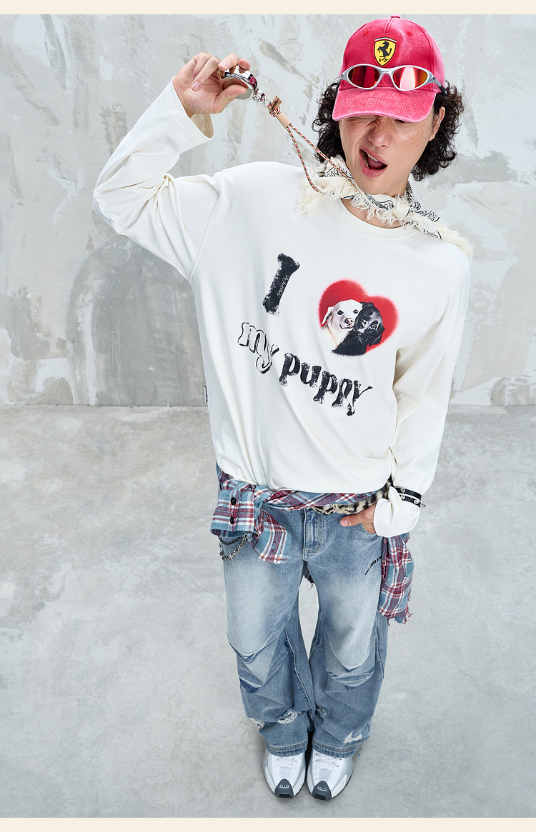 BJHG不计后果小狗趣味长袖t恤男款秋季基础打底设计感情侣装T恤女