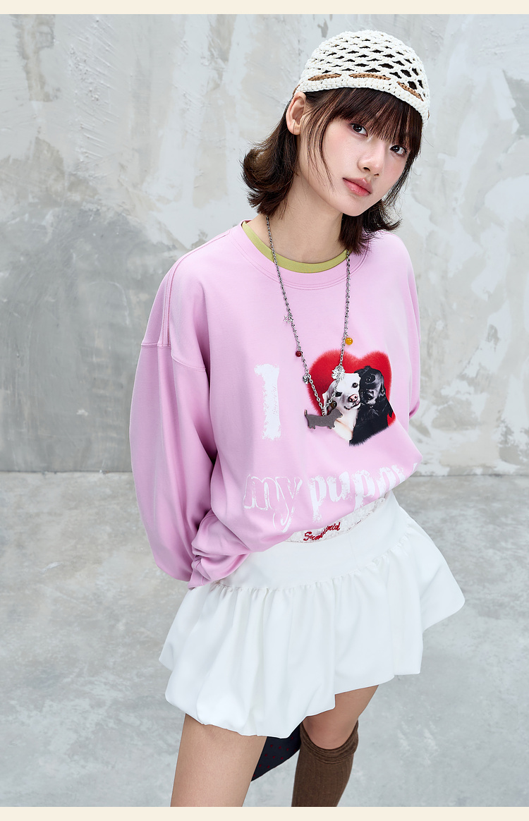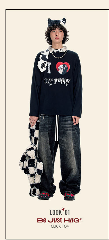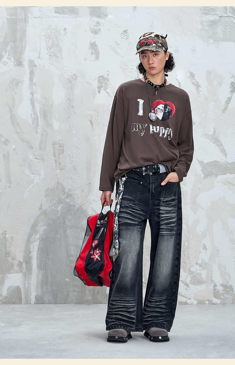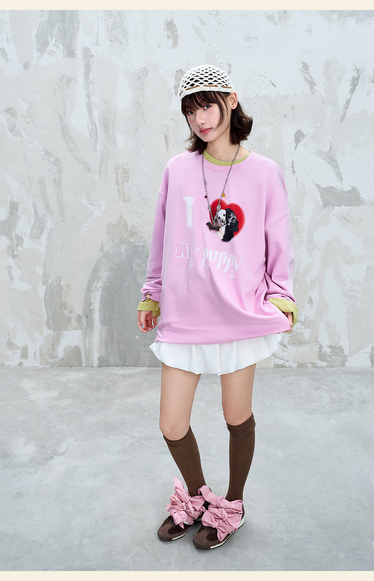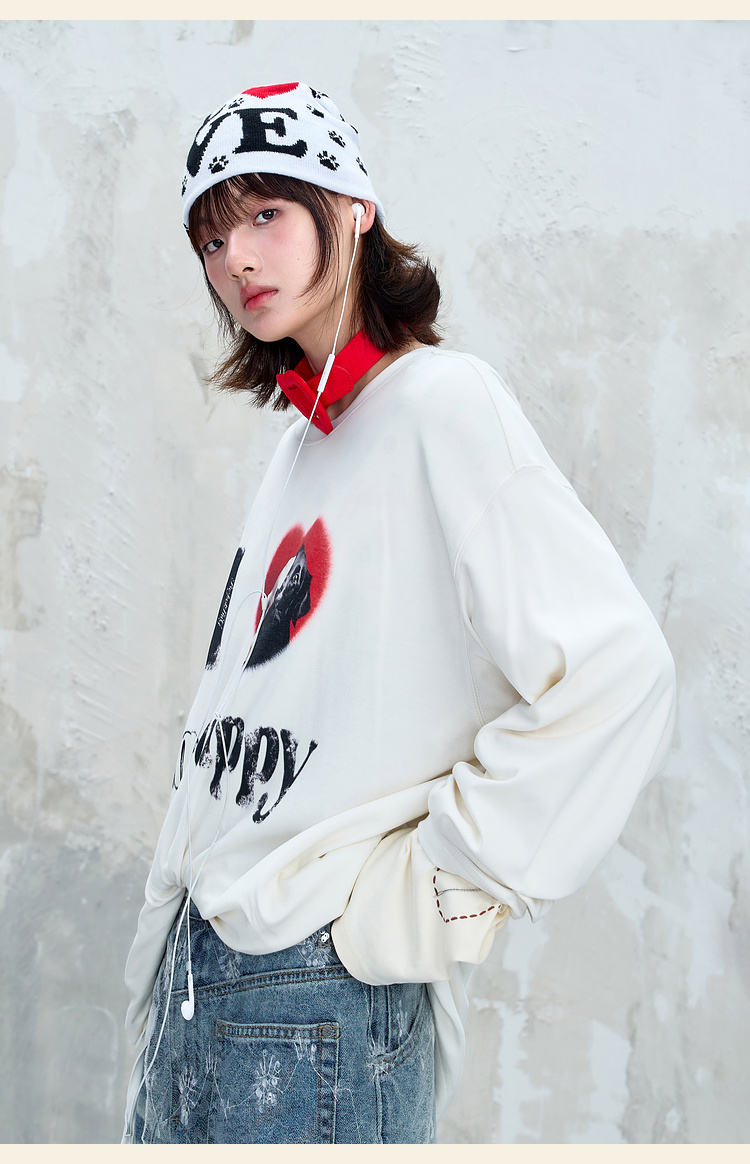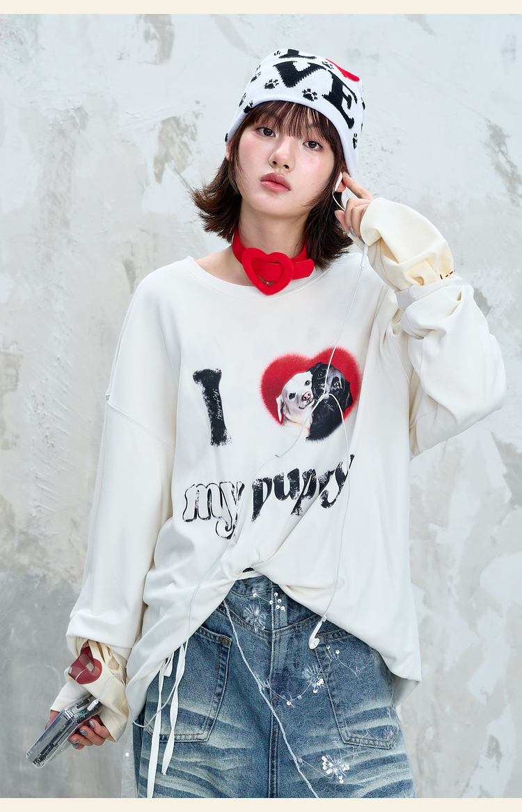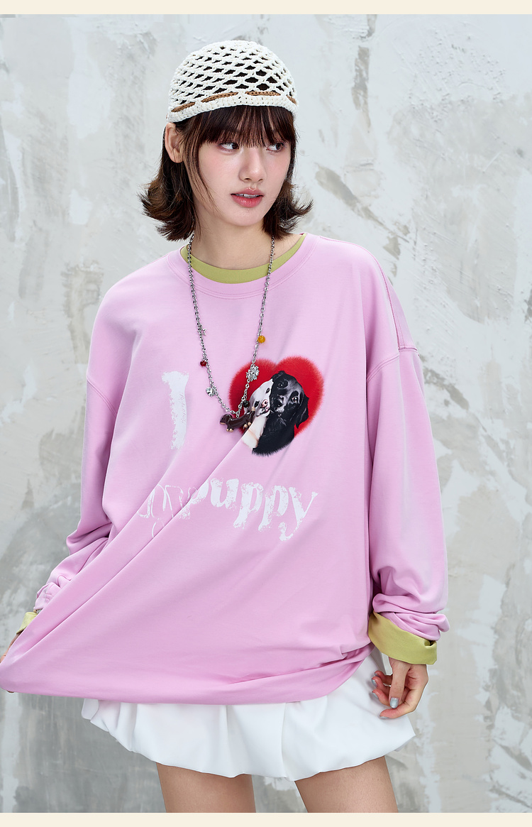 BJHG不计后果小狗趣味长袖t恤男款秋季基础打底设计感情侣装T恤女