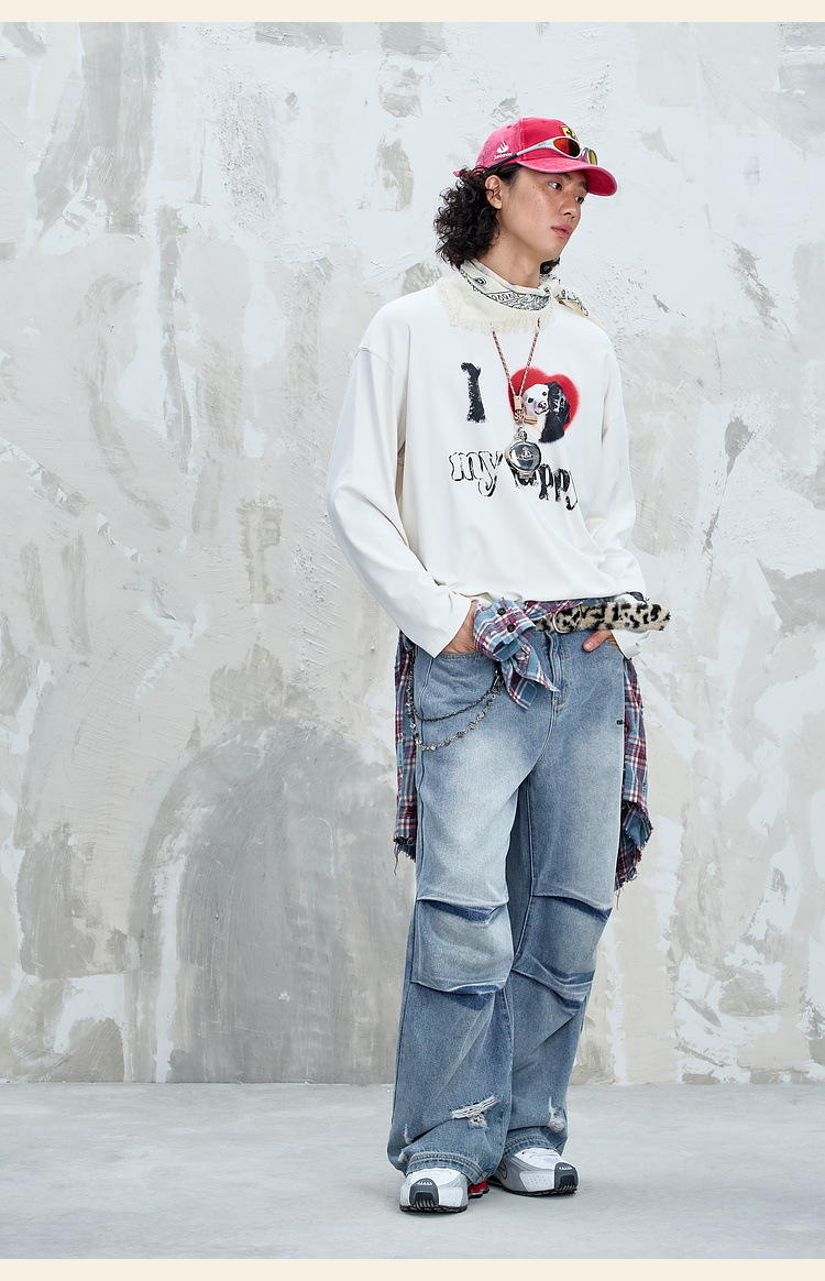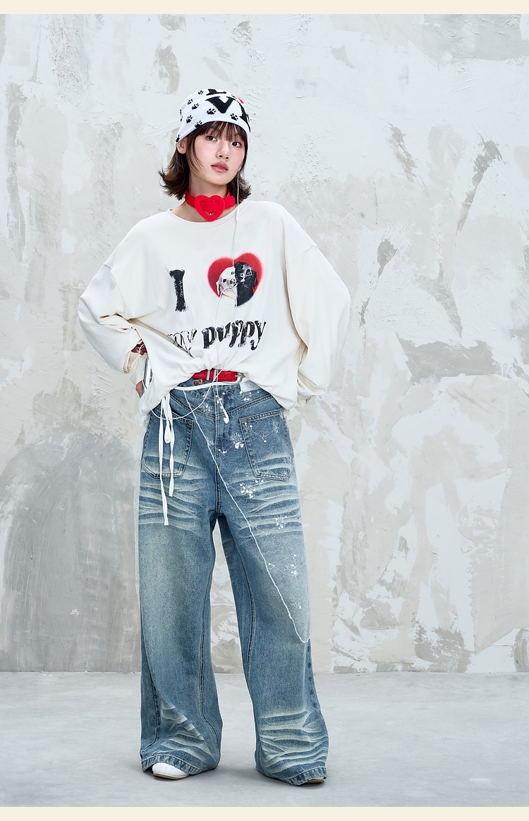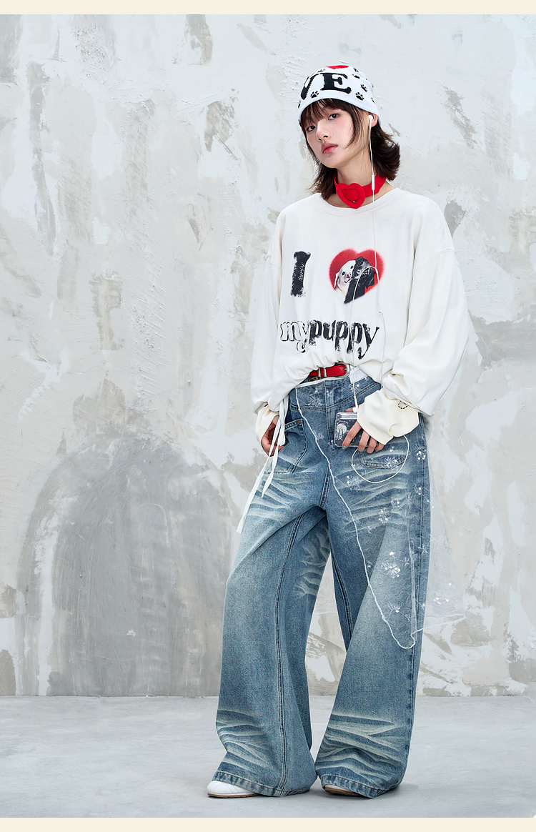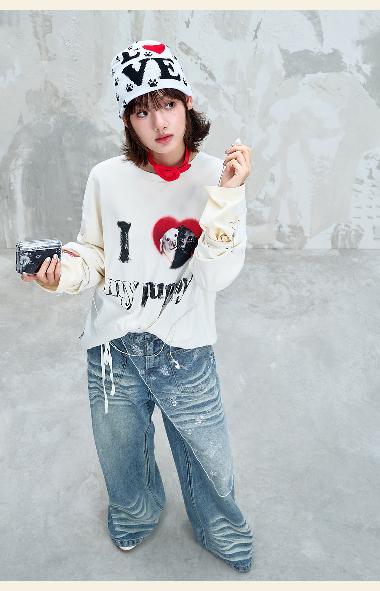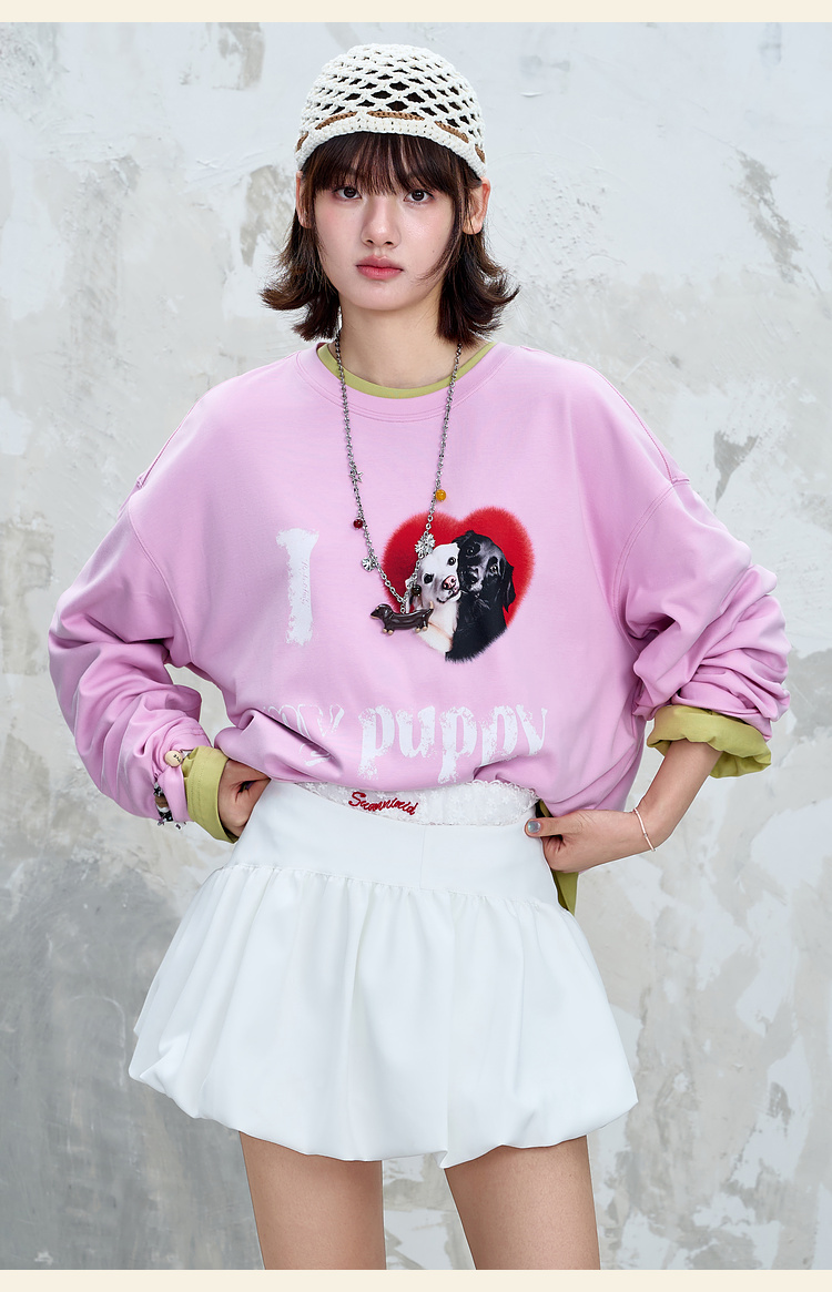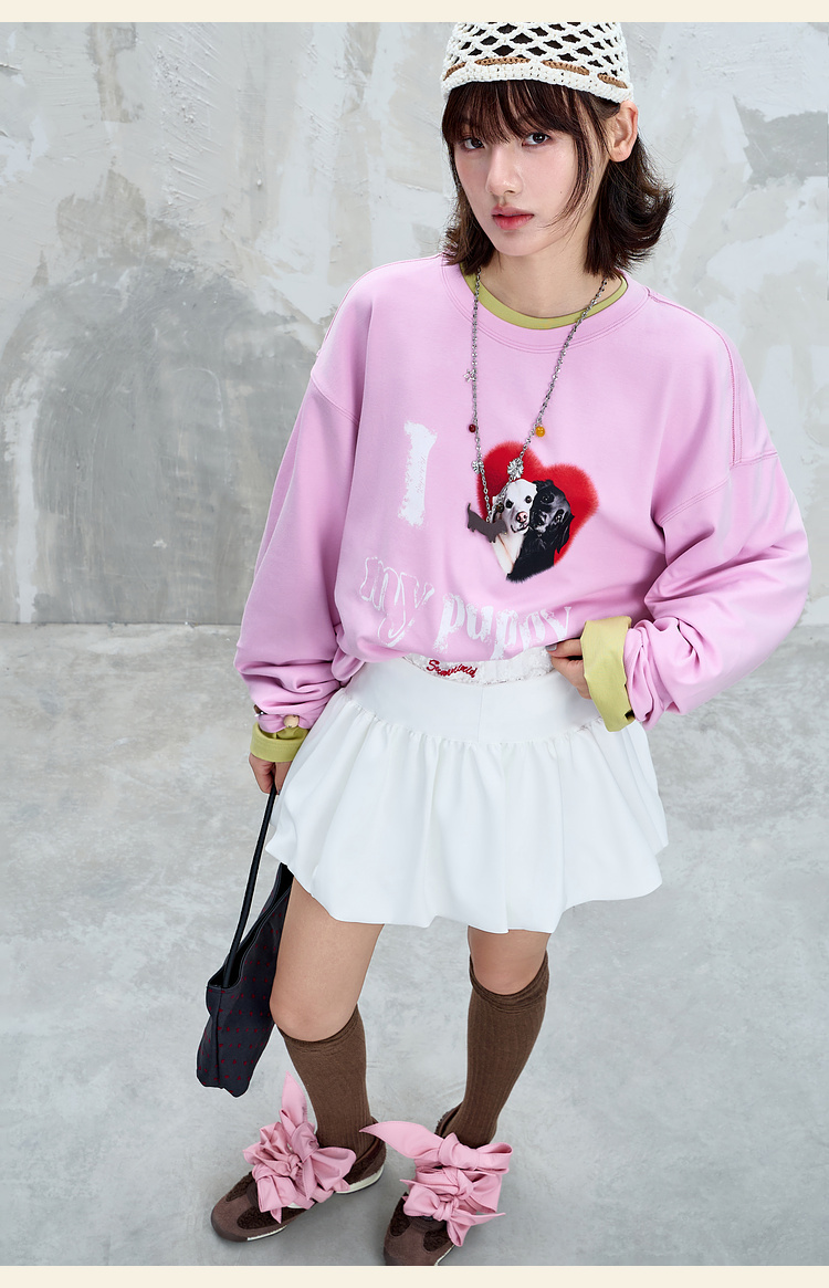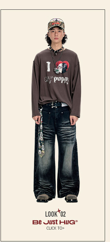 BJHG不计后果小狗趣味长袖t恤男款秋季基础打底设计感情侣装T恤女