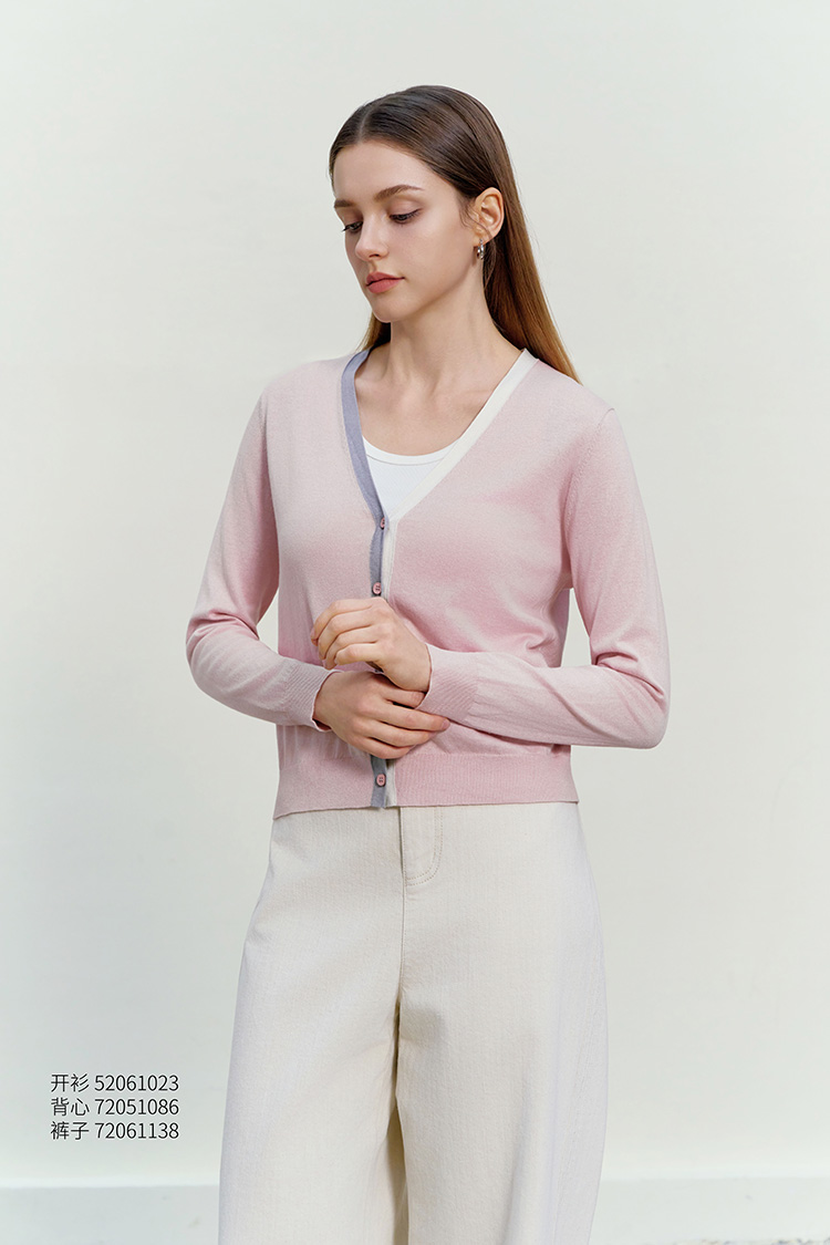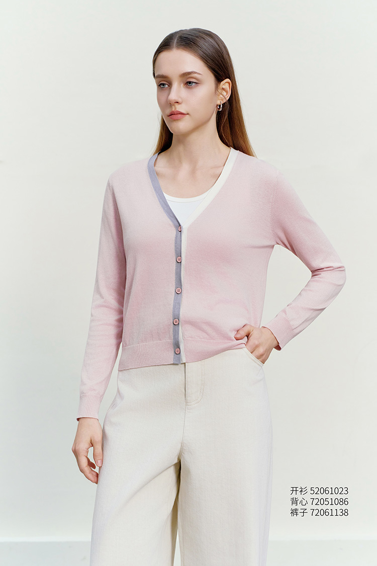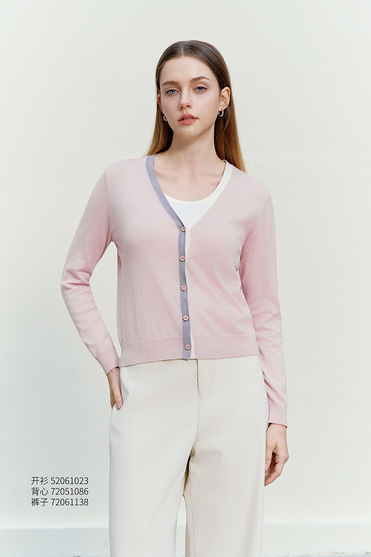 【V领撞色针织开衫】26年春夏新品女士薄款棉质开衫小外套