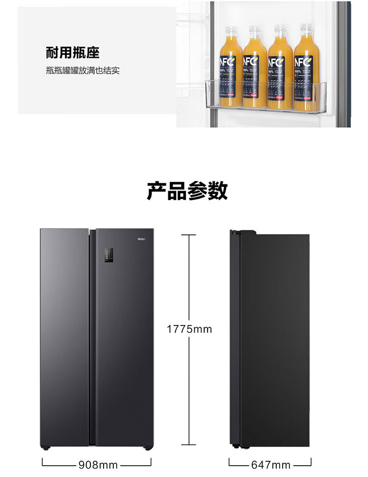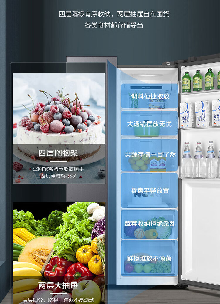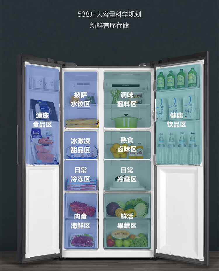 海尔538升双开门冰箱双变频风冷无霜 精控多路送风 智能触控显示屏BCD-538WGHSSEDB9