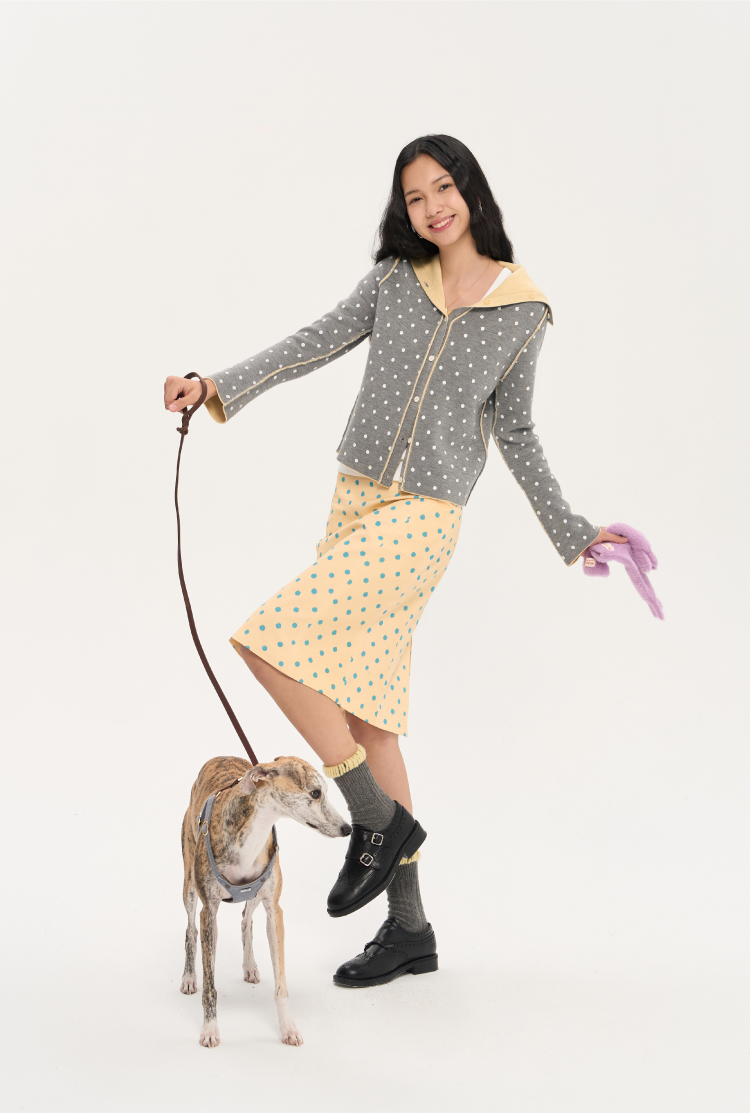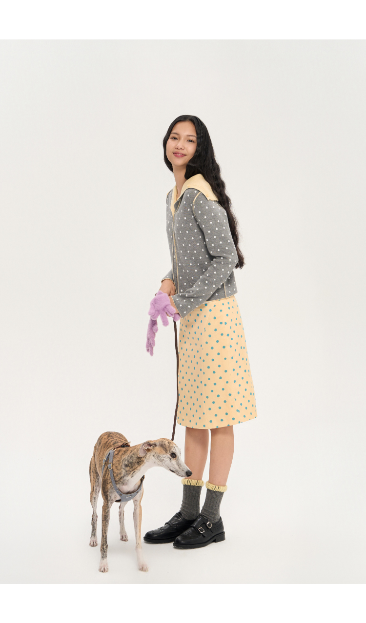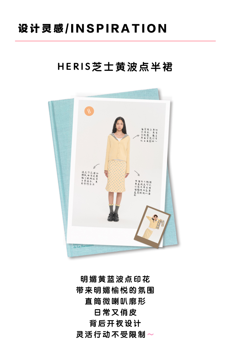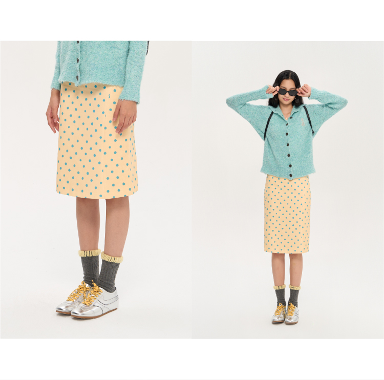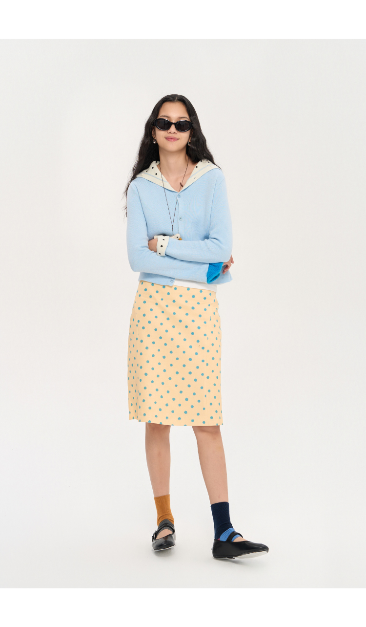 heris/H53117/波点印花 立裁分割微喇 直筒显瘦百搭半裙